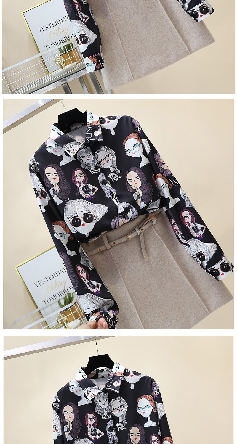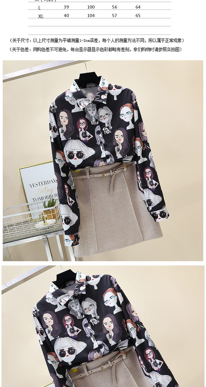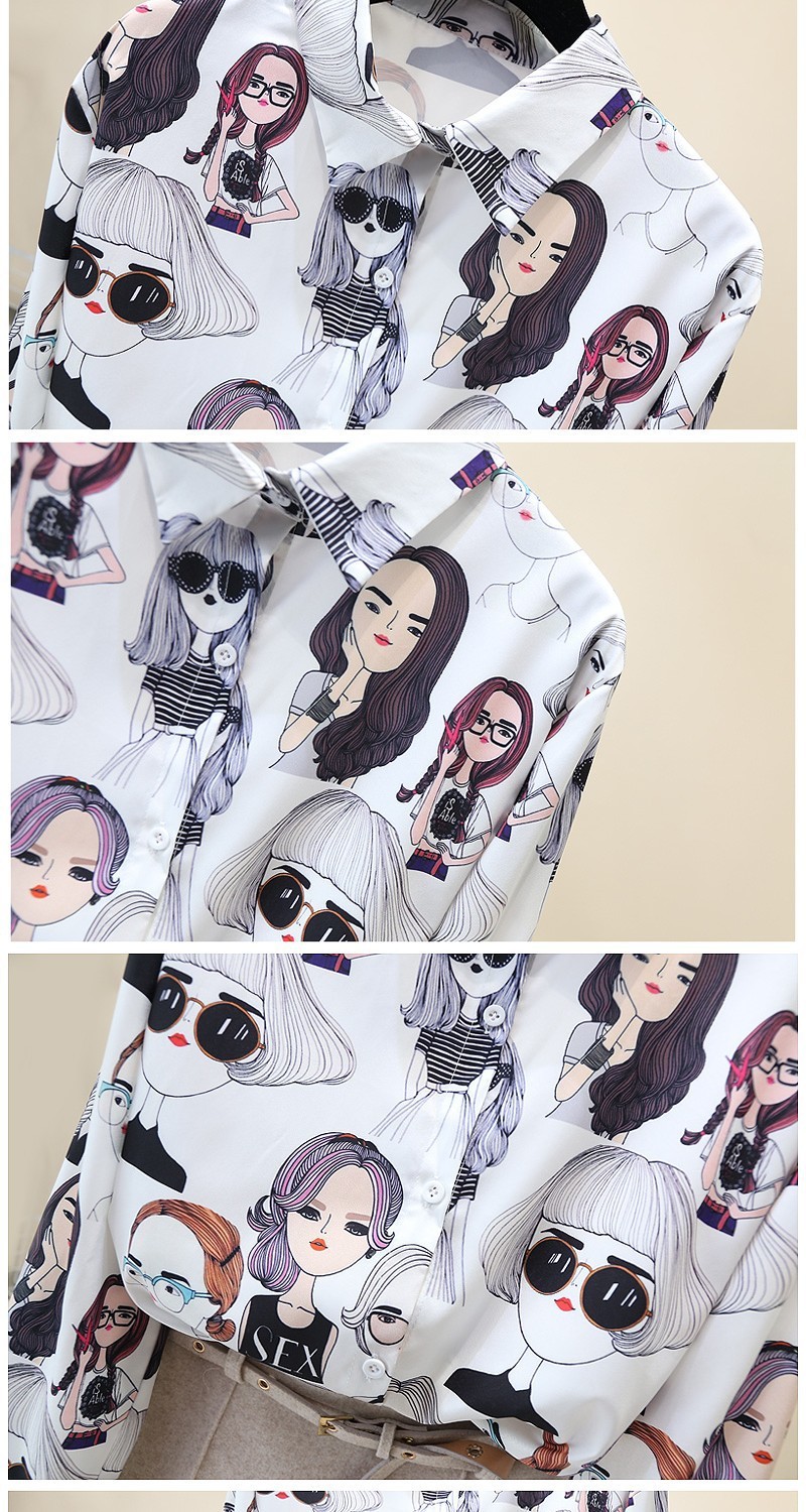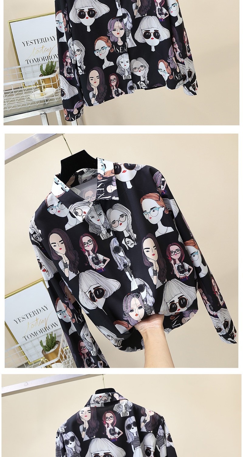 2023 봄과 가을 새로운 한국 스타일 우아한 패션 장난스러운 소녀의 머리 프린트 긴 소매 셔츠 여성 캐주얼 셔츠 트렌디스토어 가기