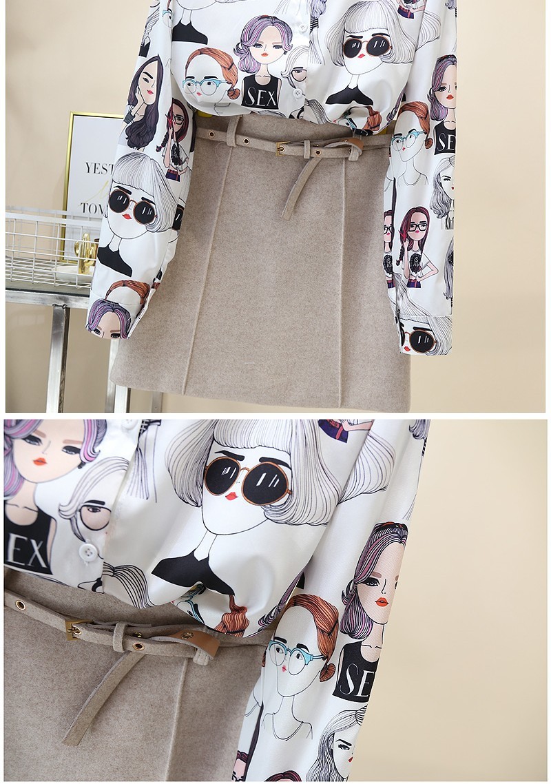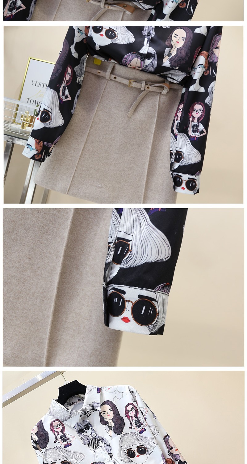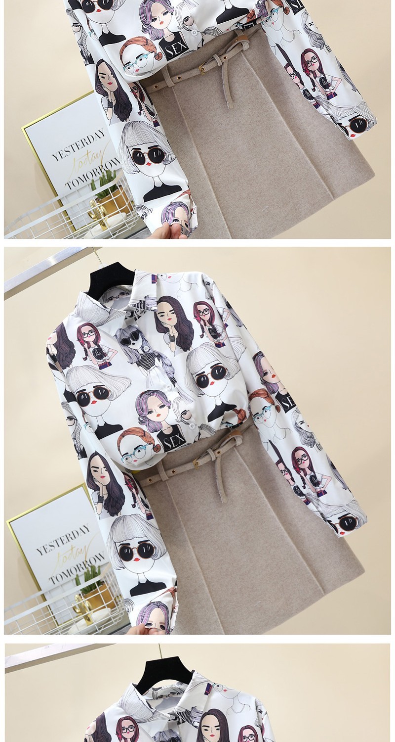2023 봄과 가을 새로운 한국 스타일 우아한 패션 장난스러운 소녀의 머리 프린트 긴 소매 셔츠 여성 캐주얼 셔츠 트렌디