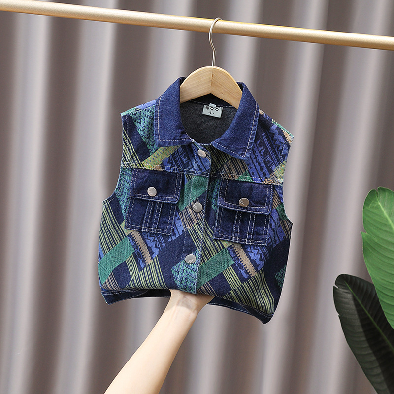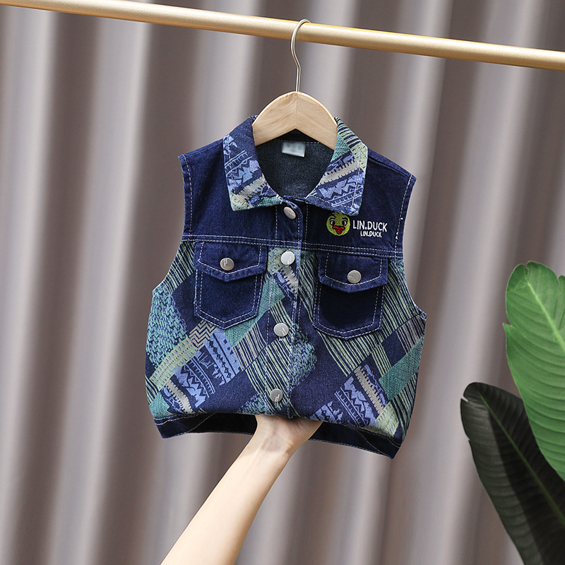 2023 새로운 소년 한국 봄 가을 옷 아기 조끼 어린이 조끼 탑 데님 코트 조끼 유행스토어 가기