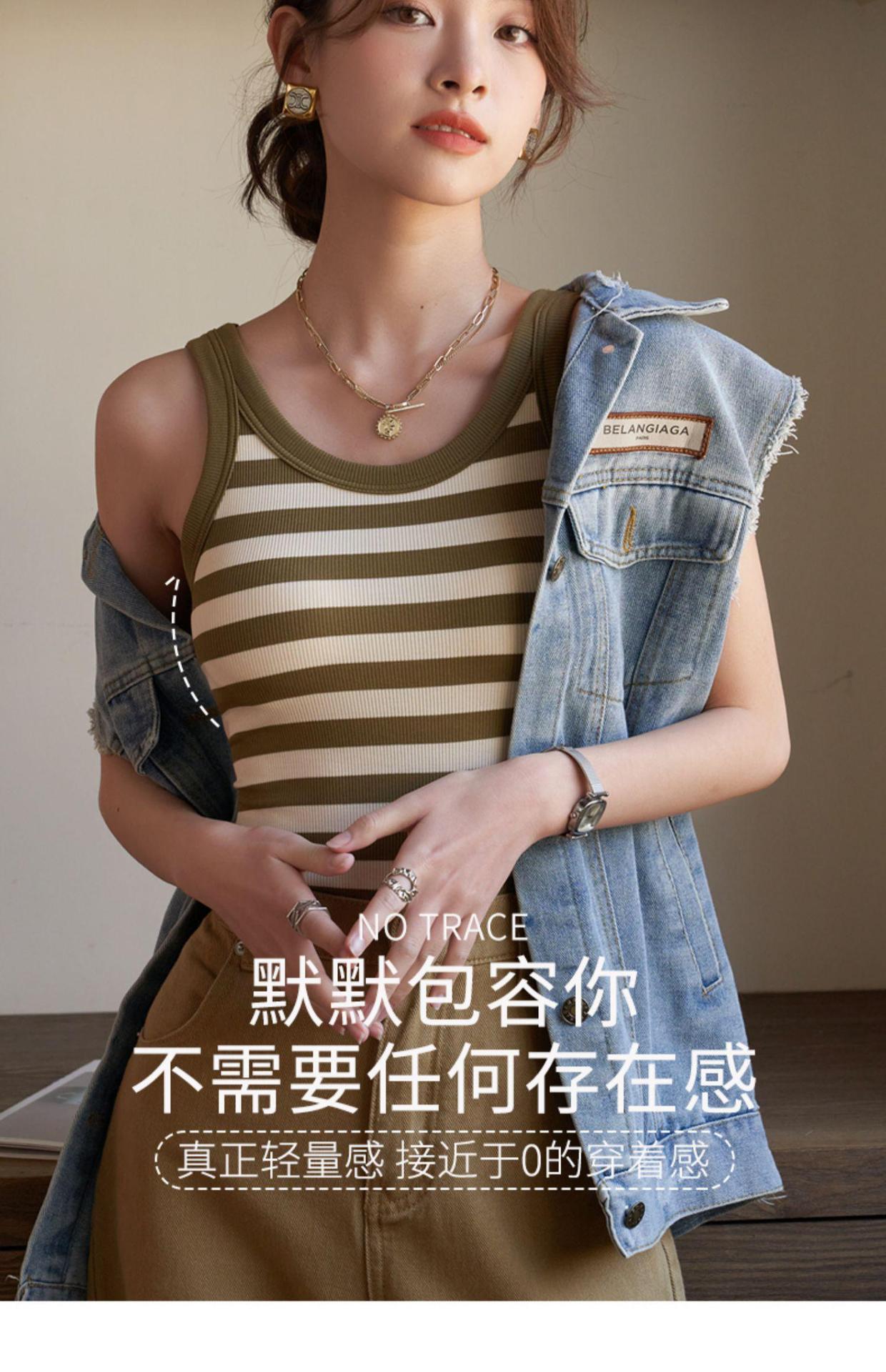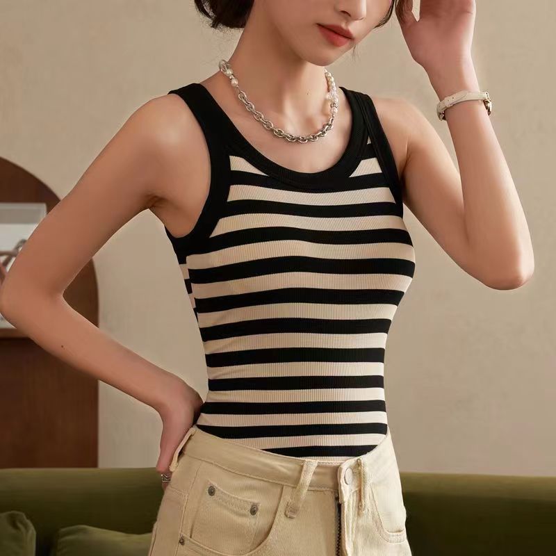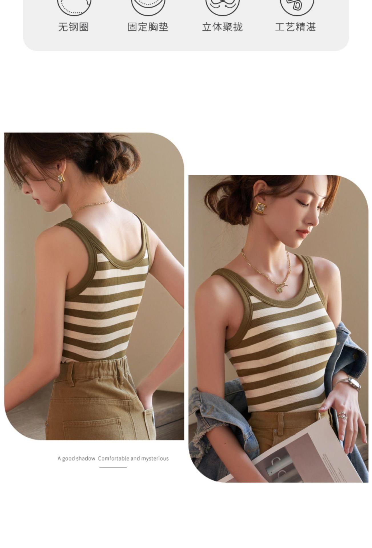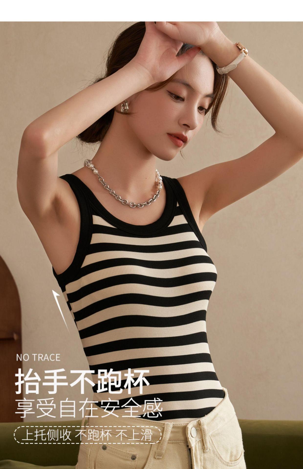 여름 벨트가있는 캐미솔 여성용 내부 조끼 가슴 패드 겉옷 틈새 디자인 감각 스트라이프 속옷 화이트 민소매 베이스 탑스토어 가기