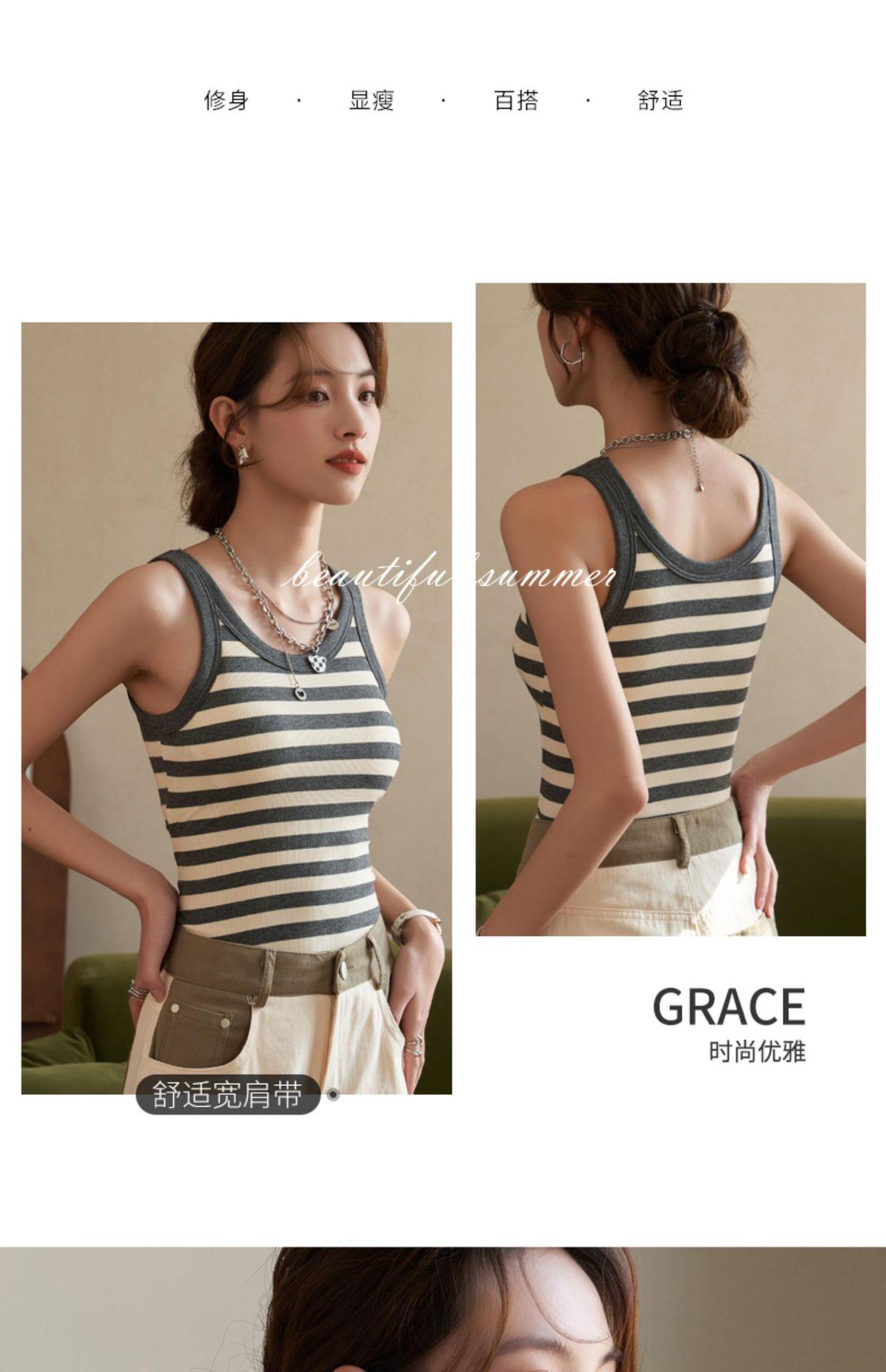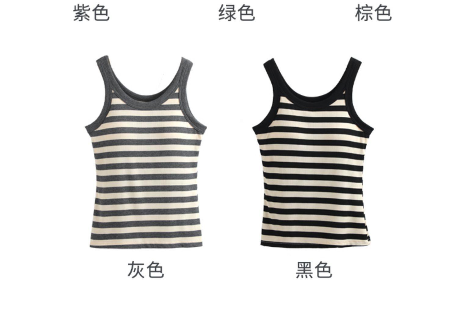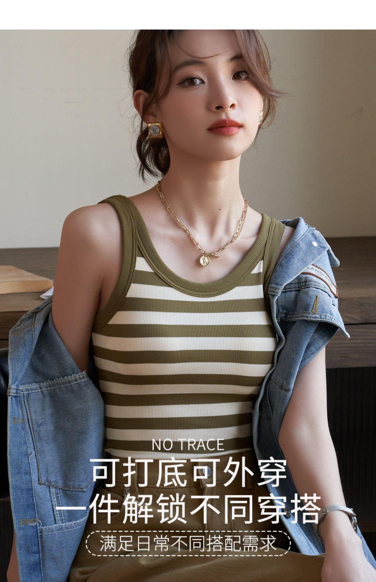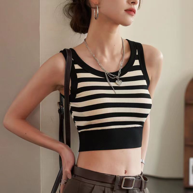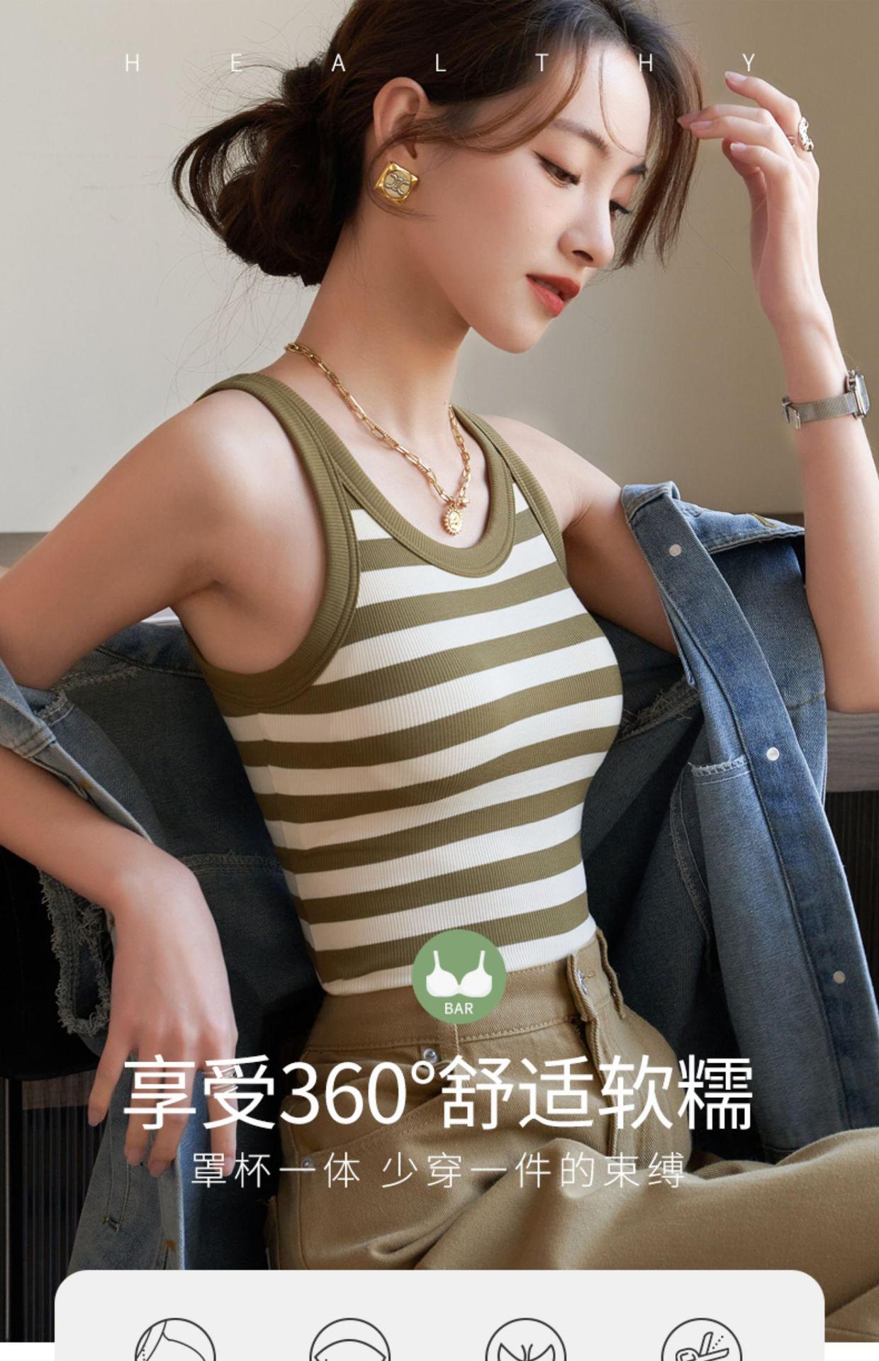 여름 벨트가있는 캐미솔 여성용 내부 조끼 가슴 패드 겉옷 틈새 디자인 감각 스트라이프 속옷 화이트 민소매 베이스 탑스토어 가기