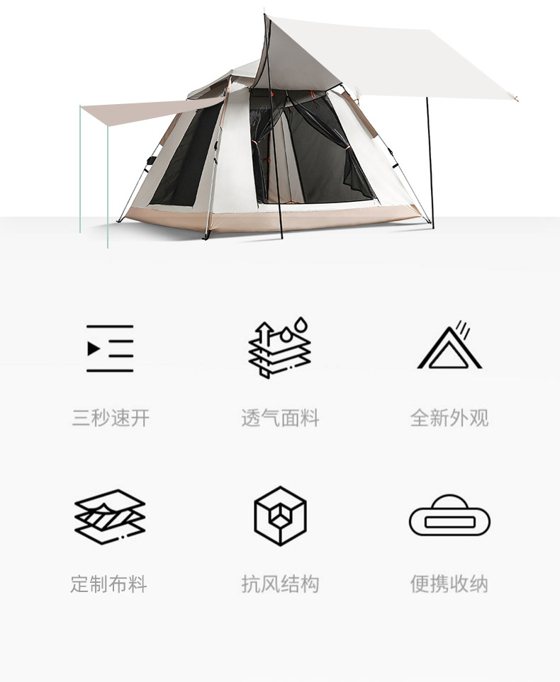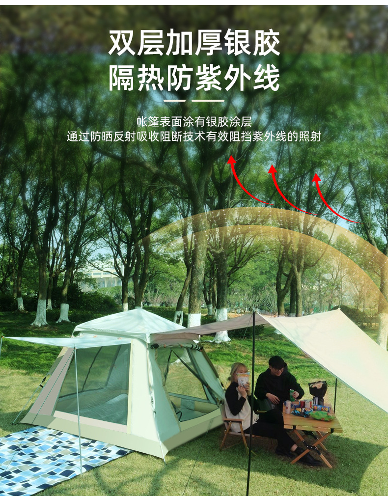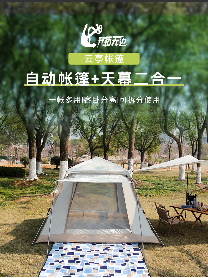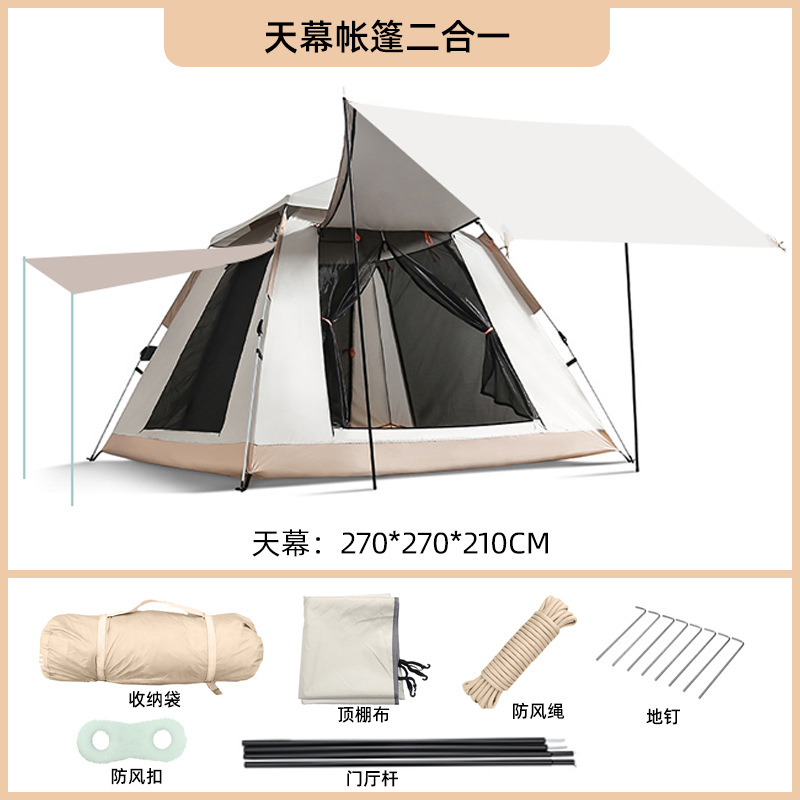 국경 간 뜨거운 판매 텐트 캐노피 2 대 1 야외 캠핑 캠핑 자동 비 방지 풀 세트 휴대용 접이식