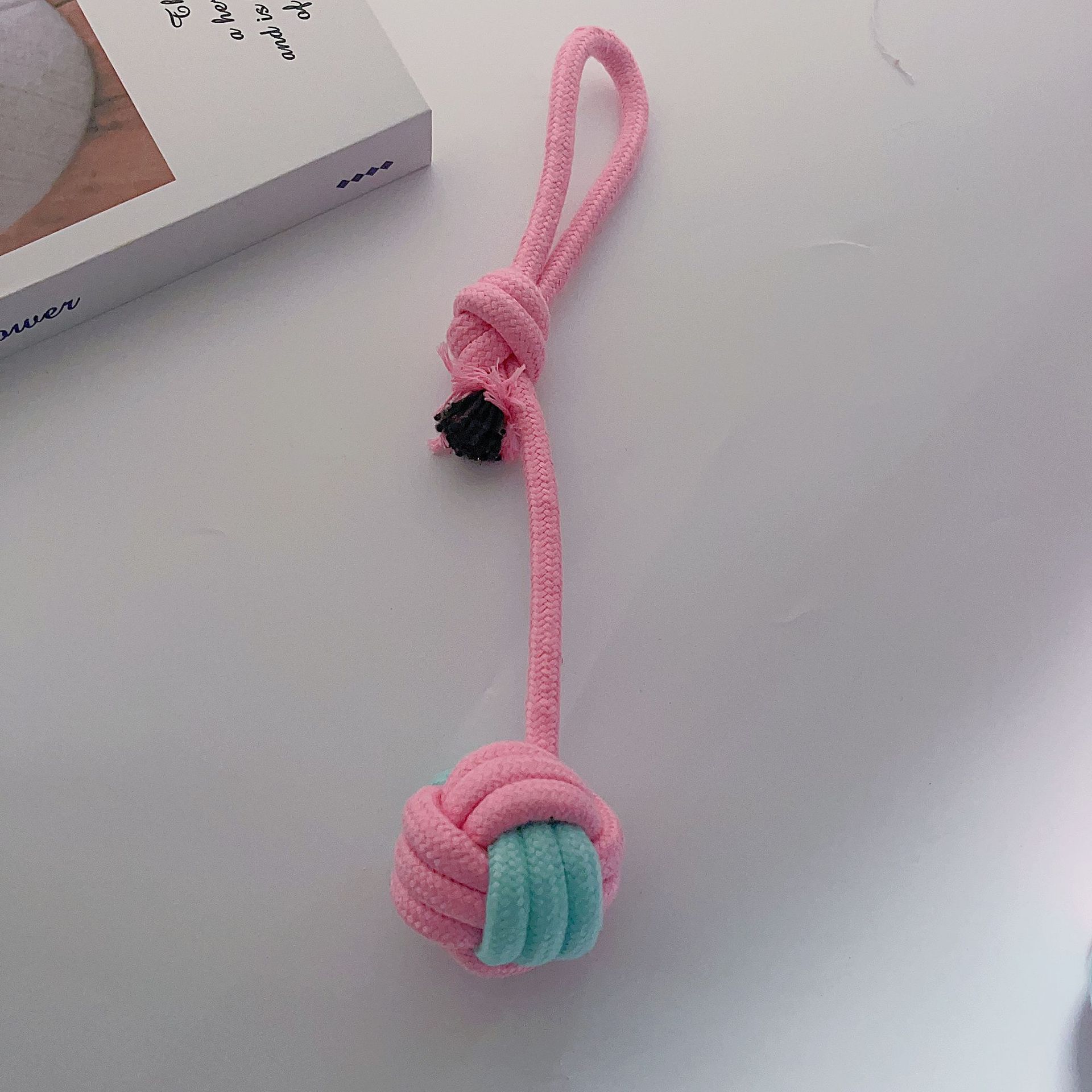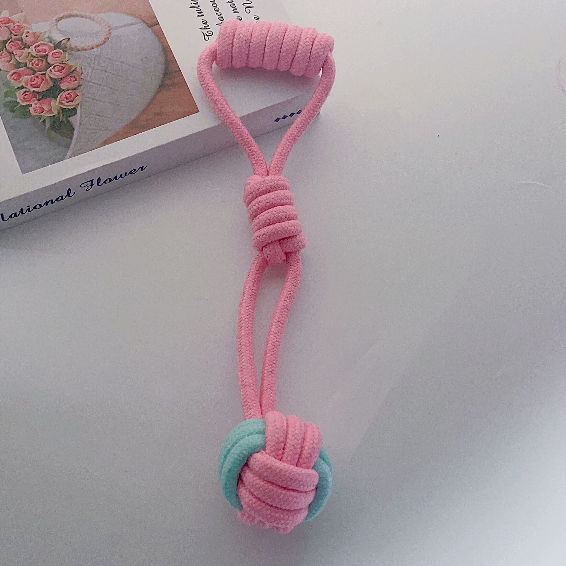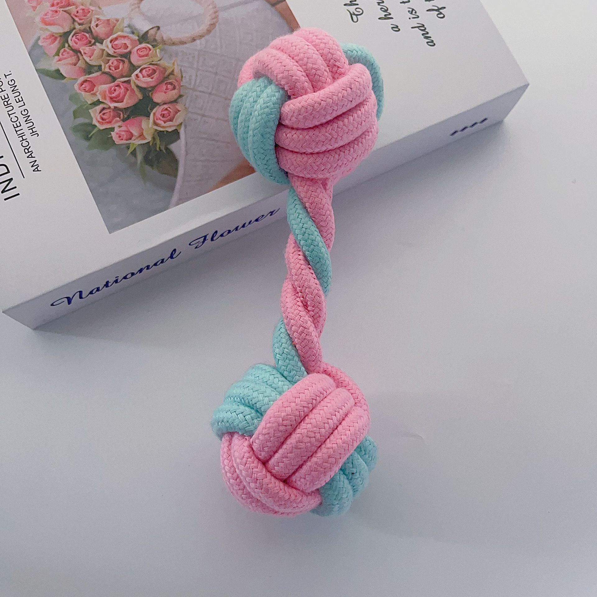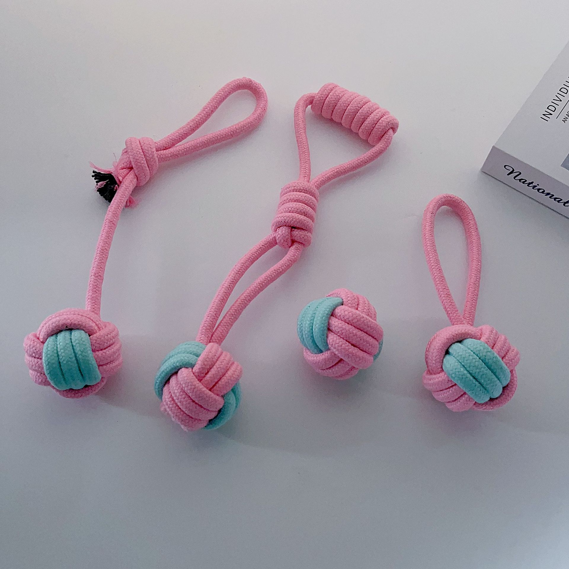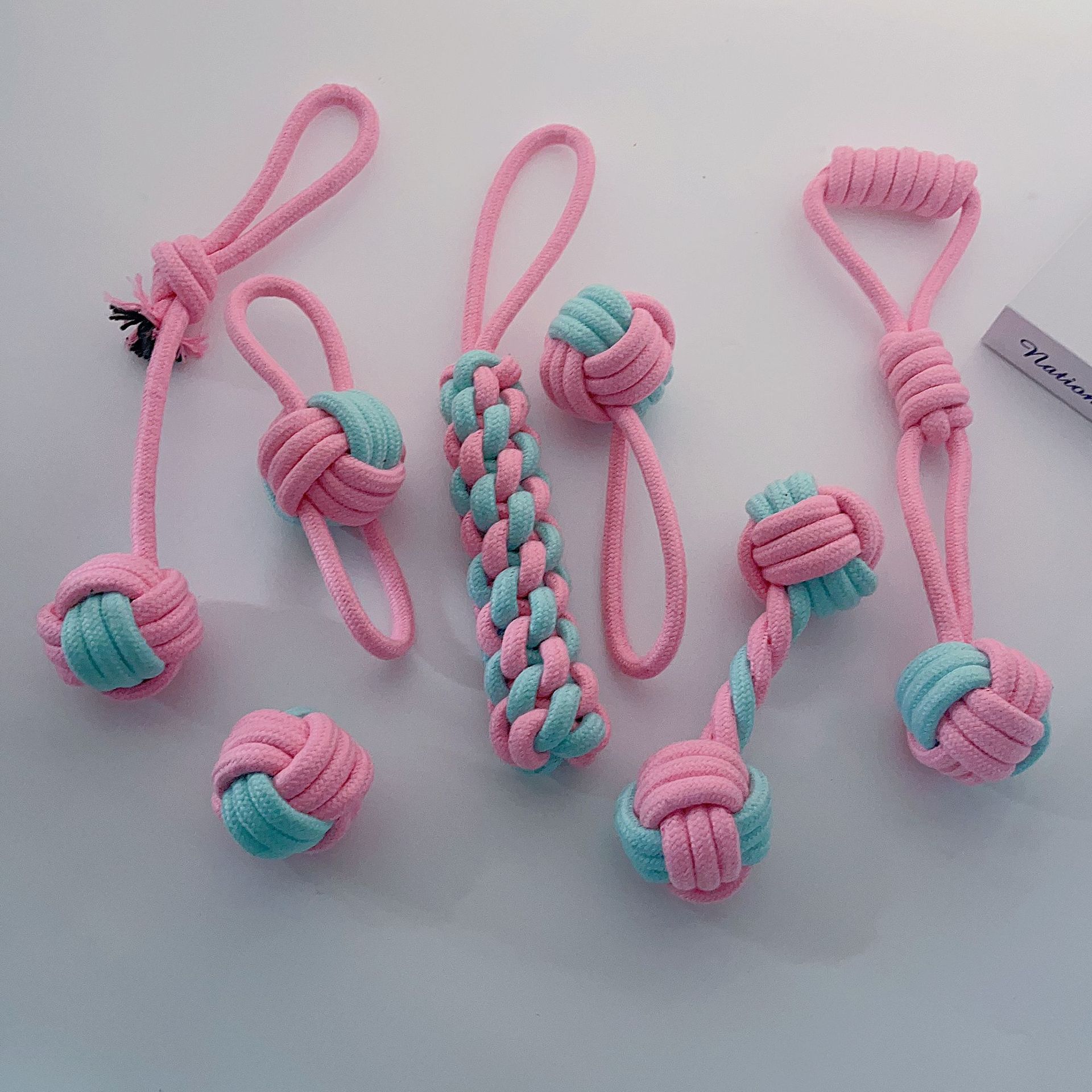 개 장난감 제조 업체 도매 신제품 마카롱 컬러 매듭 로프 물린 방지 코튼 로프 장난감 공 세트 애완 동물 장난감스토어 가기