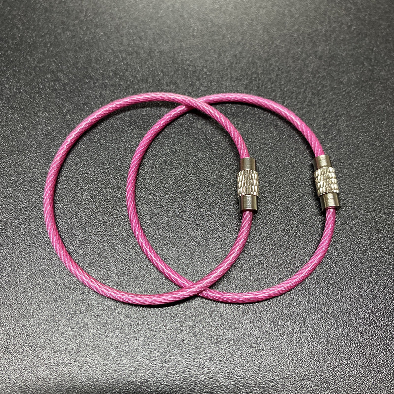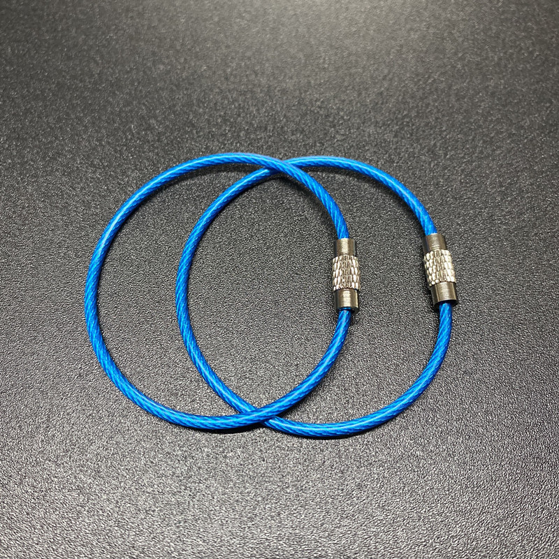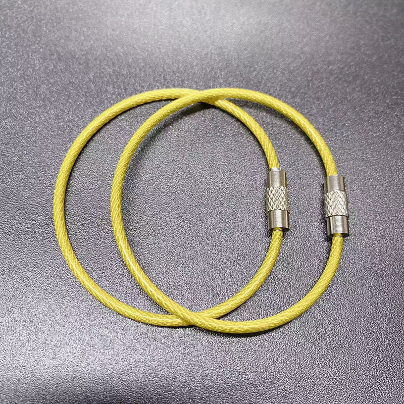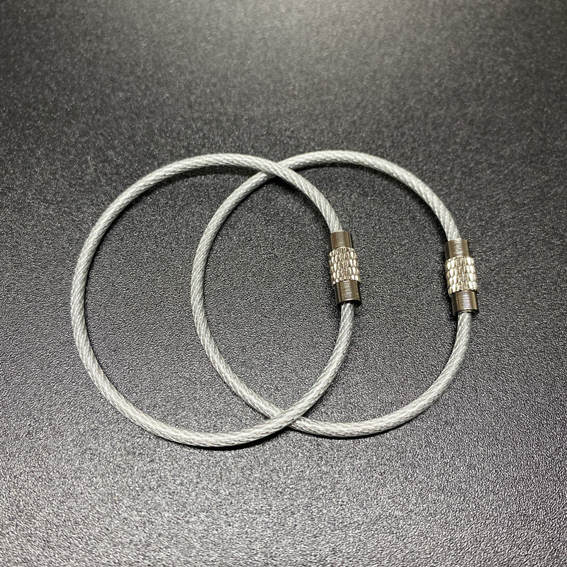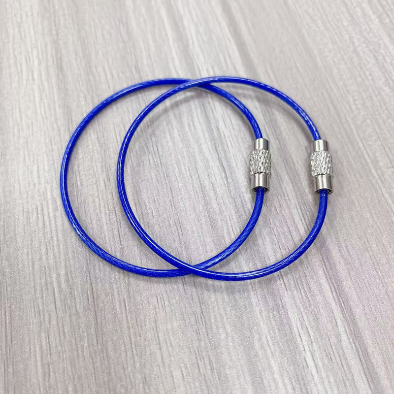 재고 와이어 로프 링 키 체인 스테인레스 스틸 컬러 고무 코팅 와이어 링 플라스틱 스틸 와이어 잠금 큰 협상