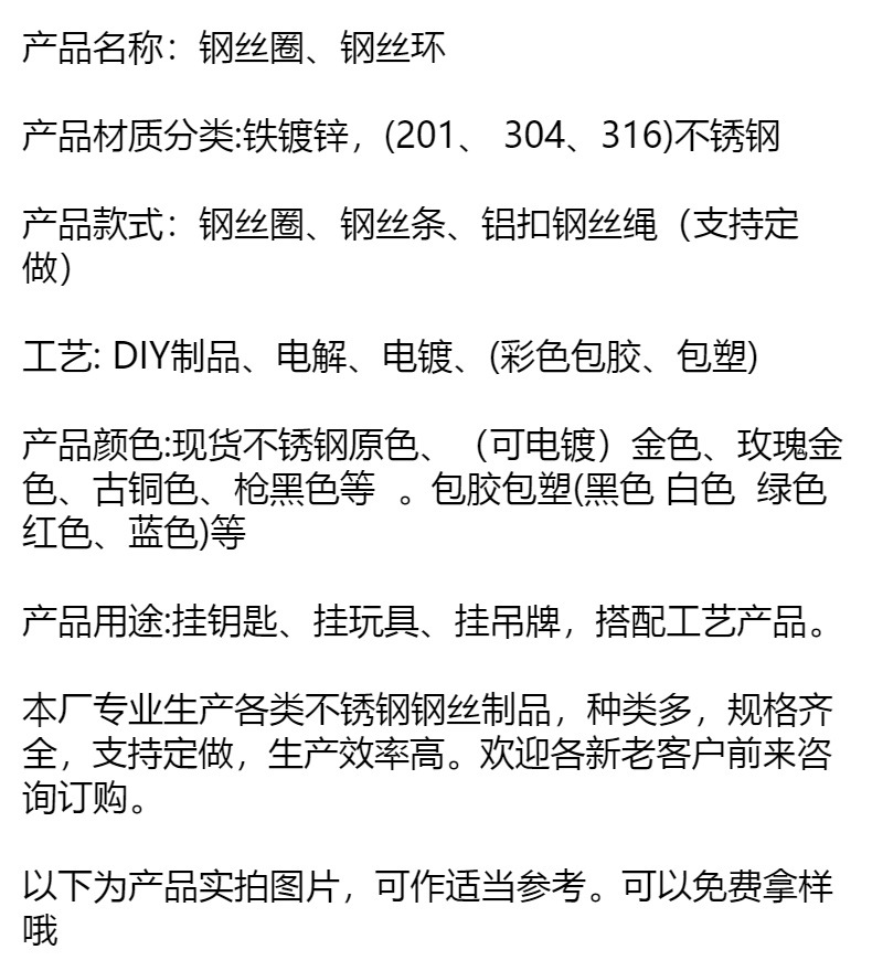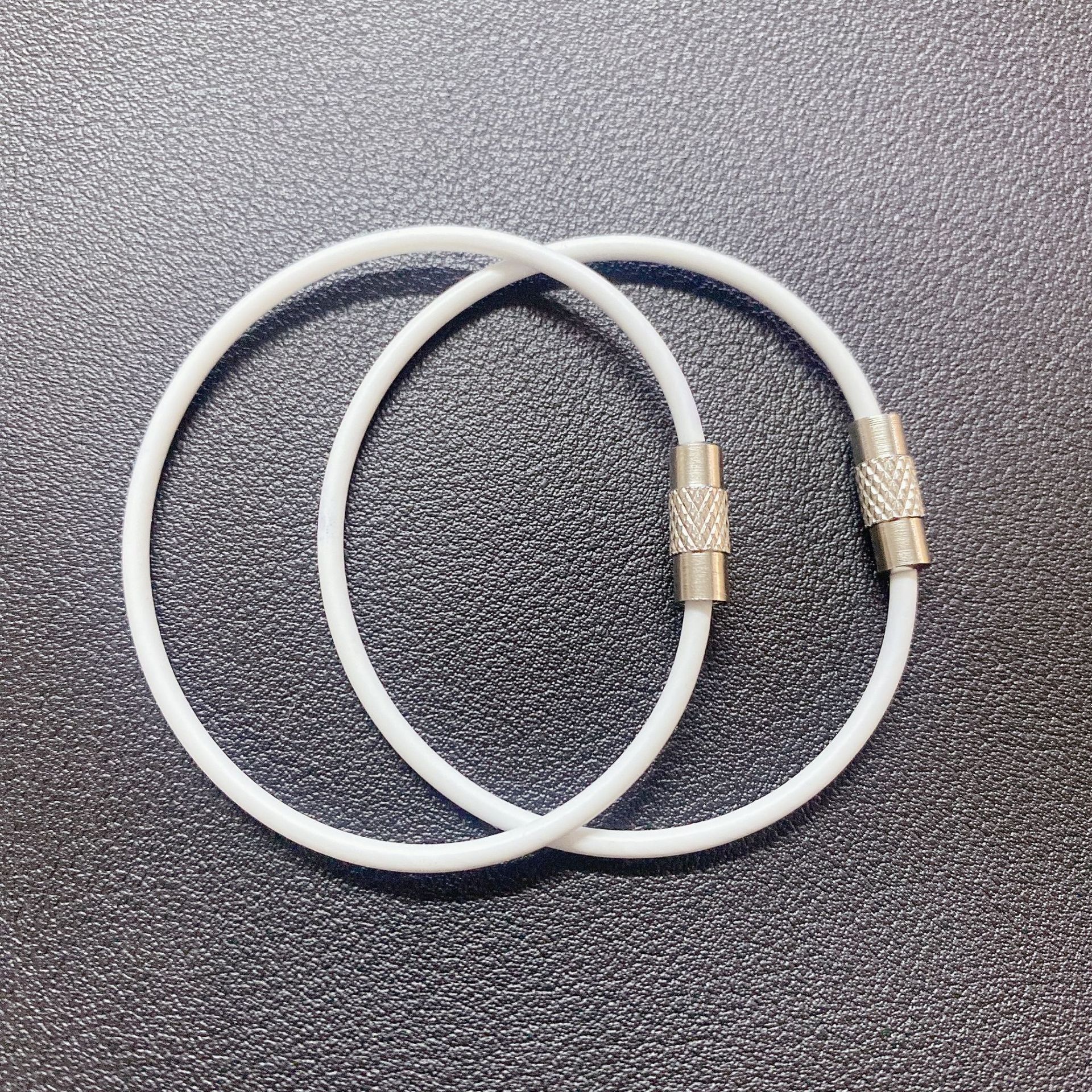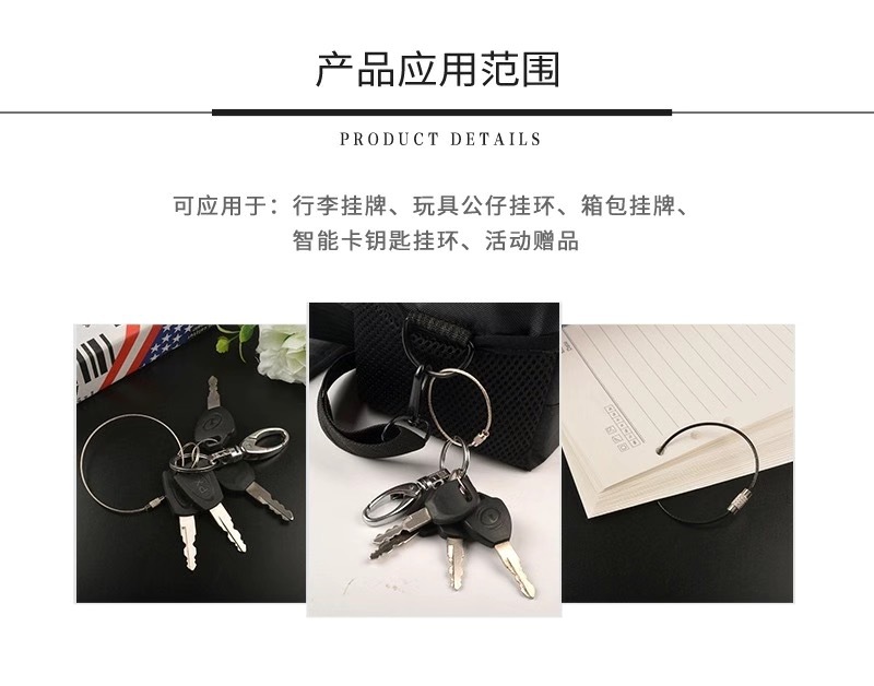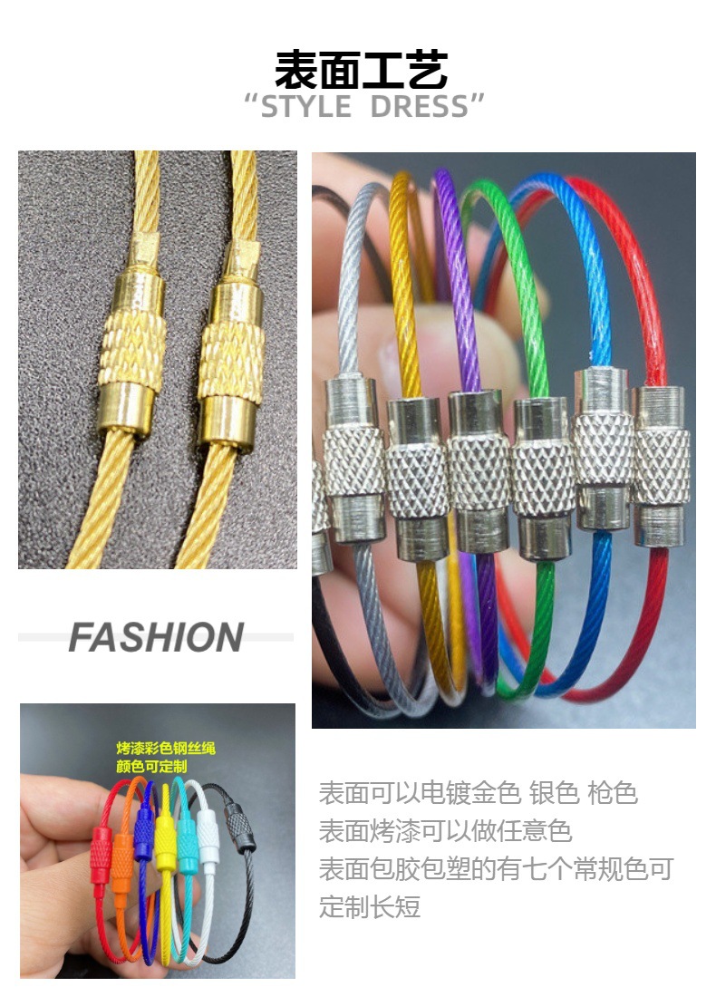 재고 와이어 로프 링 키 체인 스테인레스 스틸 컬러 고무 코팅 와이어 링 플라스틱 스틸 와이어 잠금 큰 협상