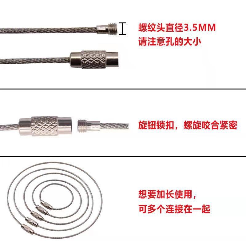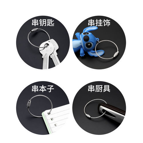 재고 와이어 로프 링 키 체인 스테인레스 스틸 컬러 고무 코팅 와이어 링 플라스틱 스틸 와이어 잠금 큰 협상스토어 가기