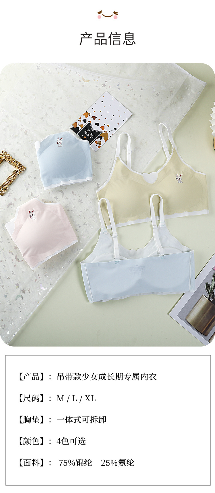 아이스 실크 여자 학생 멜빵 브라 귀여운 만화 여자 발달 기간 8-17 세 중학생 속옷스토어 가기