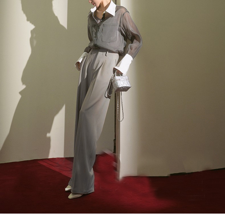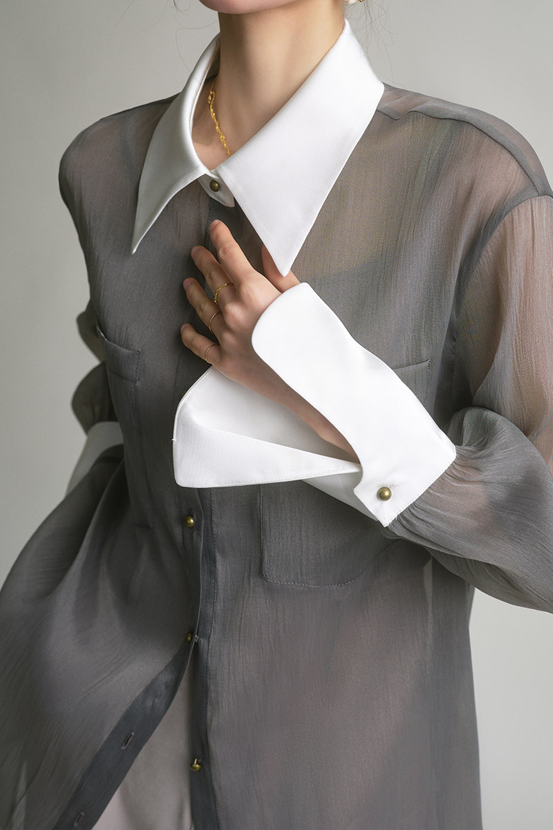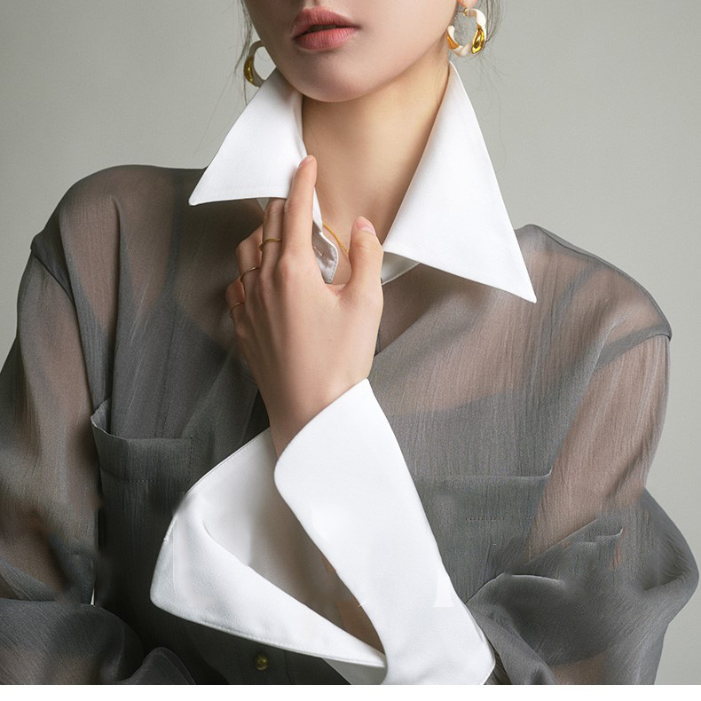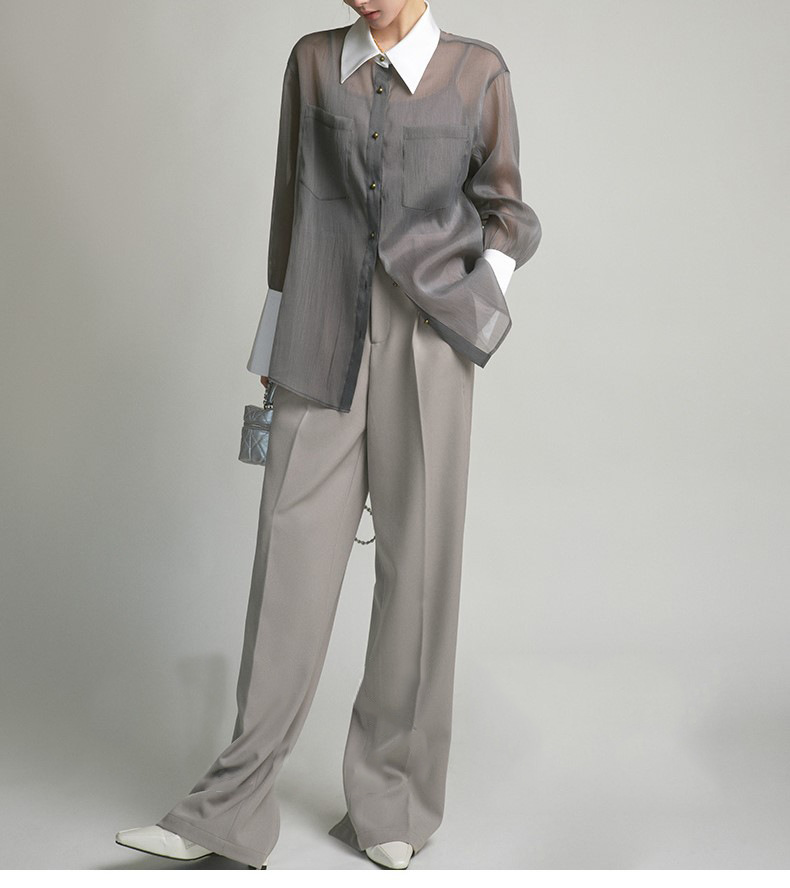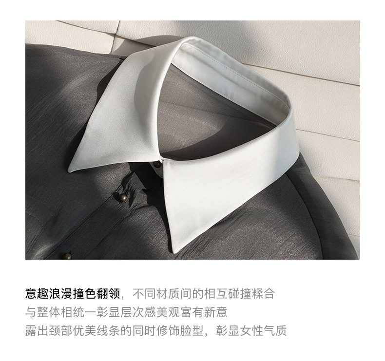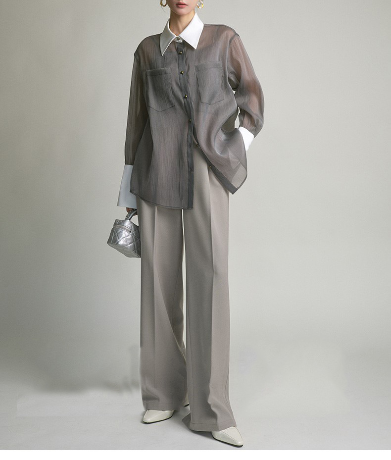 봄 여름 신상품 자외선 차단 상의, 우아하고 향기로운 프렌치 스타일의 패셔너블한 셔츠, 그레이 레트로 루즈핏 셔츠 여성용