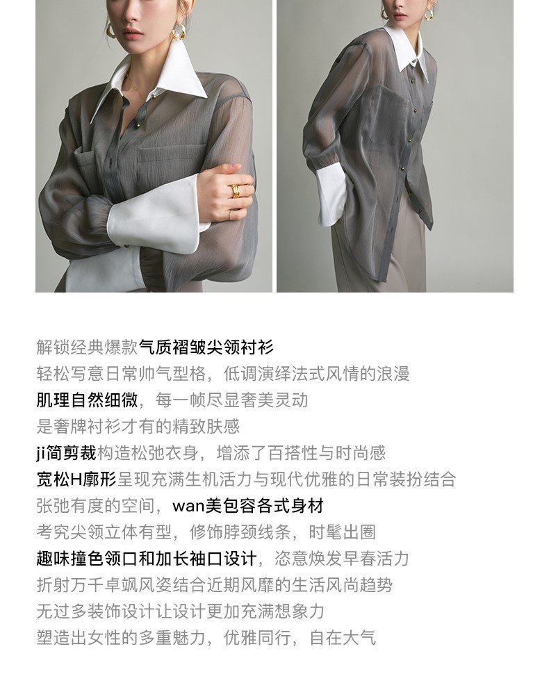 봄 여름 신상품 자외선 차단 상의, 우아하고 향기로운 프렌치 스타일의 패셔너블한 셔츠, 그레이 레트로 루즈핏 셔츠 여성용스토어 가기