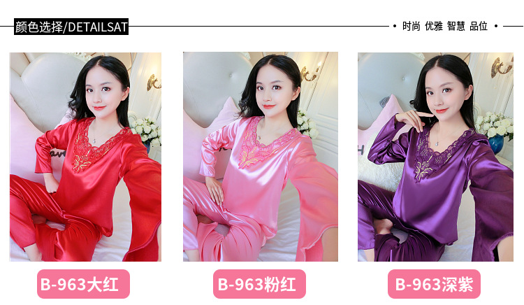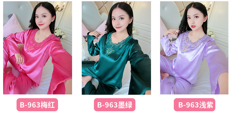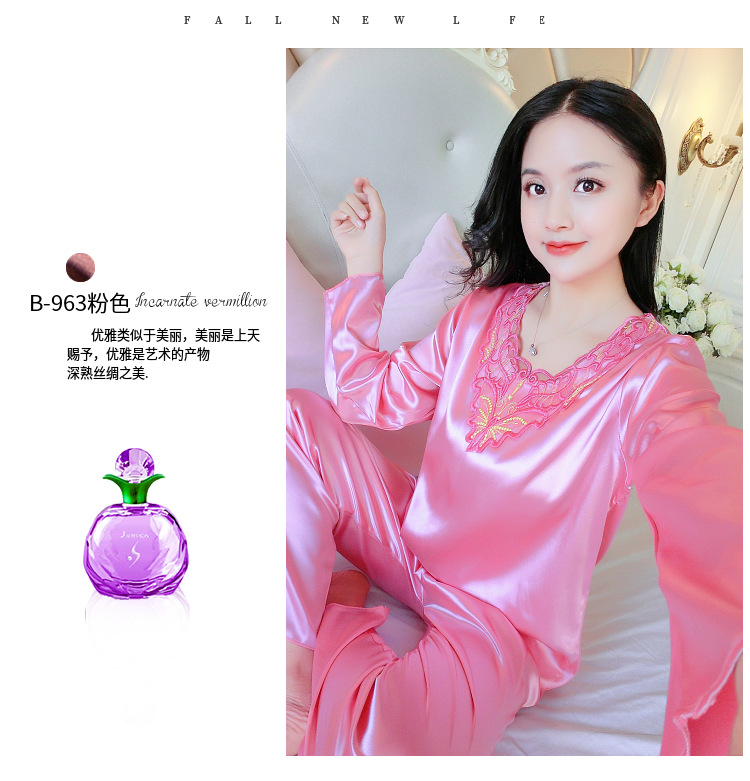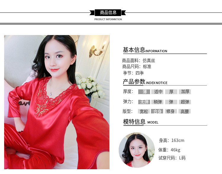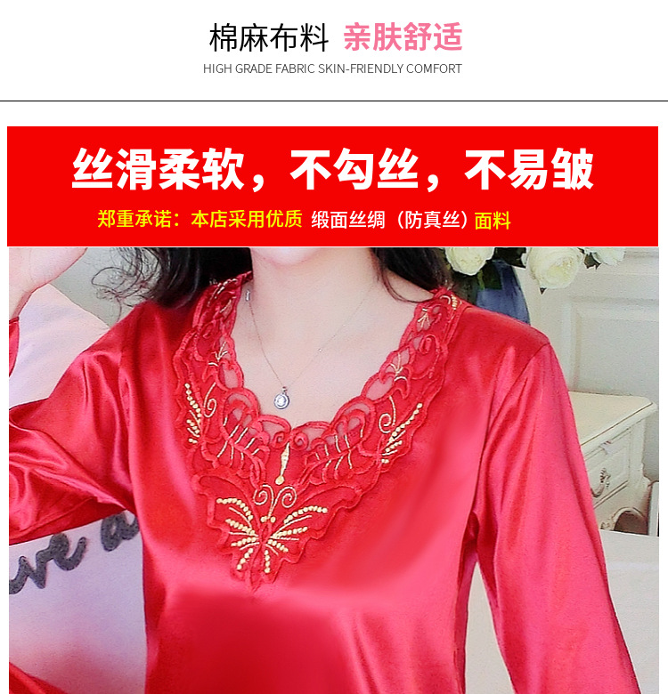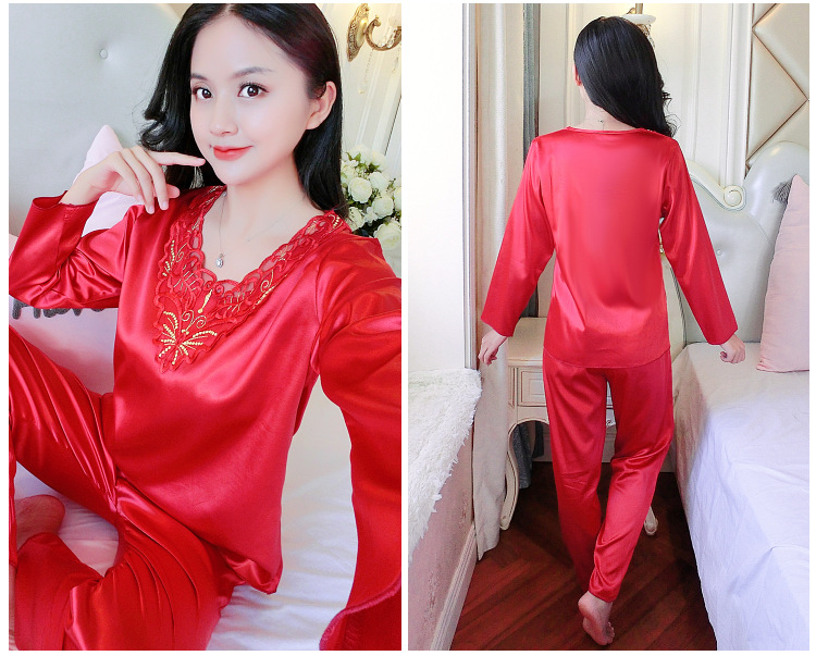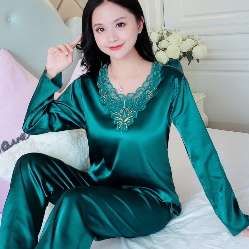 느슨한 플러스 사이즈 실크 잠옷 여성 봄과 가을 여름 긴팔 바지 얇은 투피스 세트 섹시한 아이스 실크 홈 옷