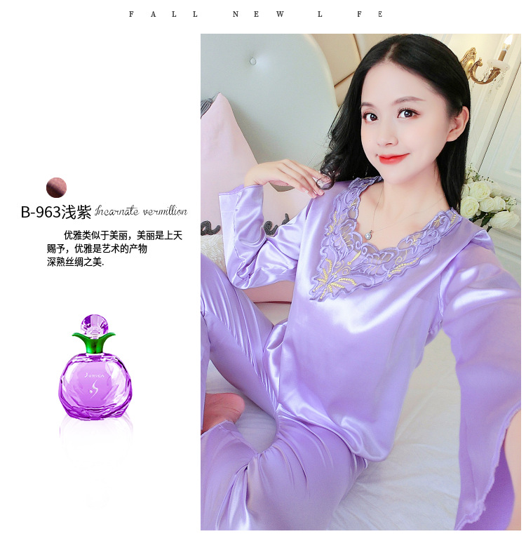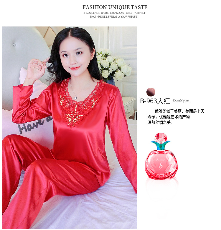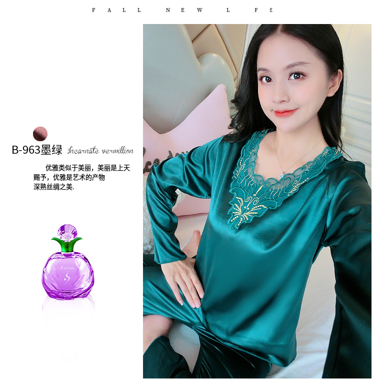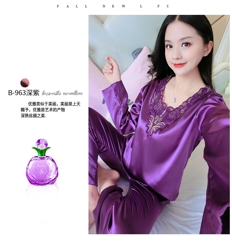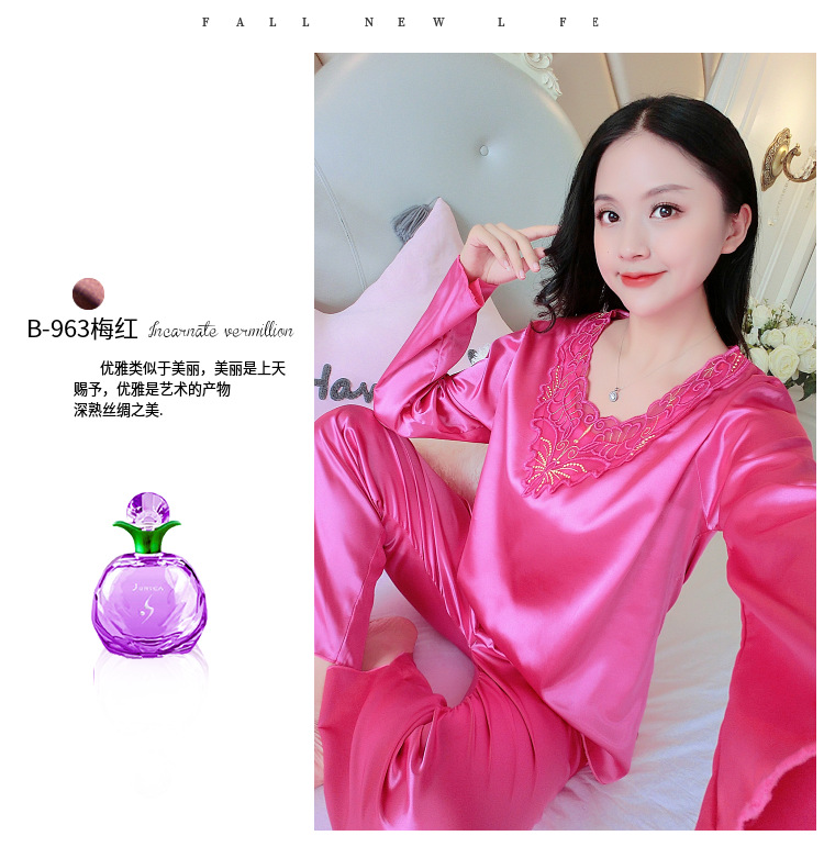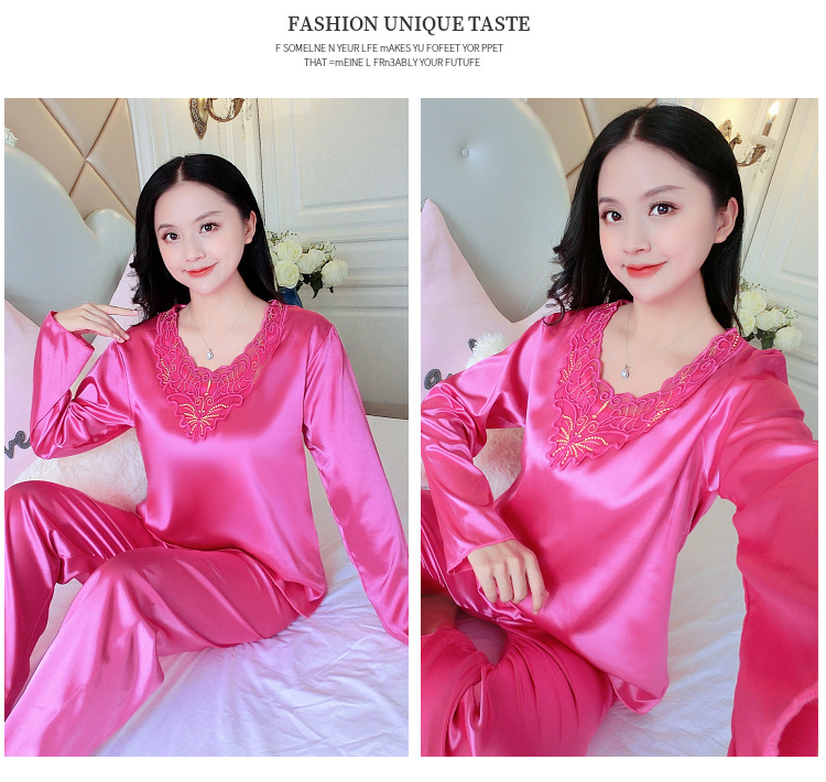느슨한 플러스 사이즈 실크 잠옷 여성 봄과 가을 여름 긴팔 바지 얇은 투피스 세트 섹시한 아이스 실크 홈 옷스토어 가기