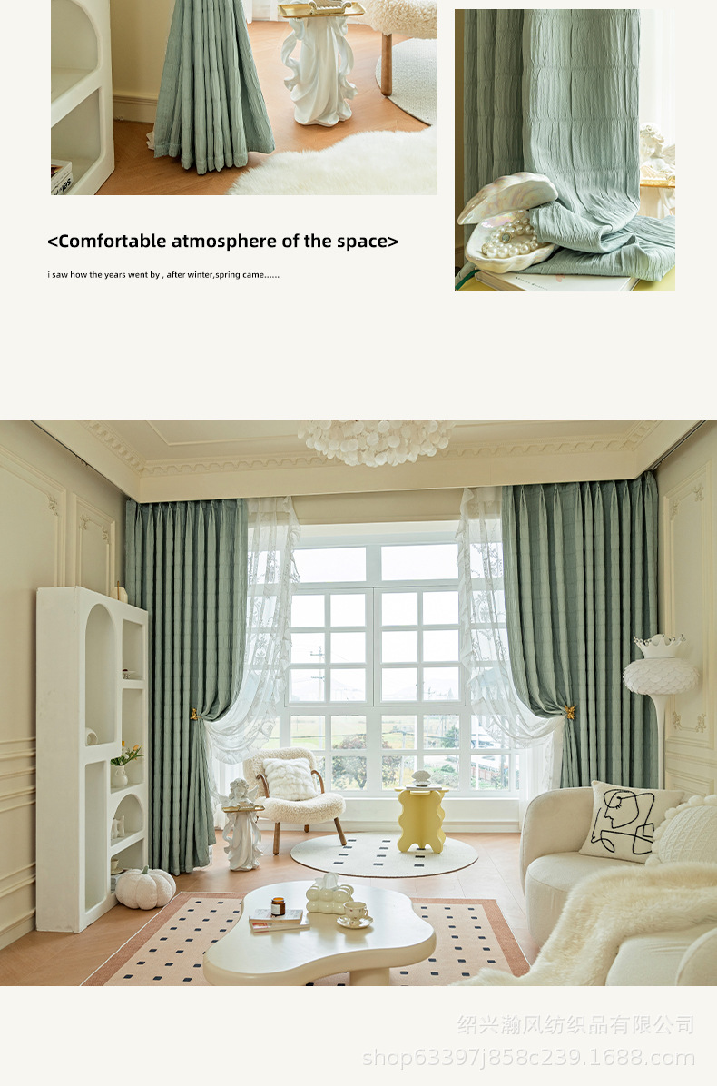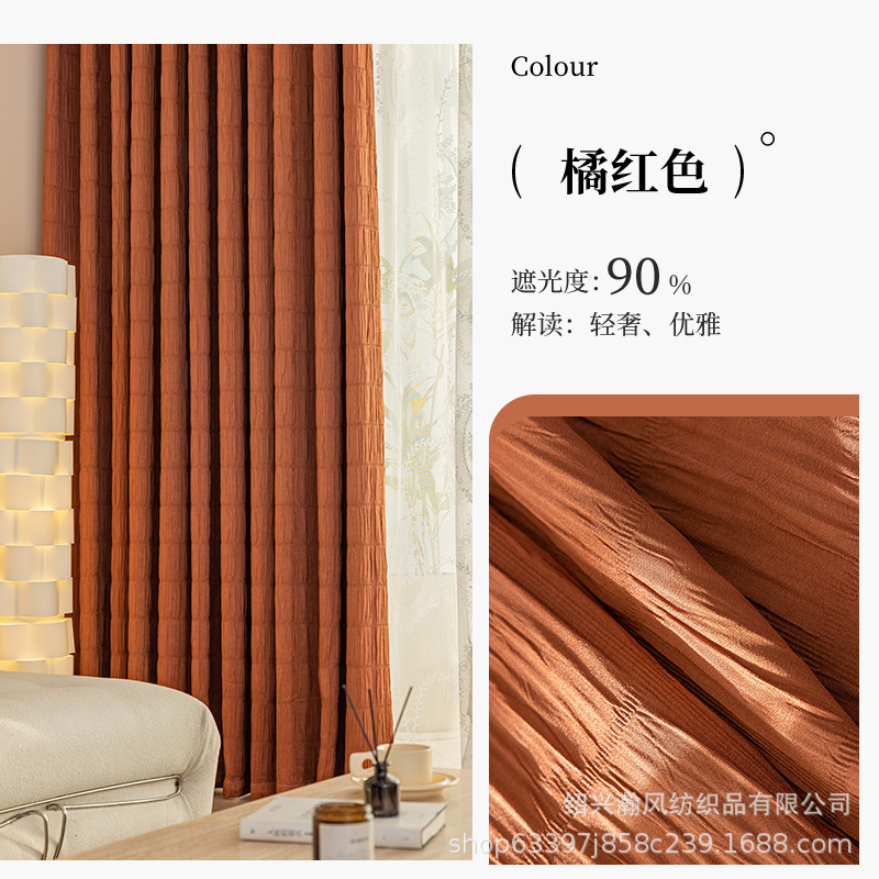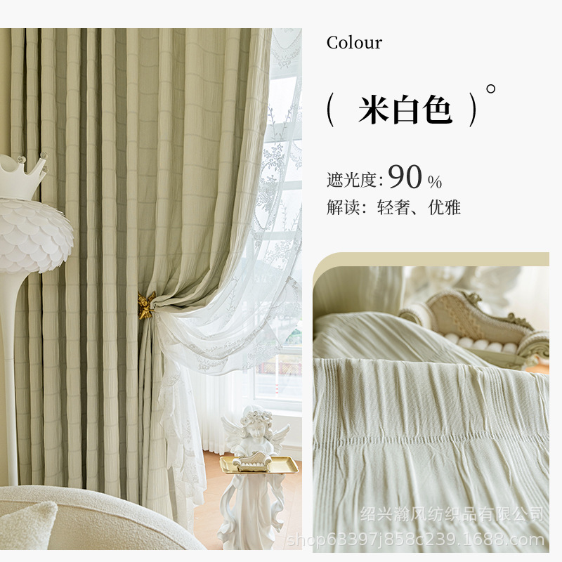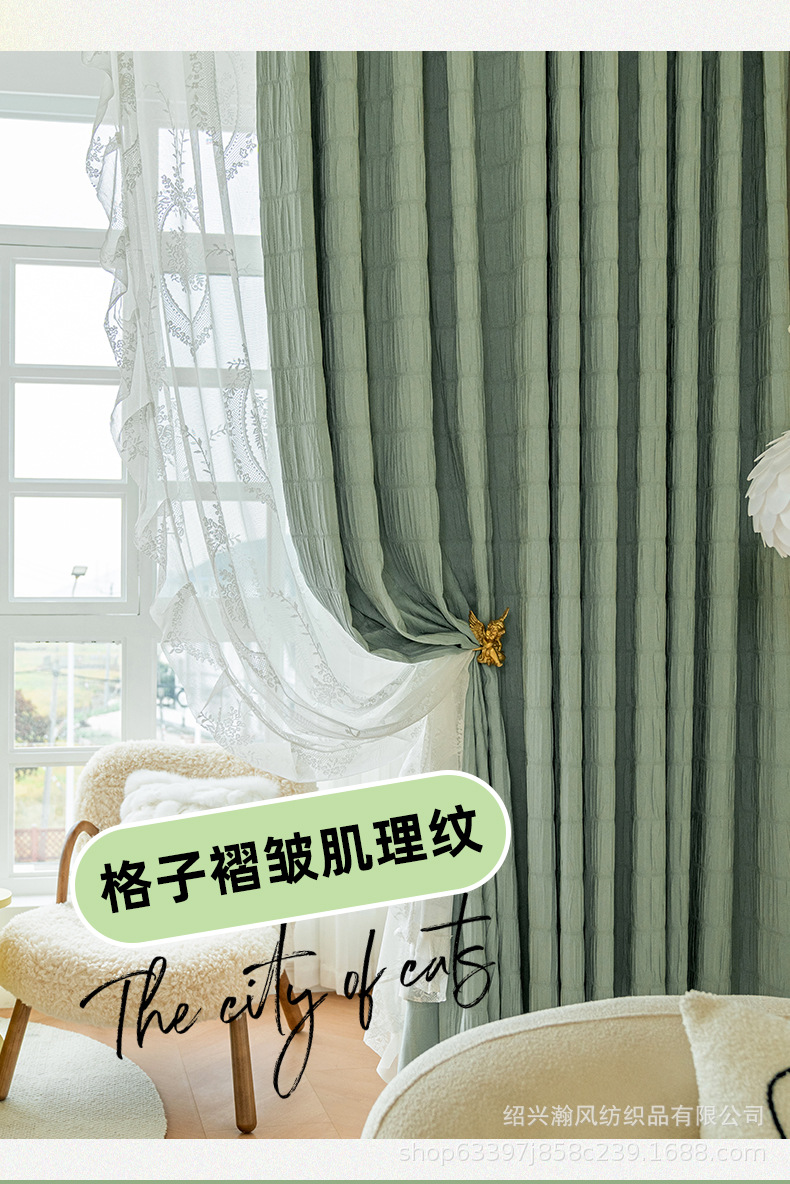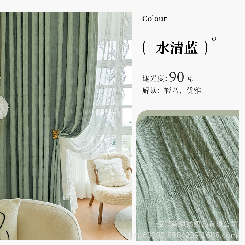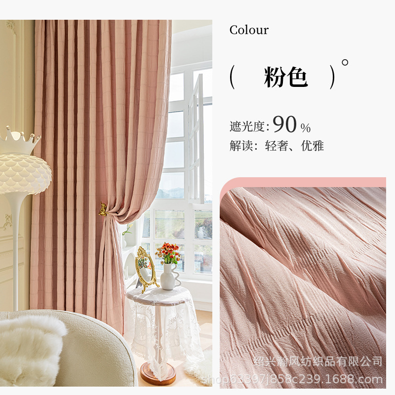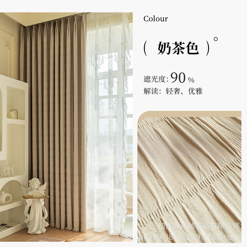 한국 주름 커튼 2023 새로운 대형 격자 무늬 주름 두꺼운 간단한 거실 침실 음영 완제품 도매 수 있습니다스토어 가기