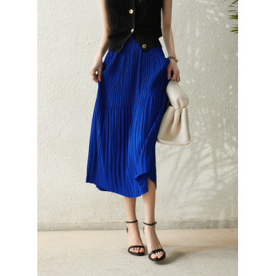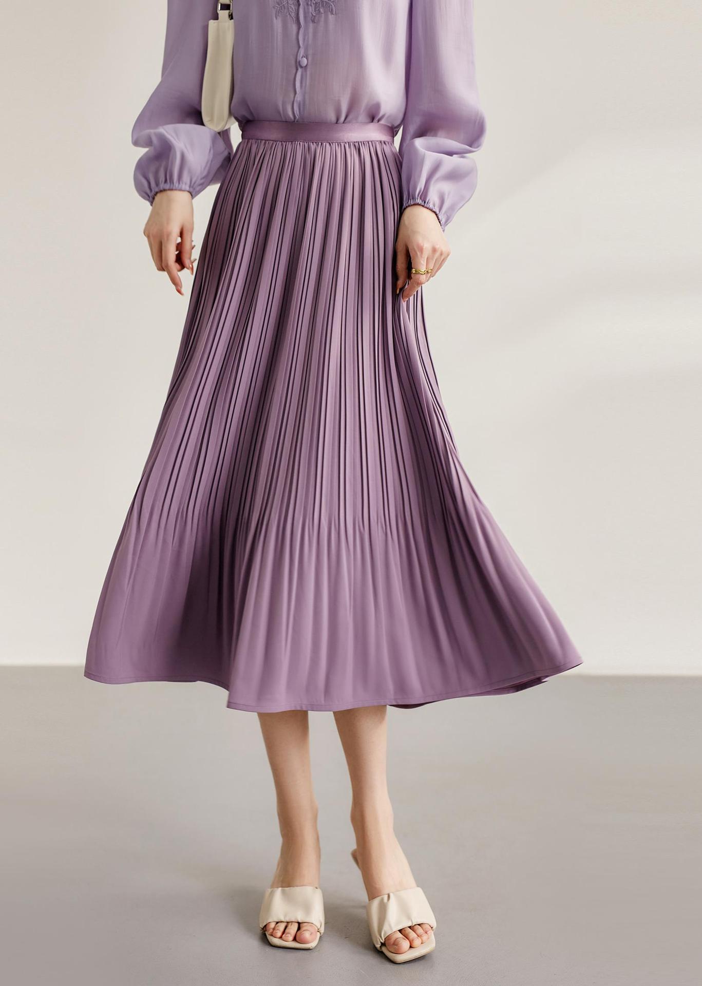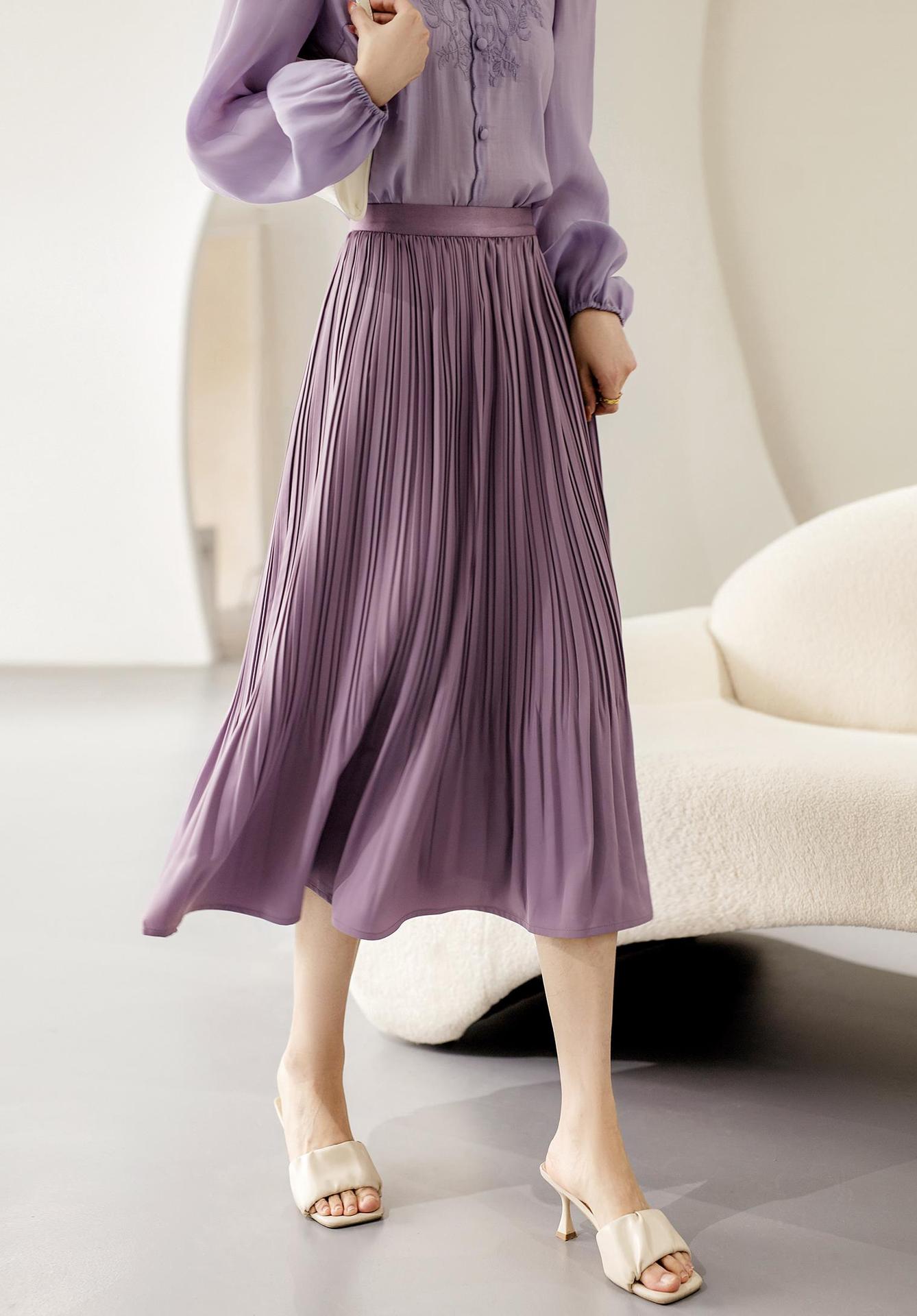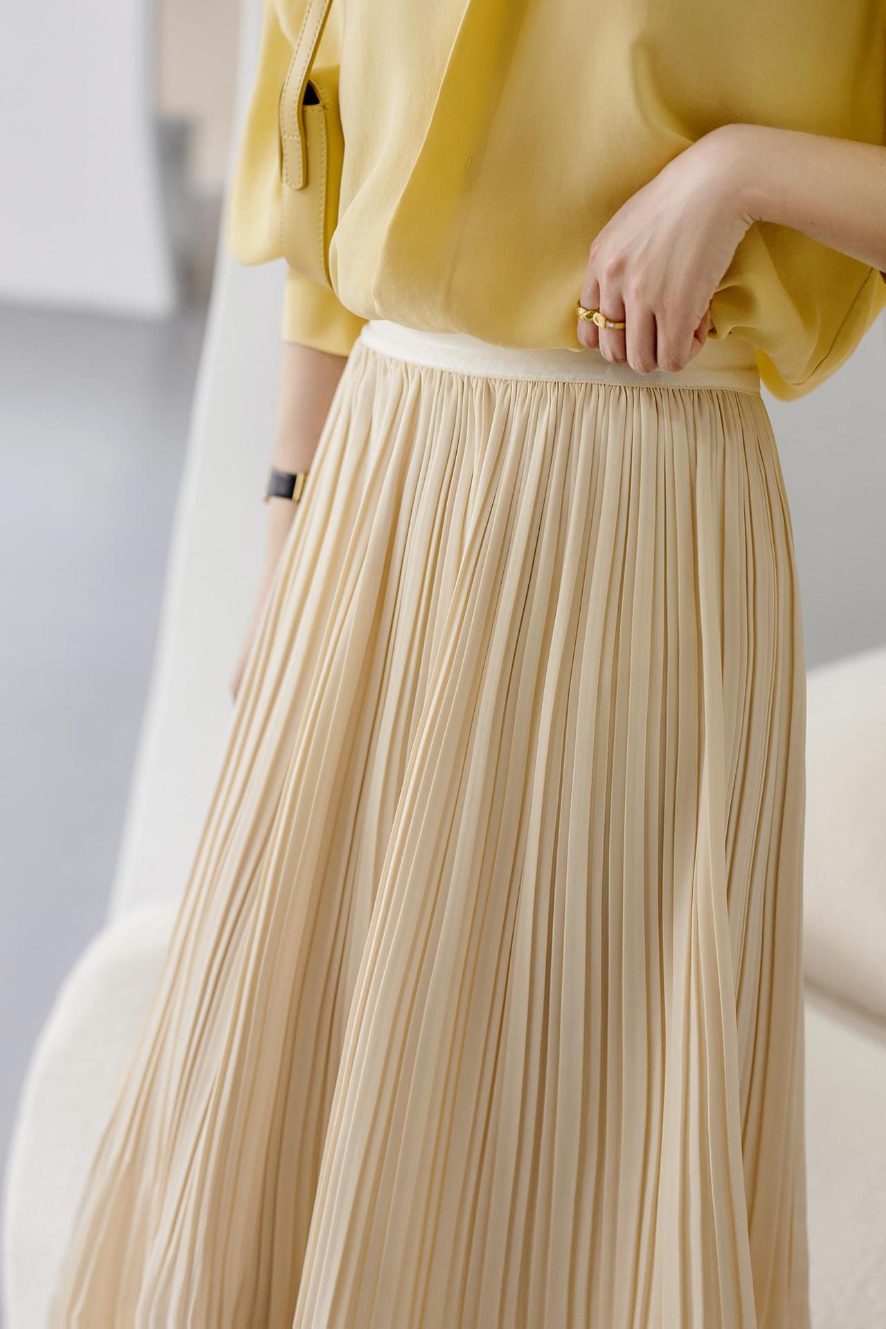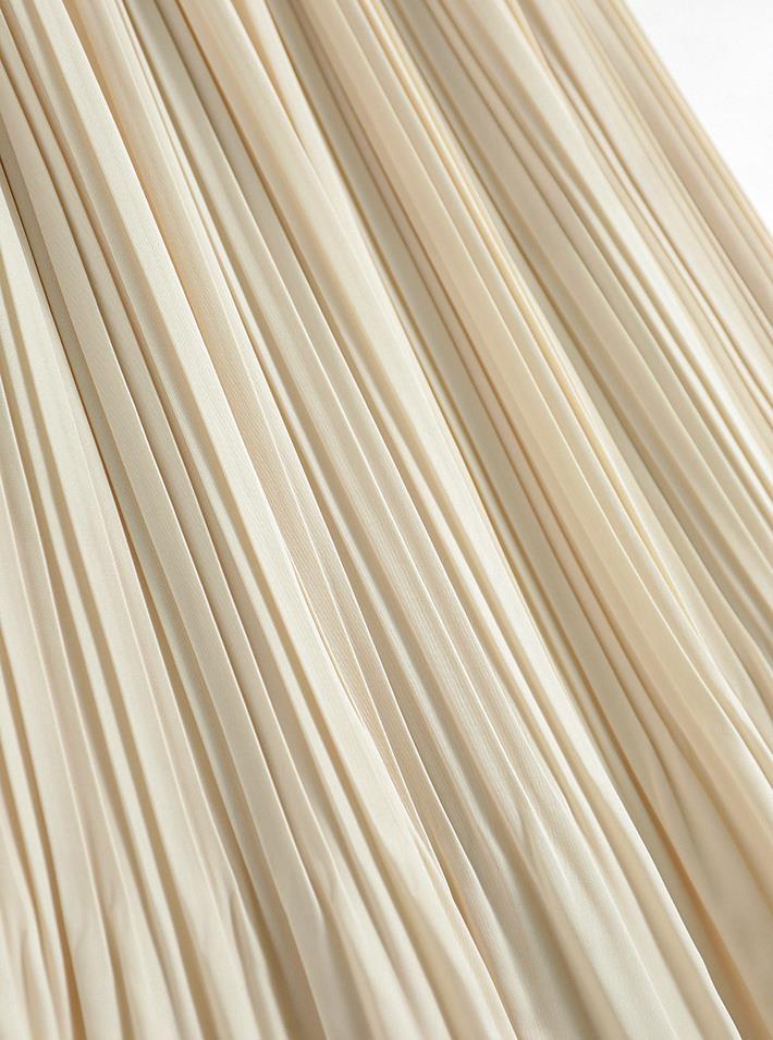 Baozhu 파빌리온 4 색 옵션 탄성 허리 슬리밍 하이 웨이스트 플리츠 스커트 A 라인 스커트 여성 봄 19536