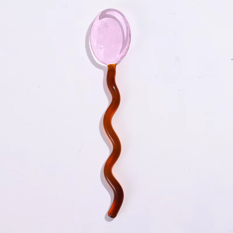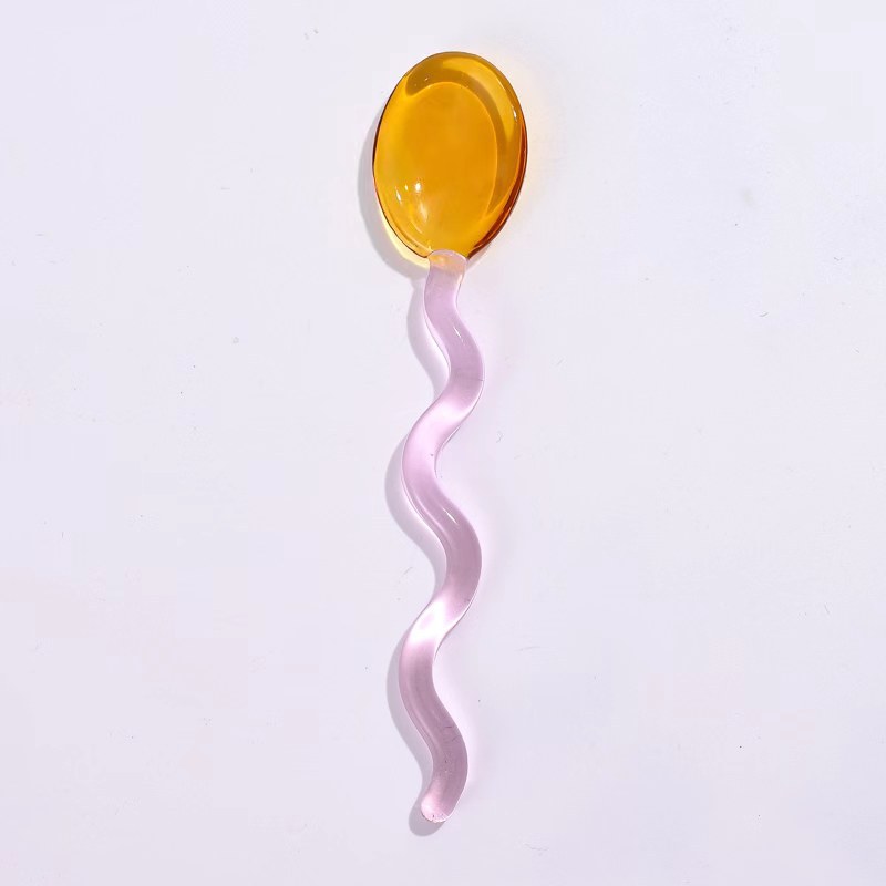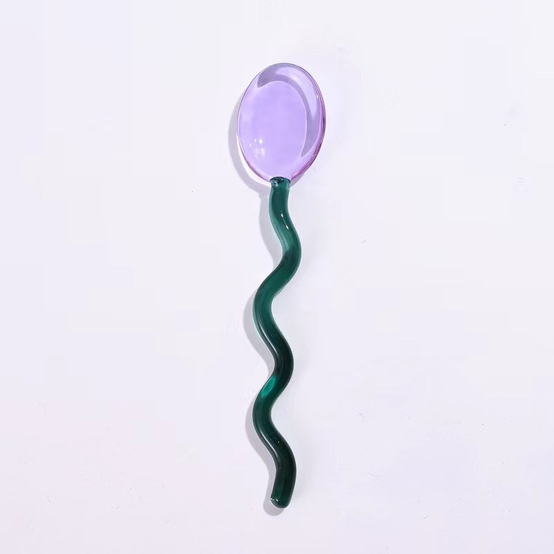 크리 에이 티브 우유 디저트 유리 스푼 색상 투명 고온 내성 유리 스푼 귀여운 모양의 커피 믹싱 스푼