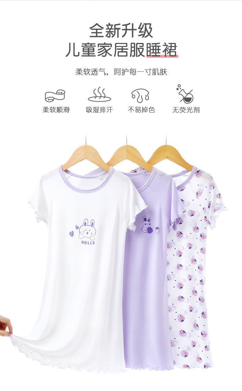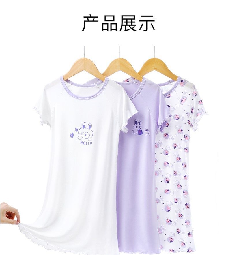 여아 잠옷 여름 스타일 아이스 실크 모달 아동 잠옷 여아 중대형 어린이 반팔 홈웨어 만화 패턴스토어 가기