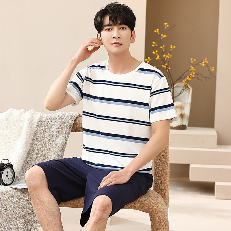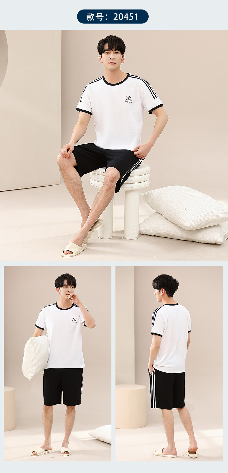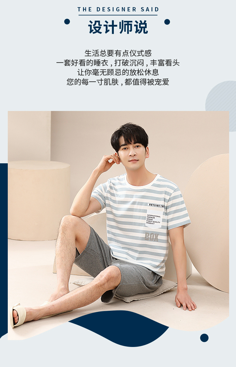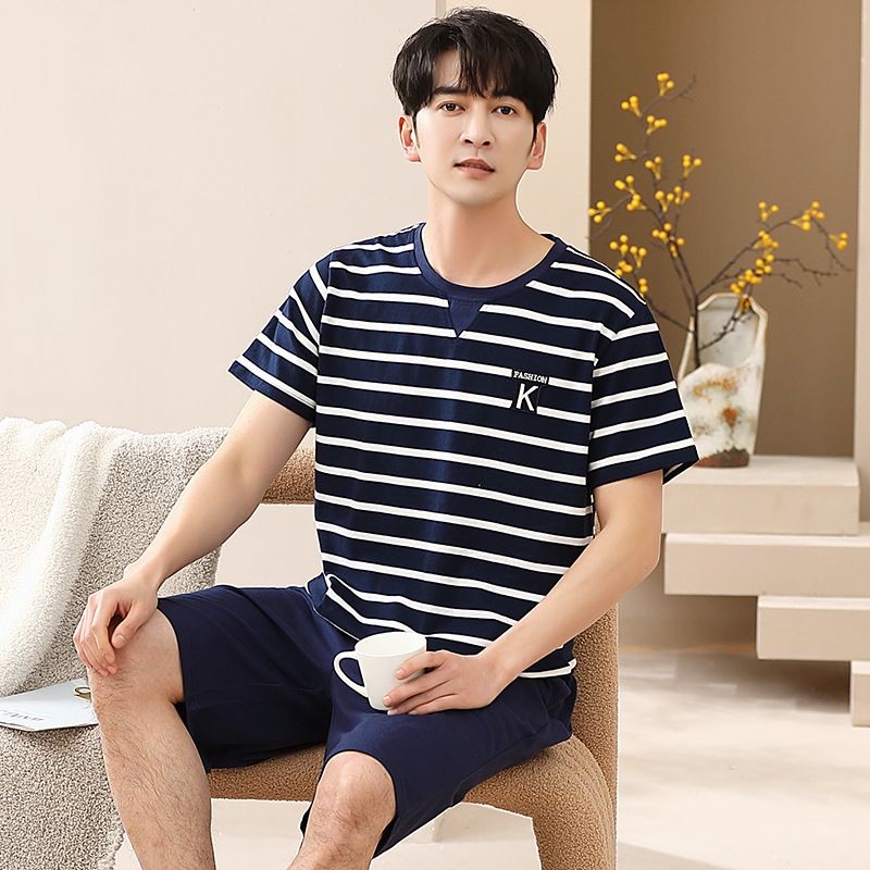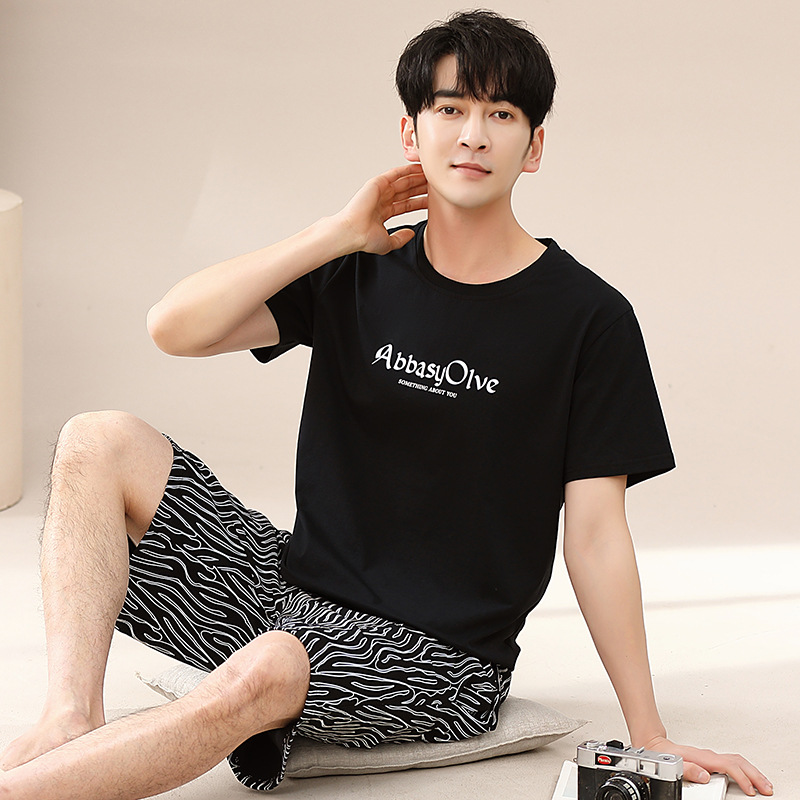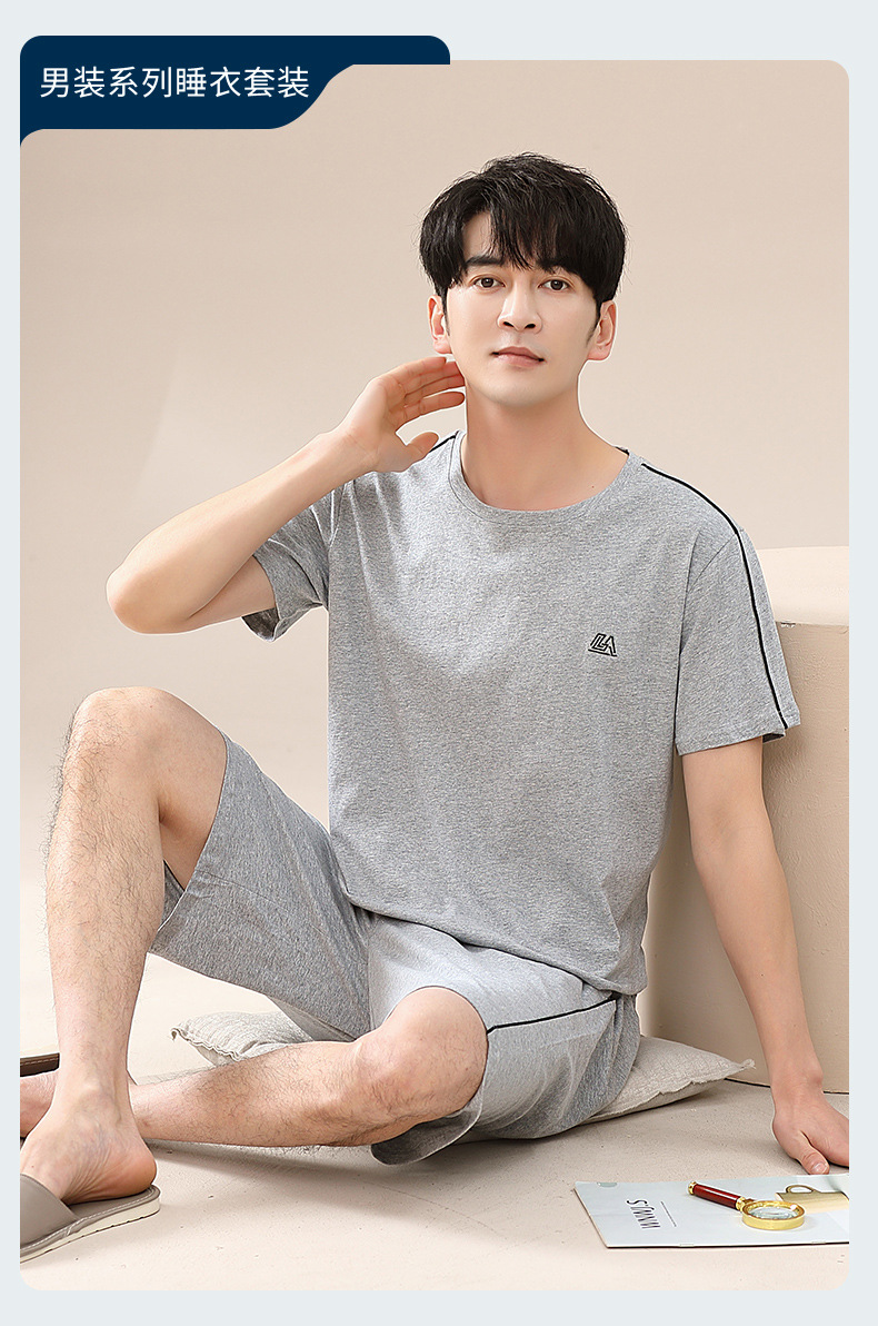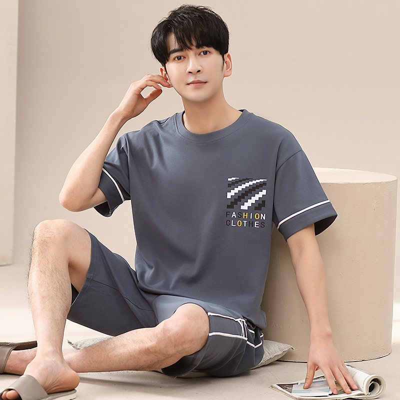 캐주얼 여름 남성 잠옷 순수 단순 느슨한 얇은 티셔츠 반바지 청소년 가정복 투피스 복장스토어 가기
