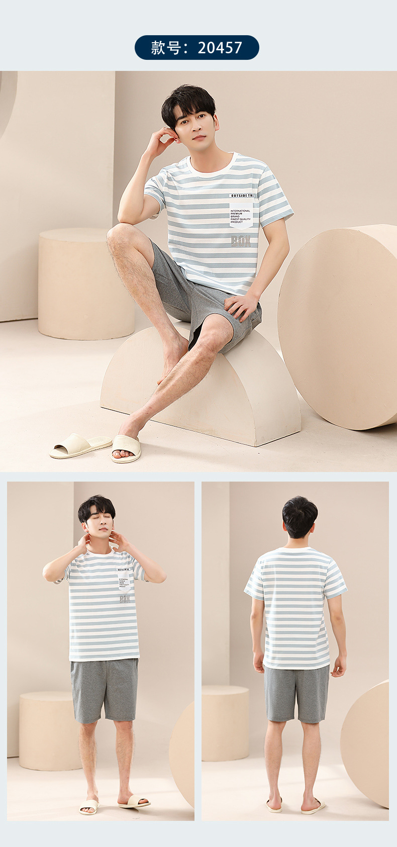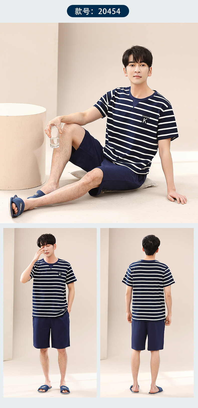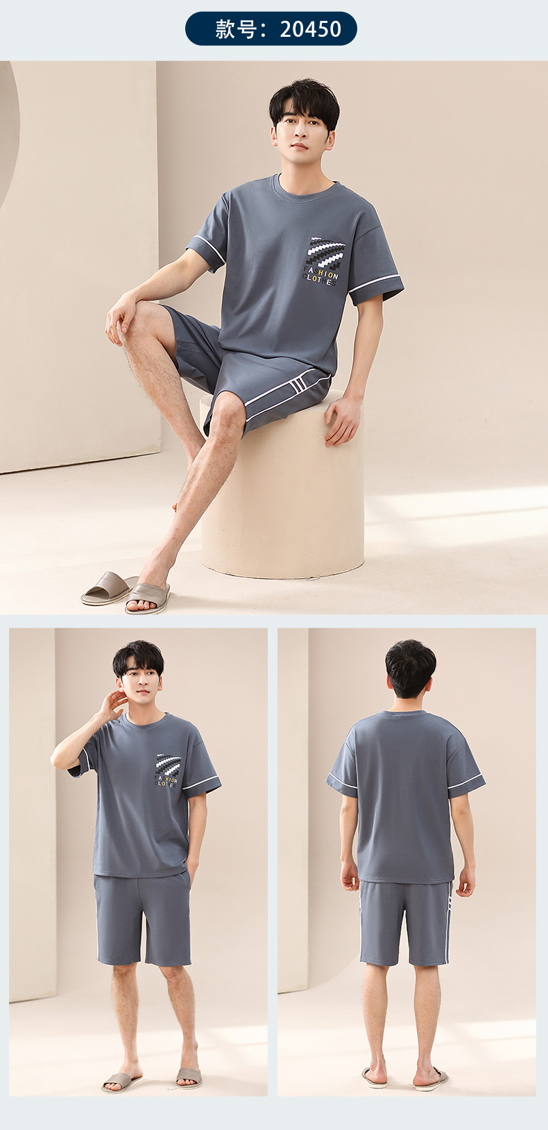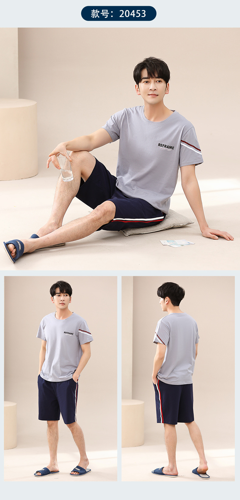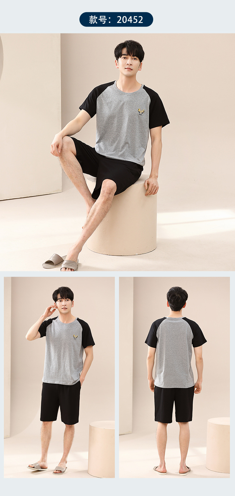 캐주얼 여름 남성 잠옷 순수 단순 느슨한 얇은 티셔츠 반바지 청소년 가정복 투피스 복장스토어 가기