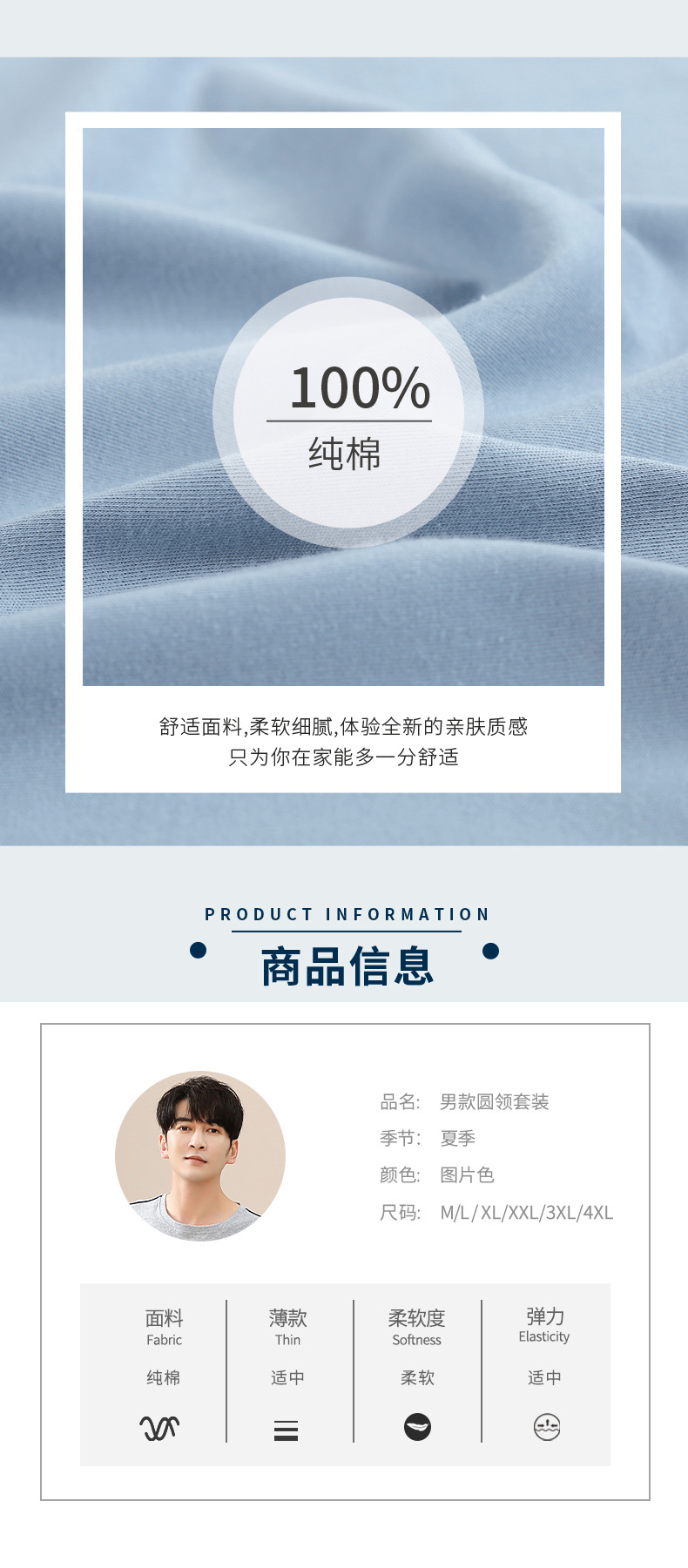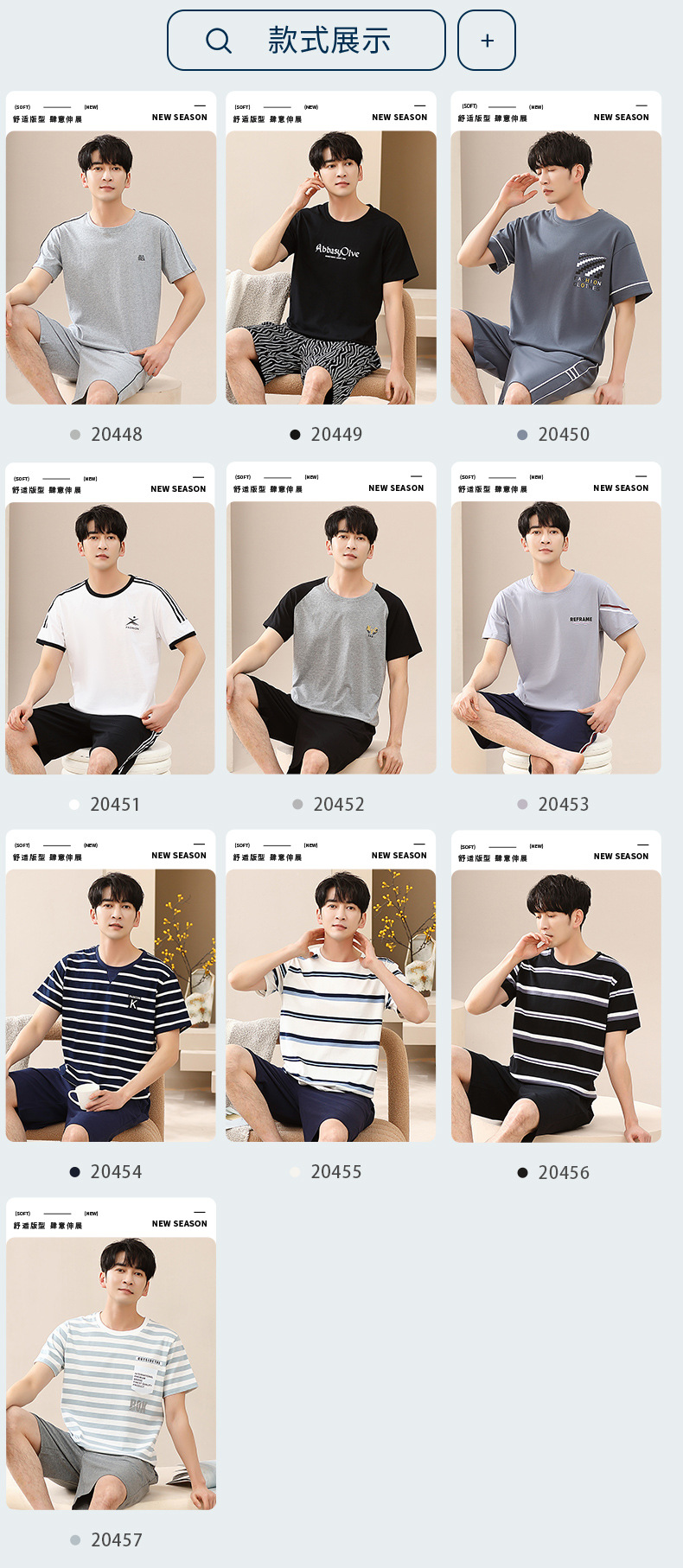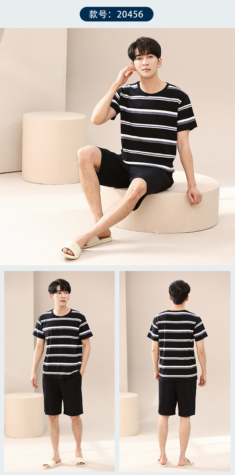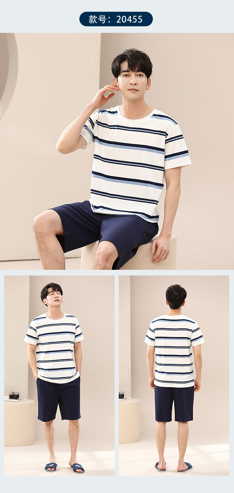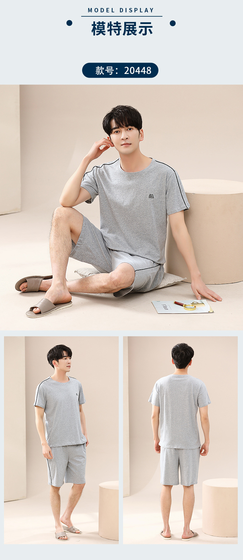 캐주얼 여름 남성 잠옷 순수 단순 느슨한 얇은 티셔츠 반바지 청소년 가정복 투피스 복장스토어 가기