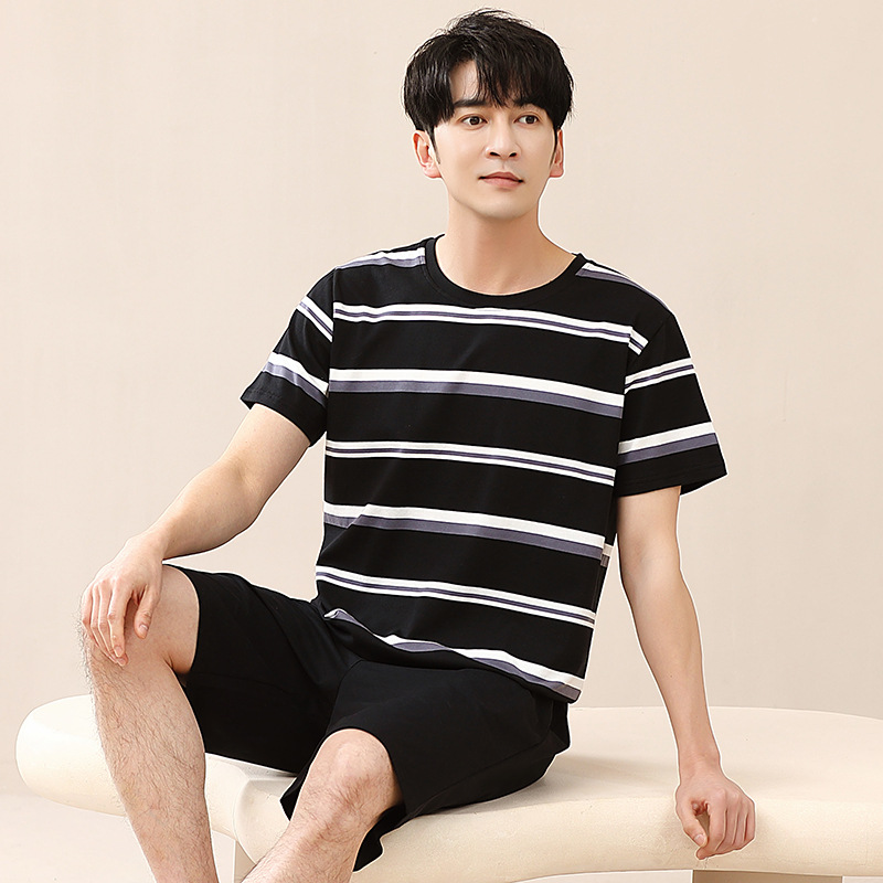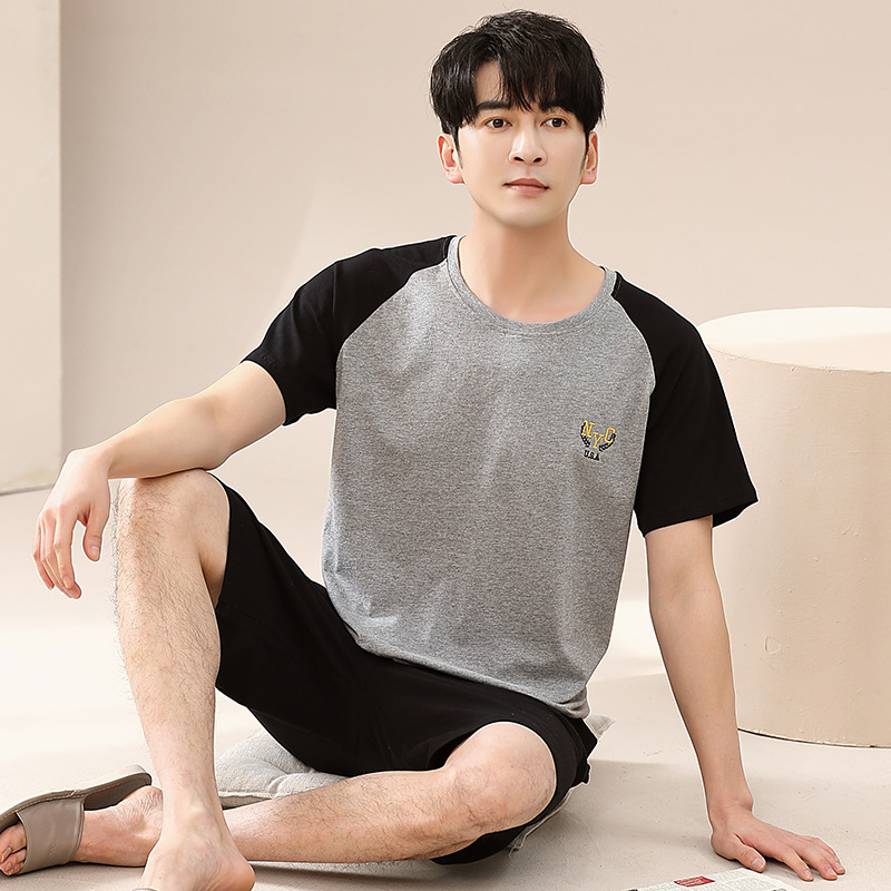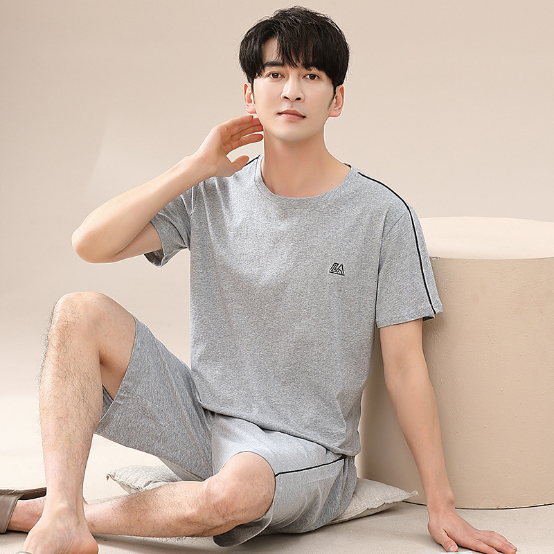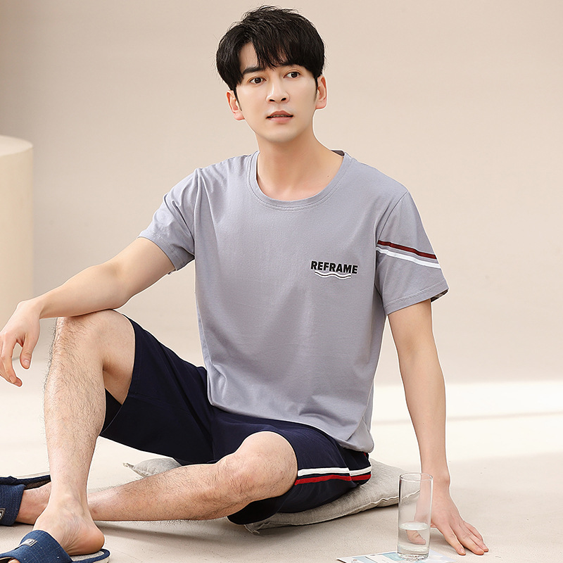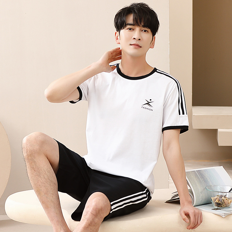 캐주얼 여름 남성 잠옷 순수 단순 느슨한 얇은 티셔츠 반바지 청소년 가정복 투피스 복장