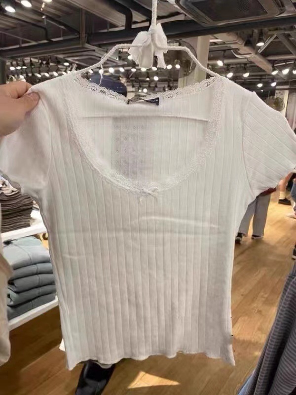순수한 레이스 젤리탑 소녀 발레 스타일 코튼 bm 반팔 티셔츠 탑이있는 BM 스타일 브랜디스토어 가기