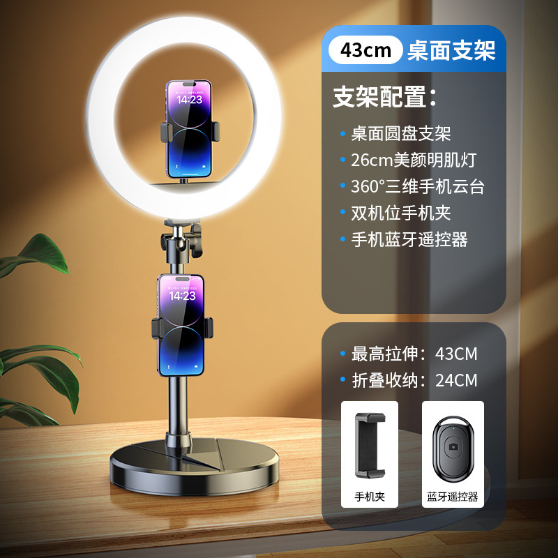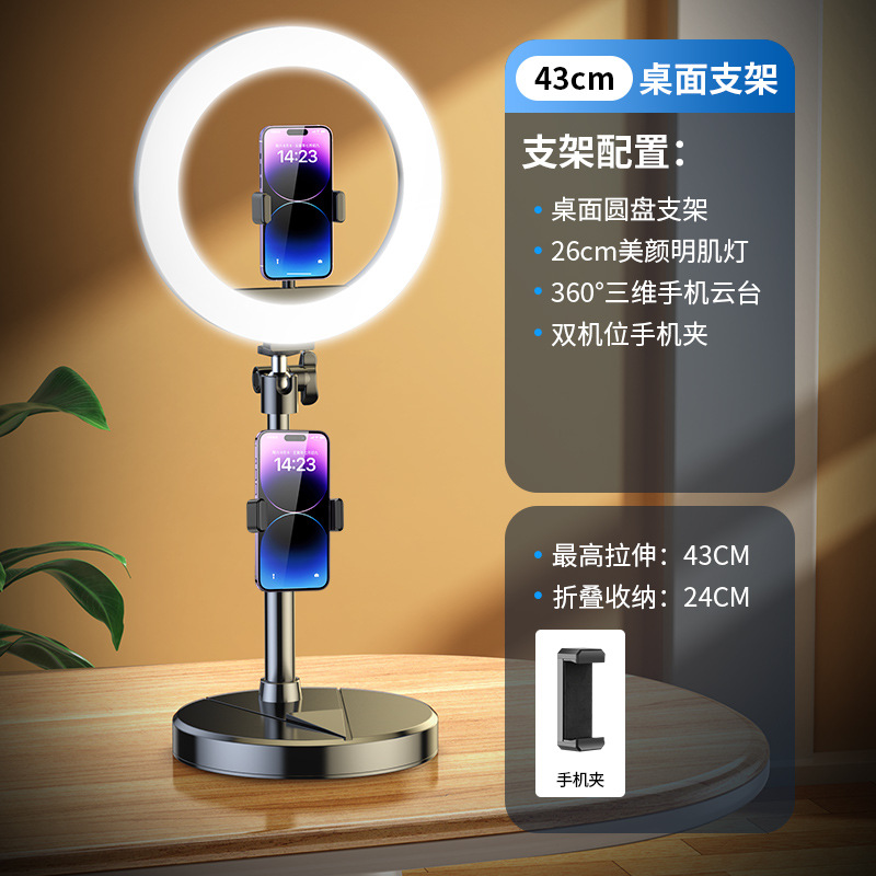 • 데스크탑 듀얼 포지션 + 26cm 뷰티 램프 + 셀카 [가중 브래킷]