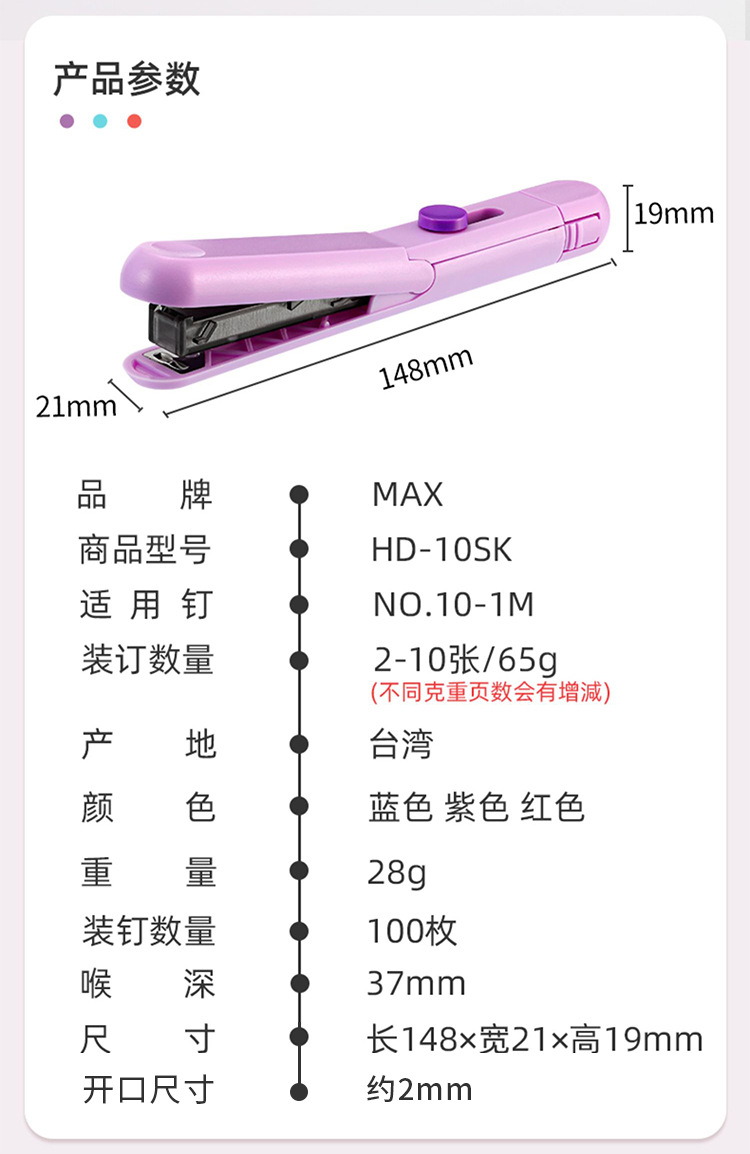 일본 Meikos MAX 휴대용 소형 경량 스테이플러 HD-10SK 스몰 사이즈 노동 절약 스테이플러