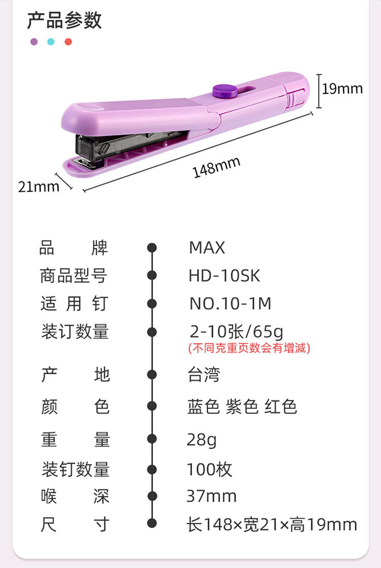 일본 Meikos MAX 휴대용 소형 경량 스테이플러 HD-10SK 스몰 사이즈 노동 절약 스테이플러스토어 가기