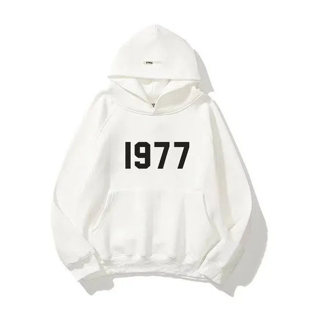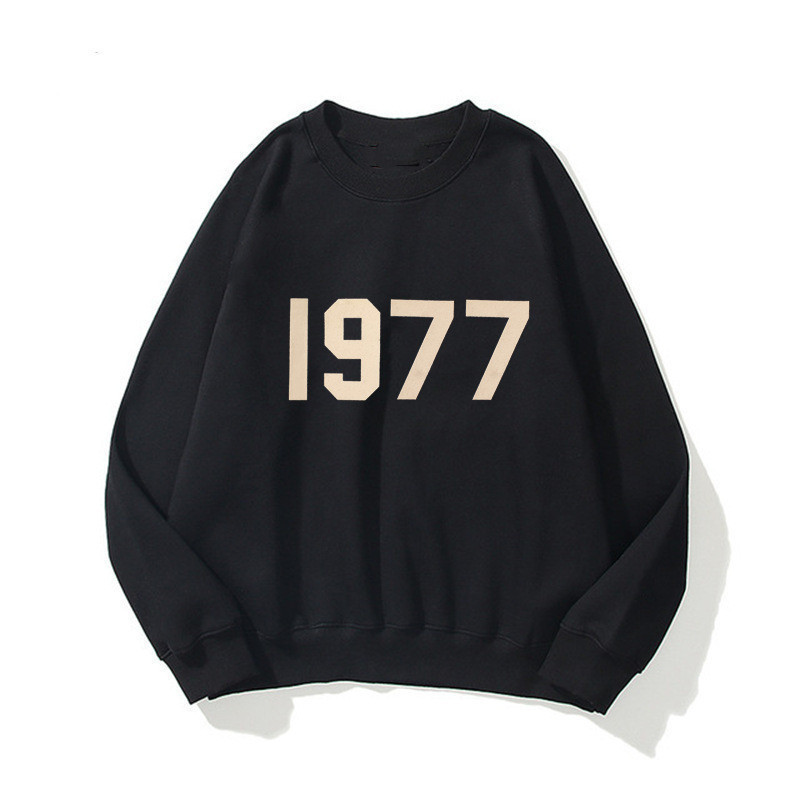 새로운 라글란 슬리브 더블 모자 더블 라인 트렌디 브랜드 스웨터 하이 스트리트 느슨한 기모 1977 캐릭터 스웨터 남성과 여성의 까마귀스토어 가기