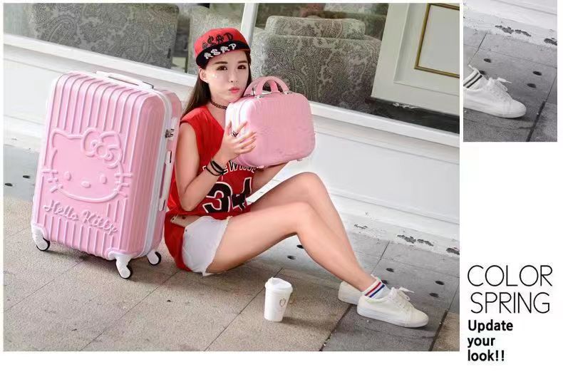 패션 귀여운 수하물 20 인치 24 인치 풀로드 여성 학생 풀 박스 유니버설 휠 여행 KT 고양이의 한국어 버전스토어 가기