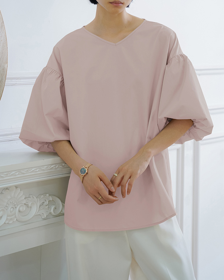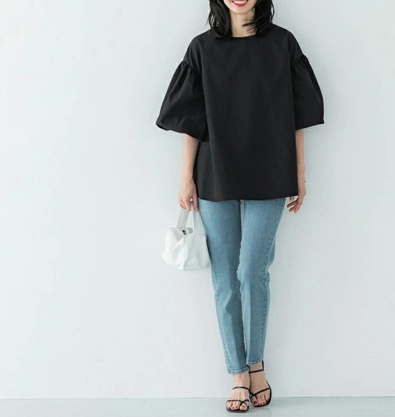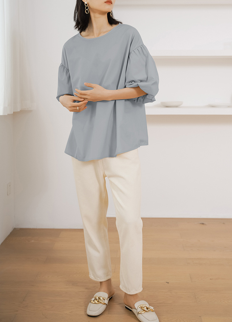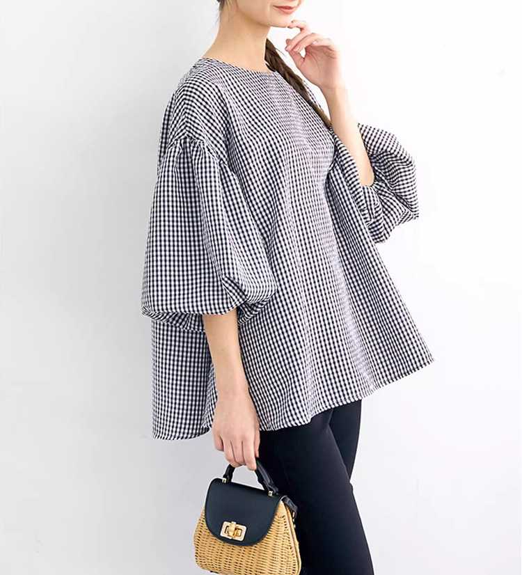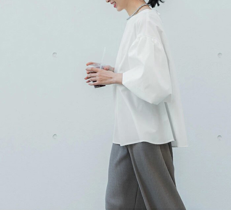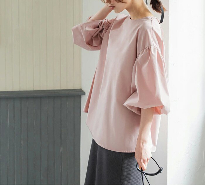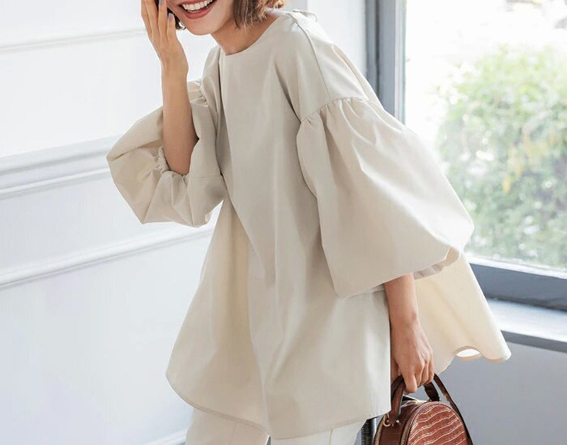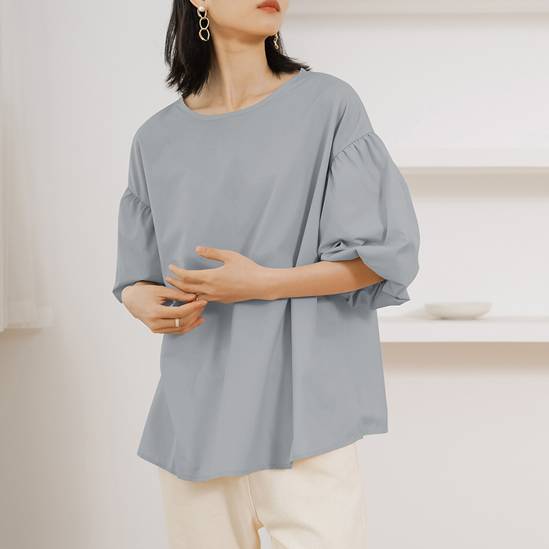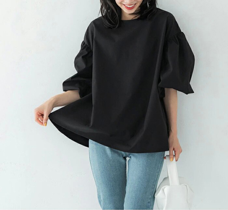 롯데 새로운 일본과 한국 여름 느슨한 대형 여성용 셔츠 면 대형 랜턴 슬리브 라운드 넥 탑 크로스 보더스토어 가기