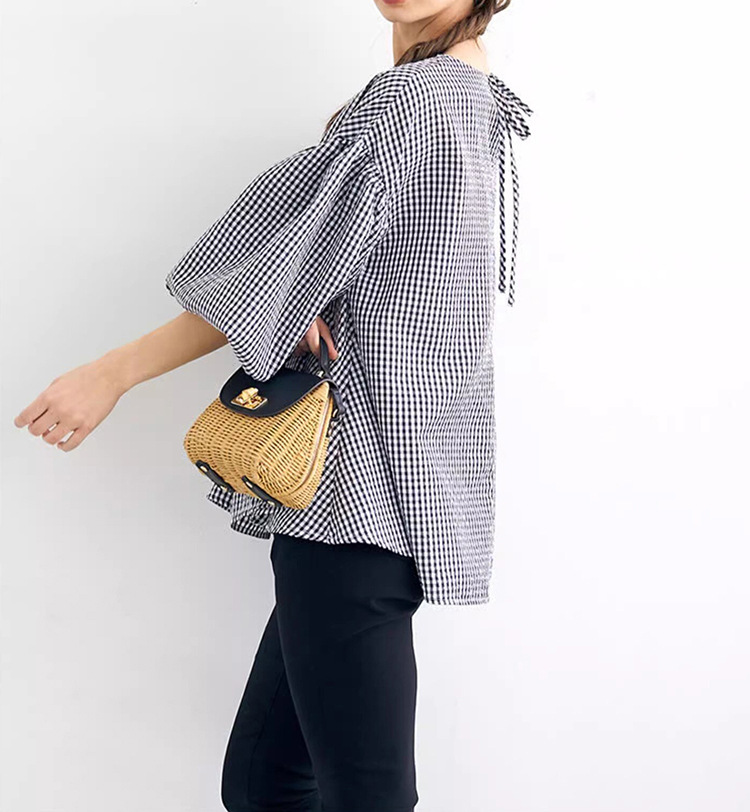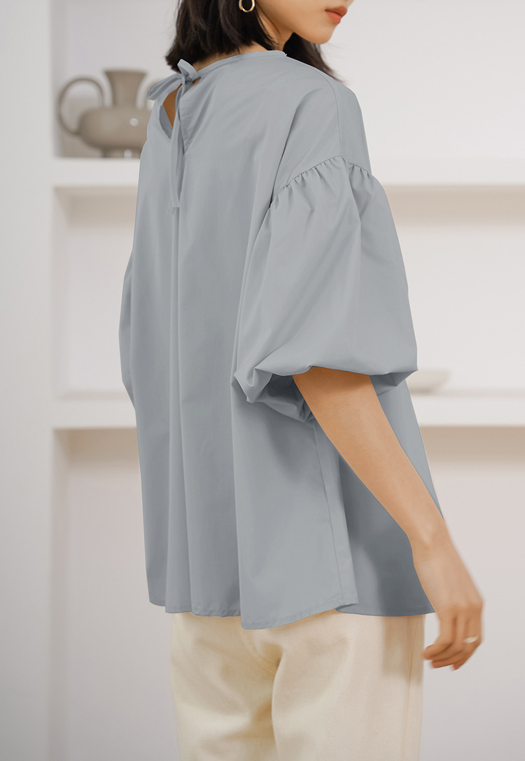 롯데 새로운 일본과 한국 여름 느슨한 대형 여성용 셔츠 면 대형 랜턴 슬리브 라운드 넥 탑 크로스 보더