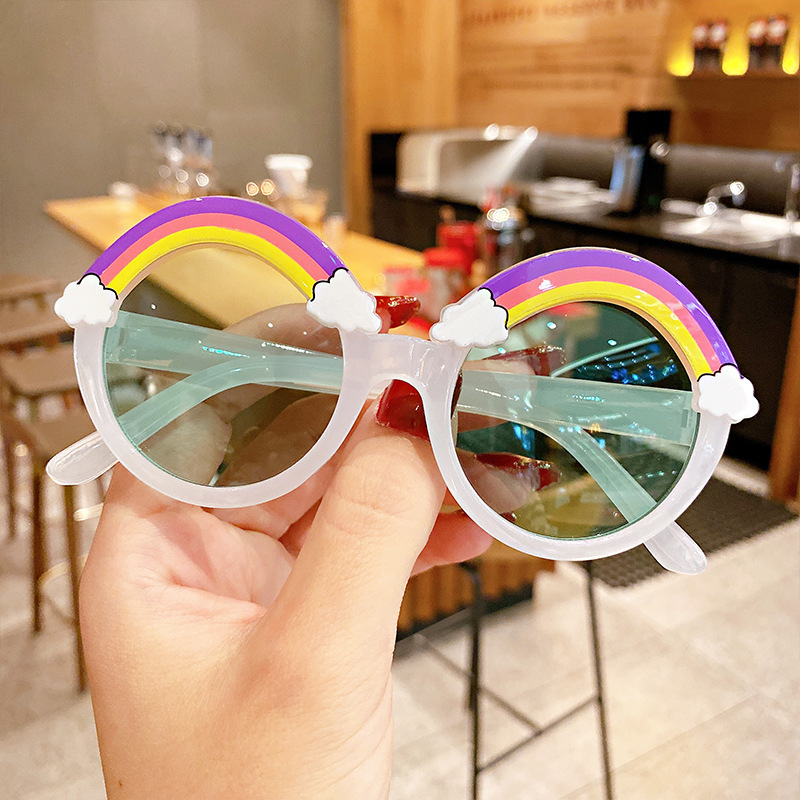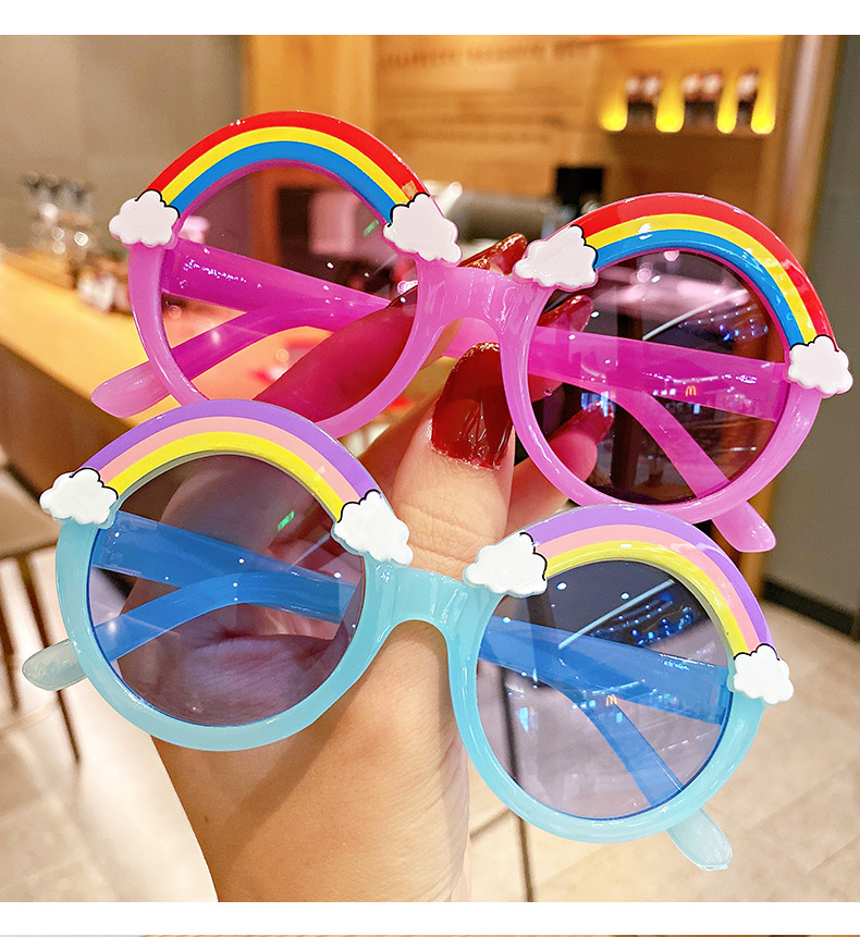 공장 핫 세일 새로운 어린이 선글라스 귀여운 아기 만화 레인보우 프레임 선글라스 소년과 소녀를위한 개인화 된 안경스토어 가기