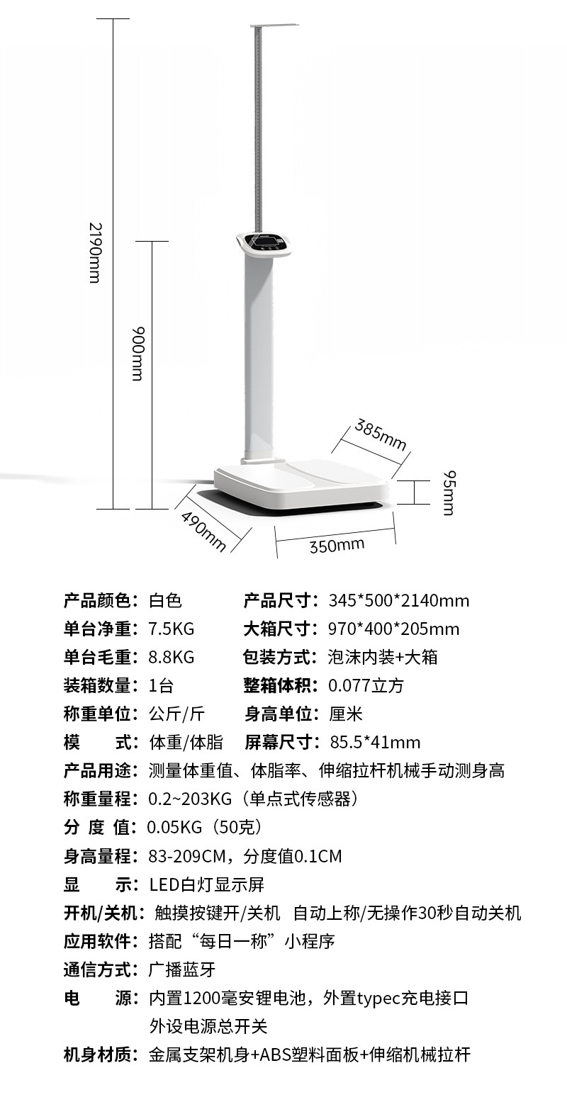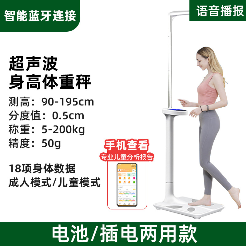 블루투스 신장 체중계 충전식 및 플러그인 겸용 체중 및 체지방 측정기 어린이 신장계 인체 측정기 스마트 홈용