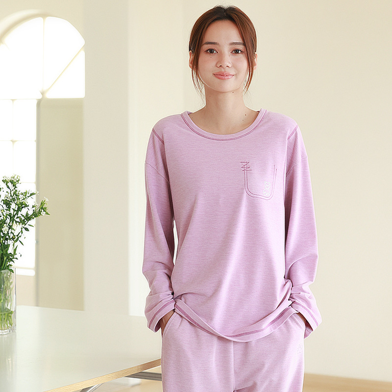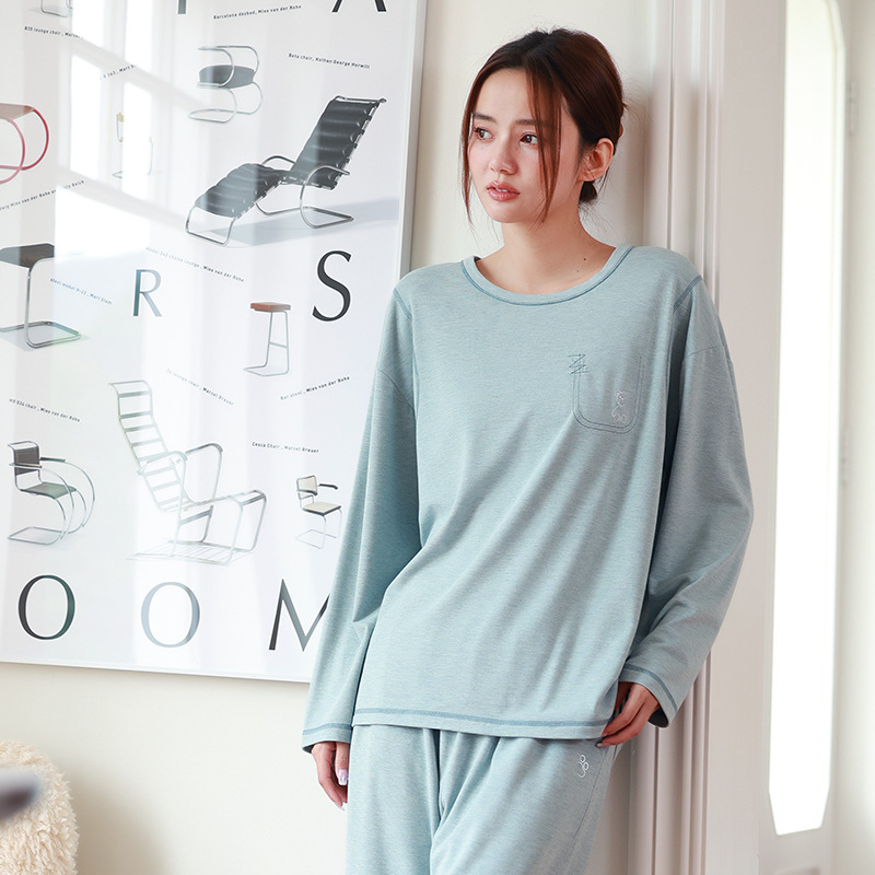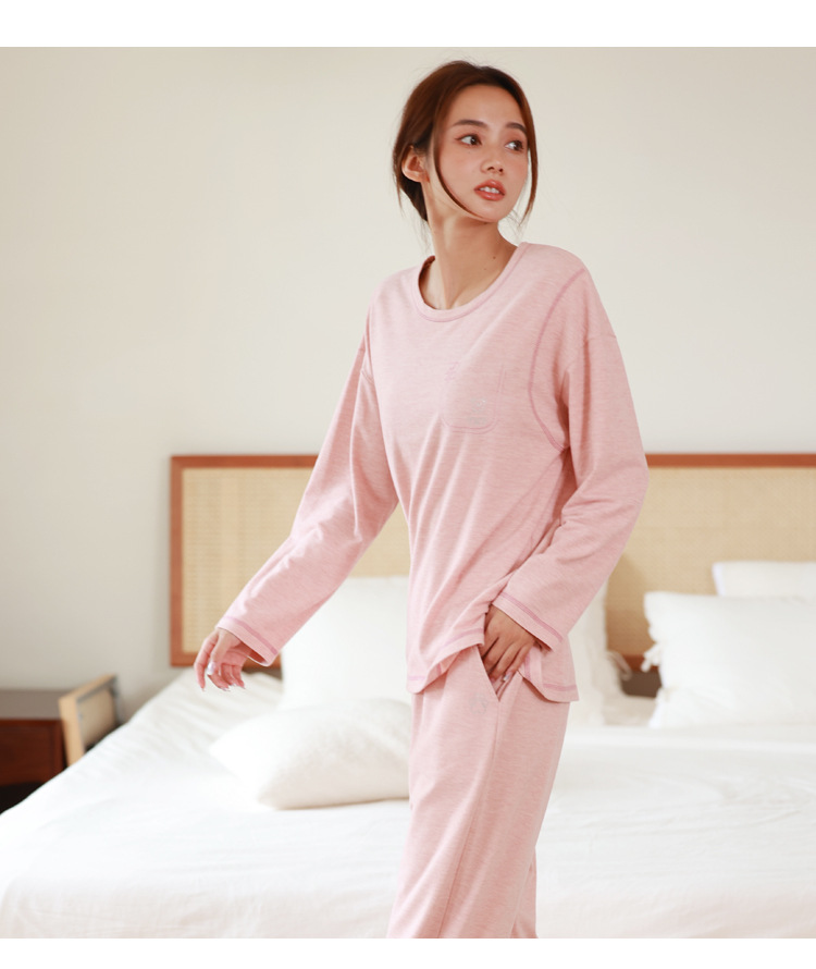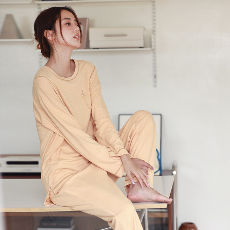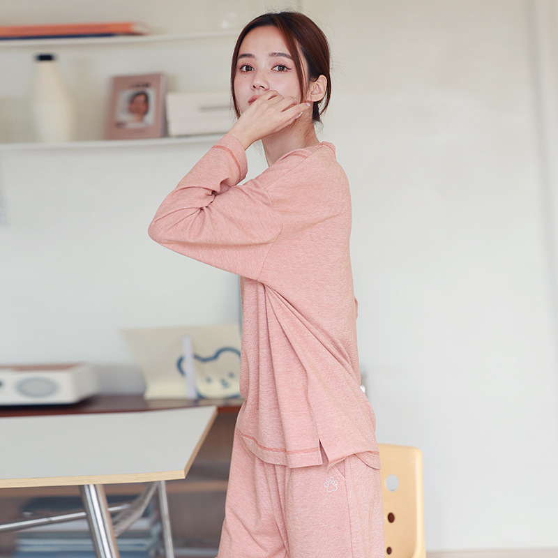 파자마 여성의 봄과 가을 긴 소매 집 밖에서 입을 수 있습니다 코튼 가을과 겨울 라운드 넥 세트 포 시즌 유니버설스토어 가기