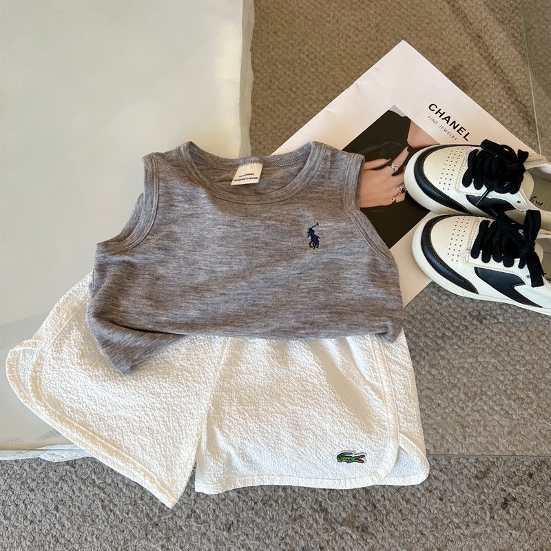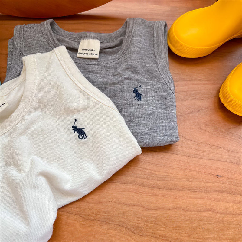 어린이 조끼 여름 소년 소녀 자수 순면 편안한 마스크 민소매 티셔츠 아기 트렌디 브랜드 단색 탑 얇은스토어 가기
