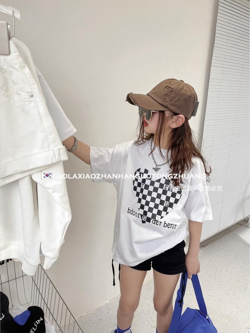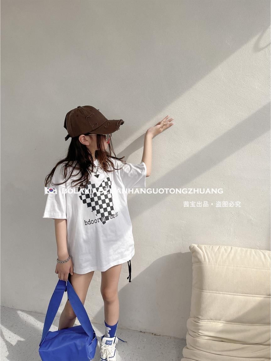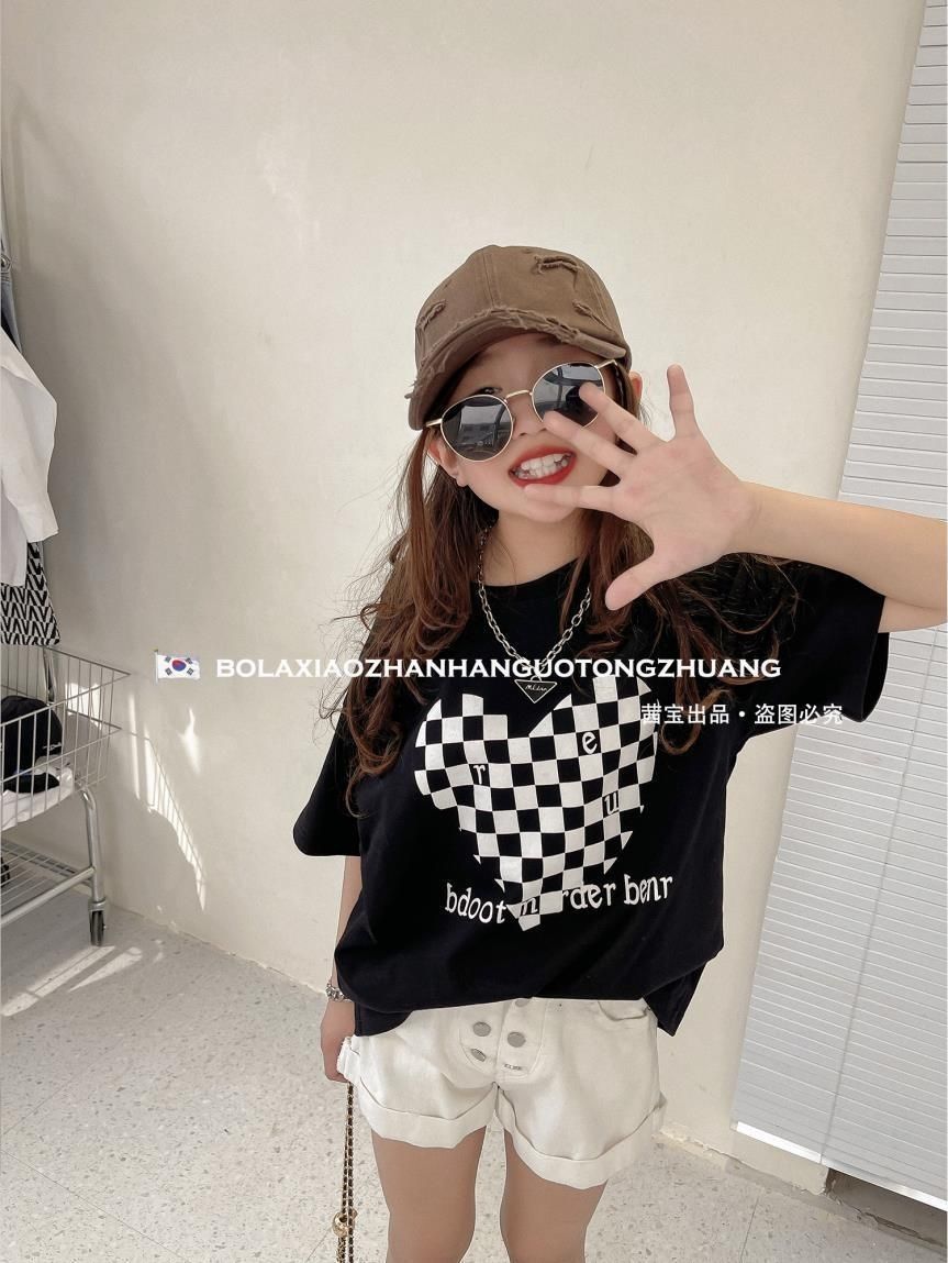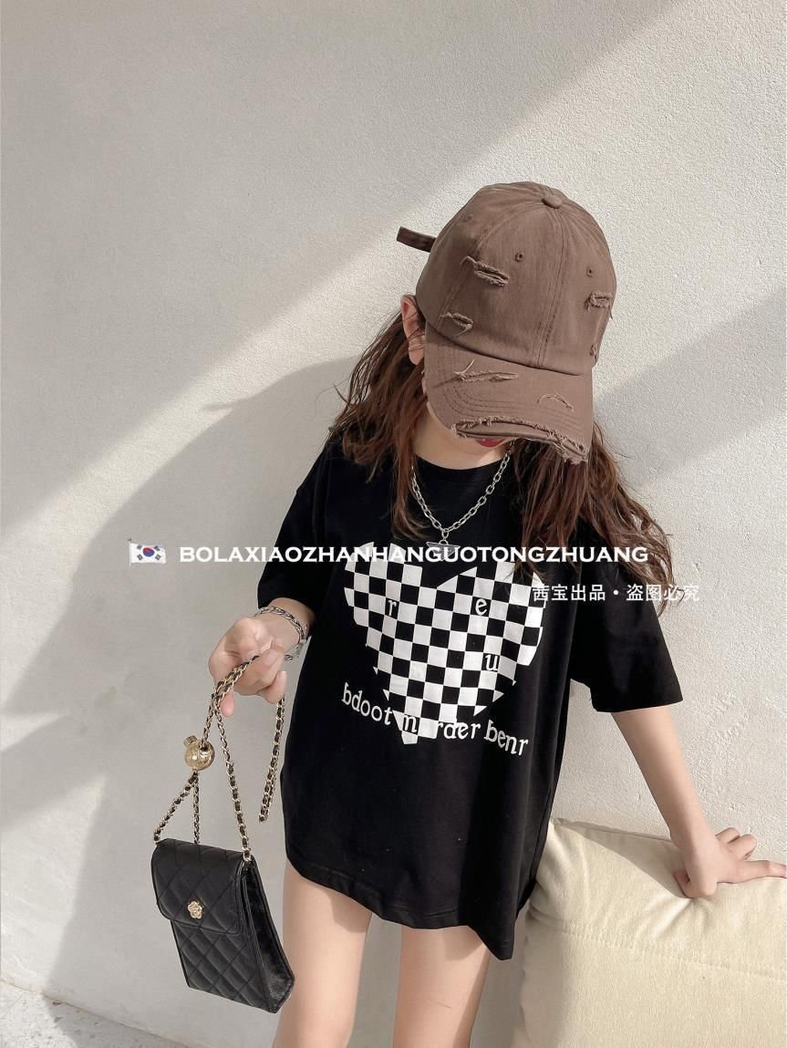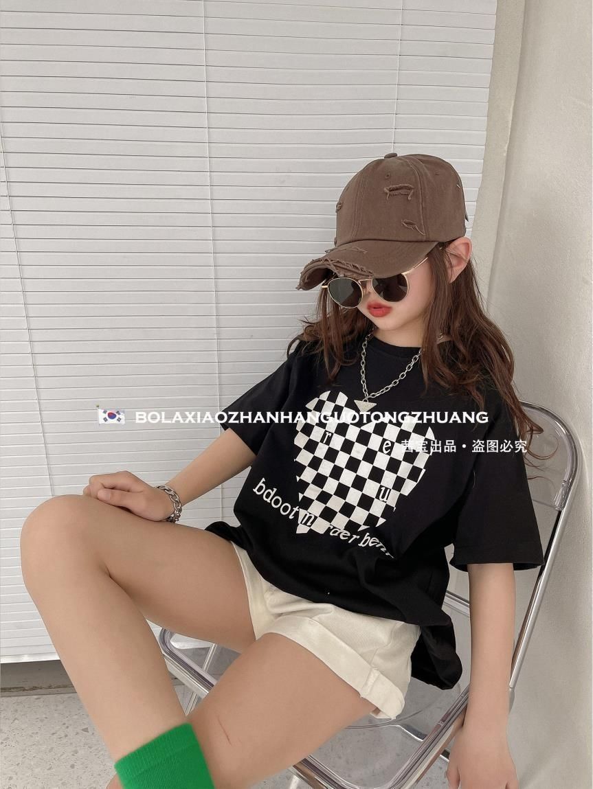 여아 여름 프린트 반팔 티셔츠 2023 새로운 스타일 세련된 트렌디 티셔츠 어린이 여름 루즈한 반팔 티셔츠스토어 가기