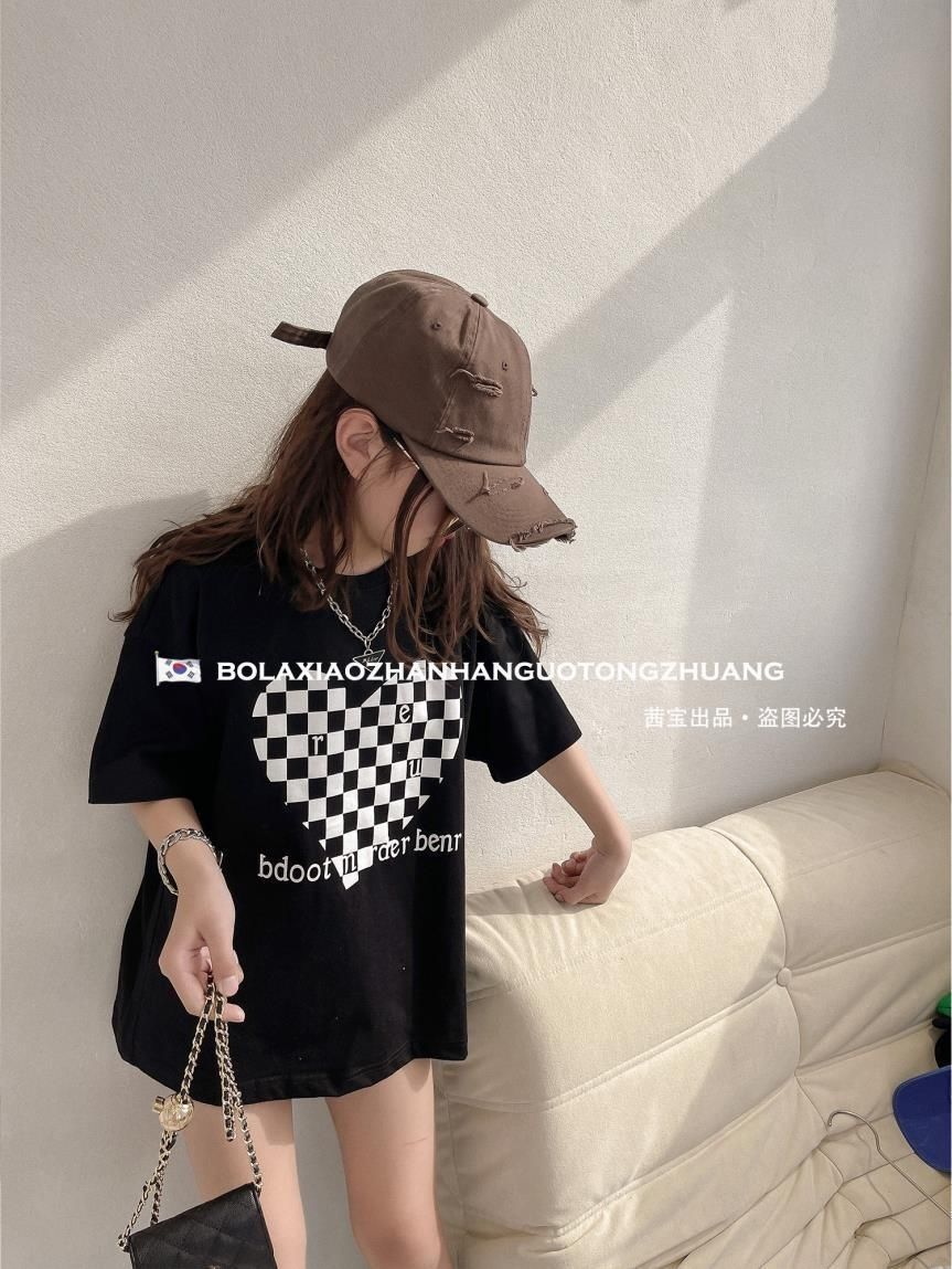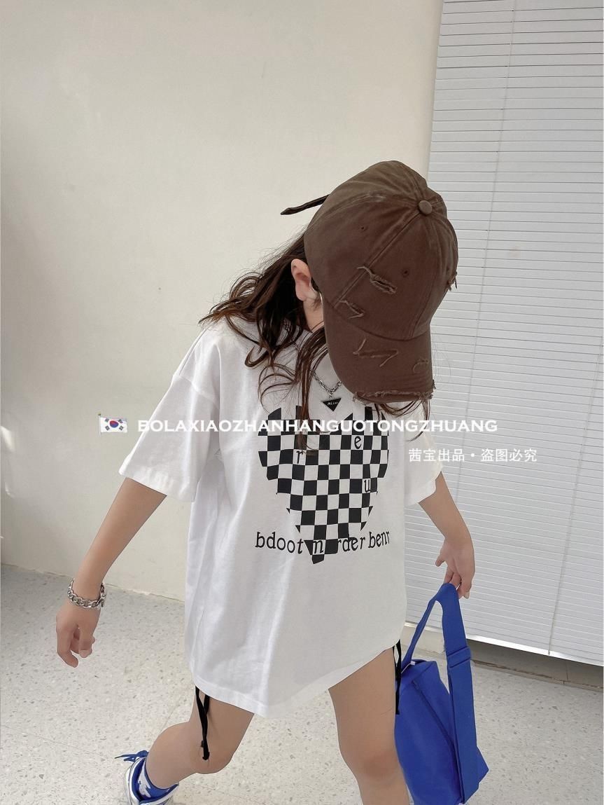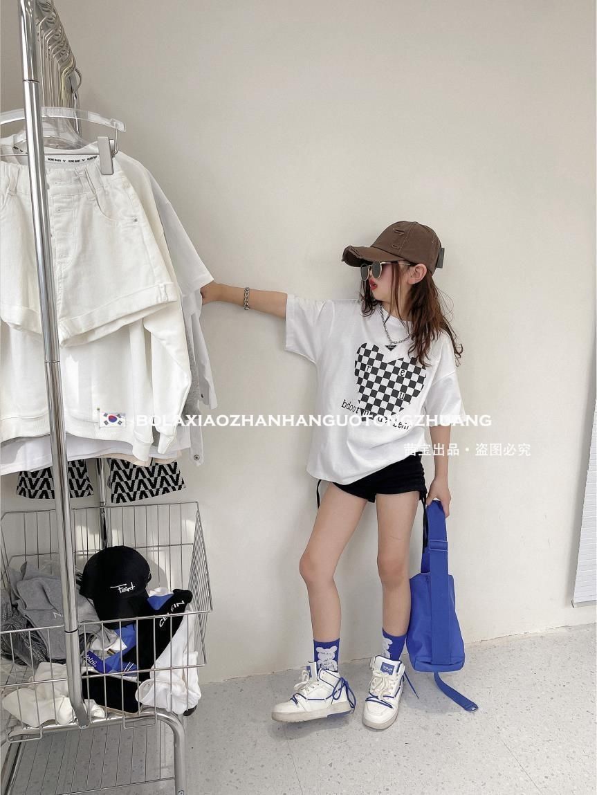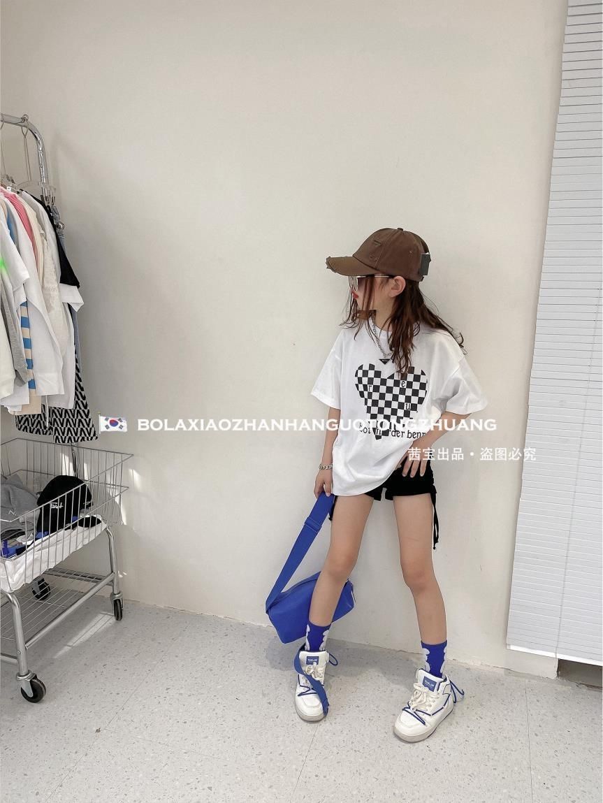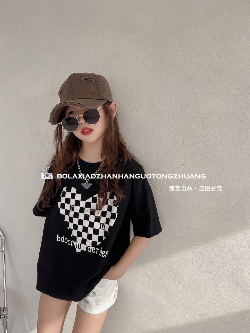 여아 여름 프린트 반팔 티셔츠 2023 새로운 스타일 세련된 트렌디 티셔츠 어린이 여름 루즈한 반팔 티셔츠스토어 가기