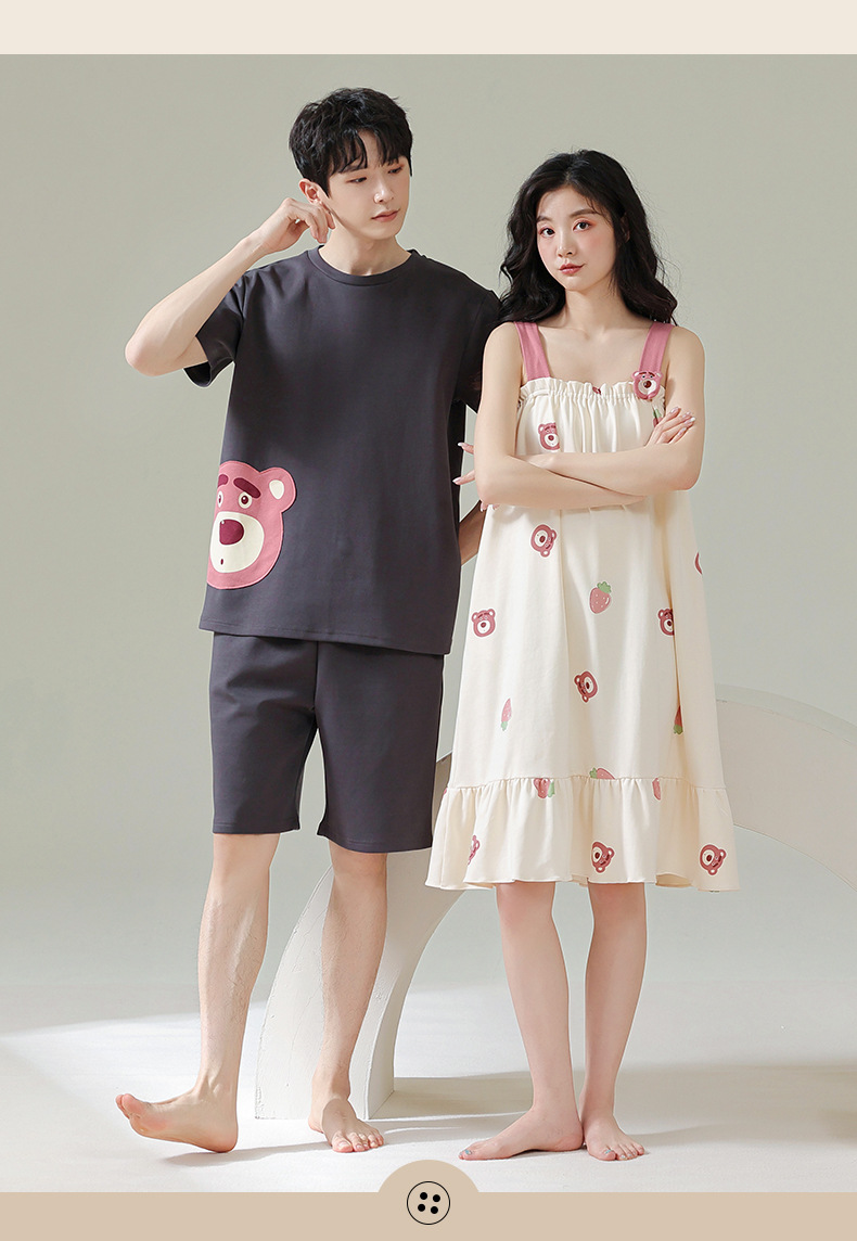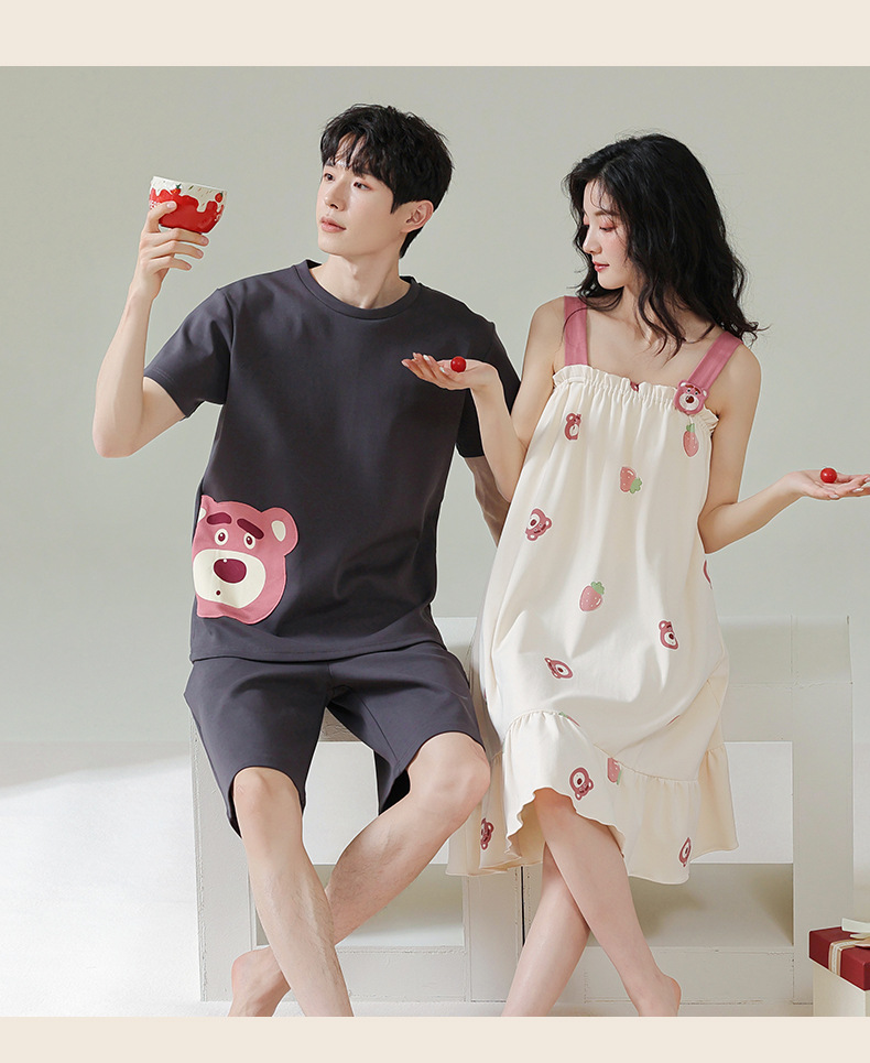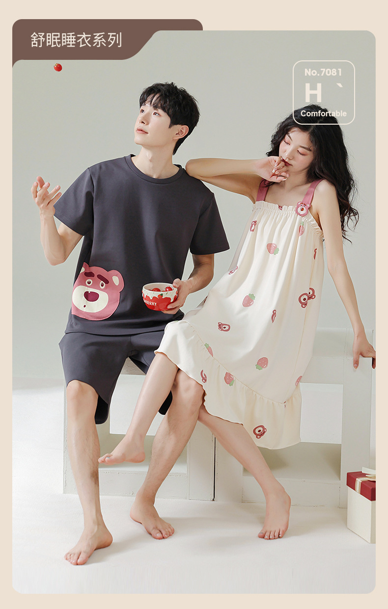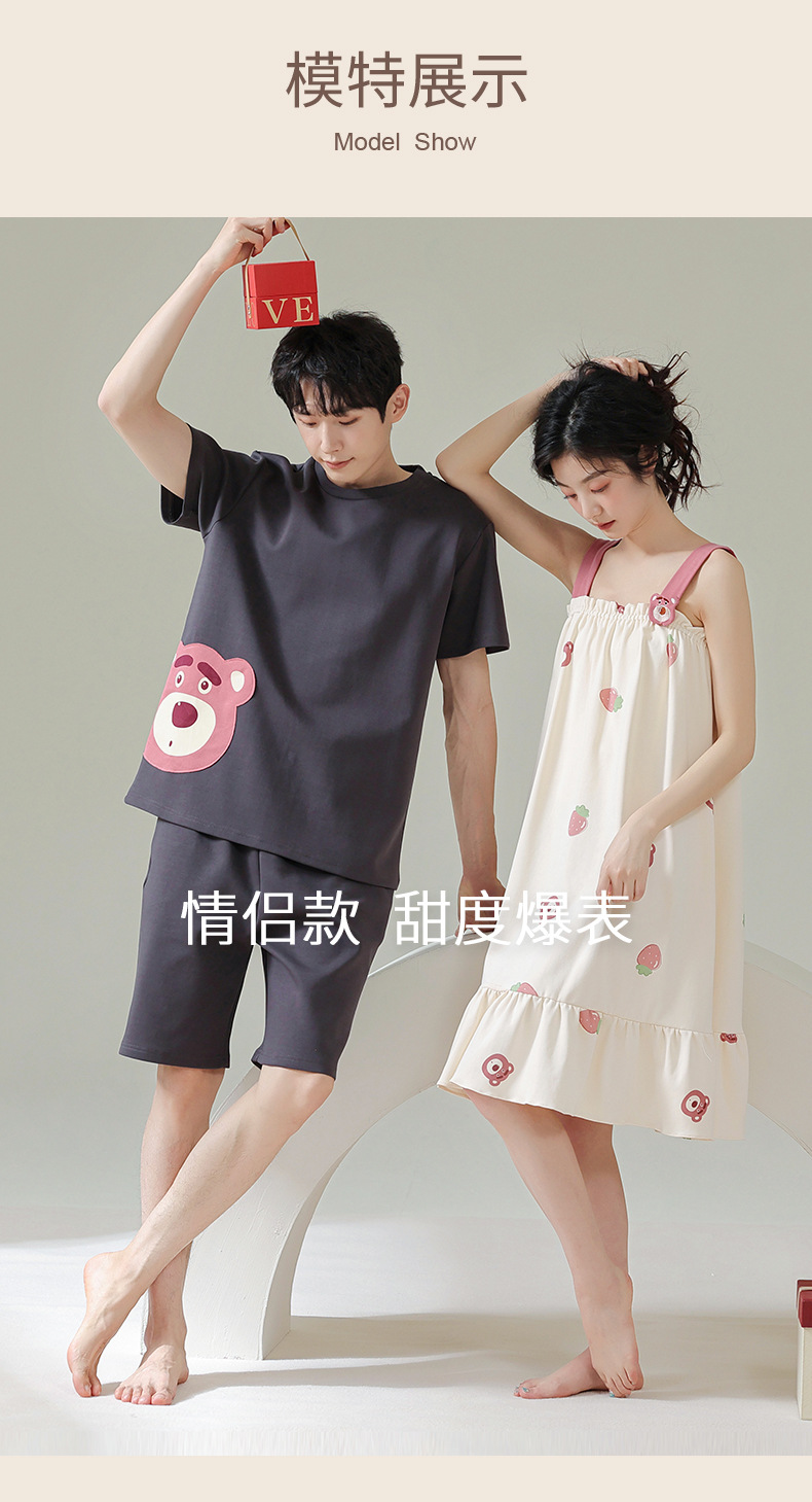 커플 잠옷 여름 순면 남자의 세트 여름 얇은 슬링 잠옷 여자의 조끼 귀여운 만화 가정 옷스토어 가기
