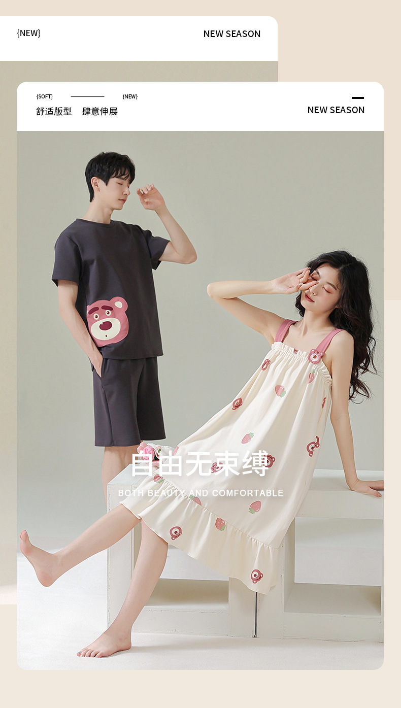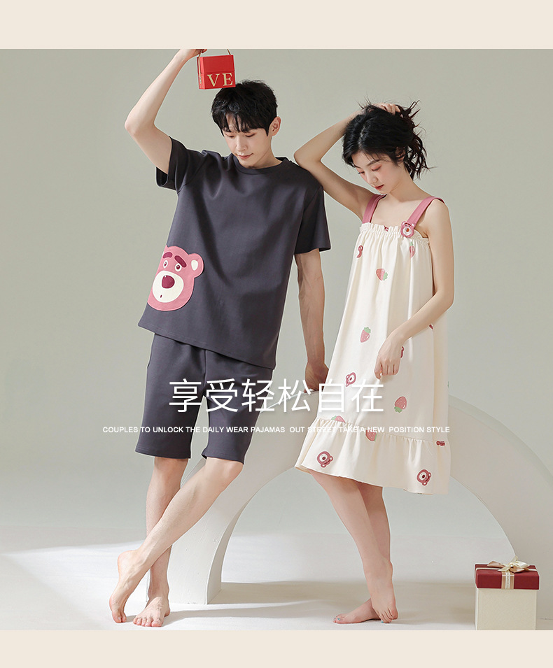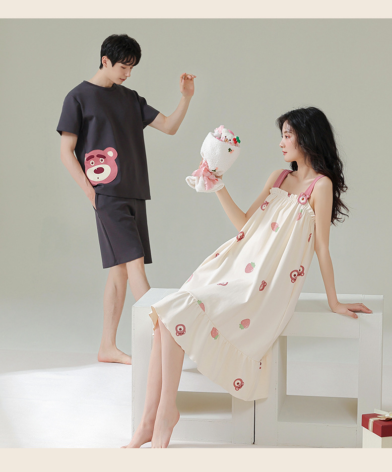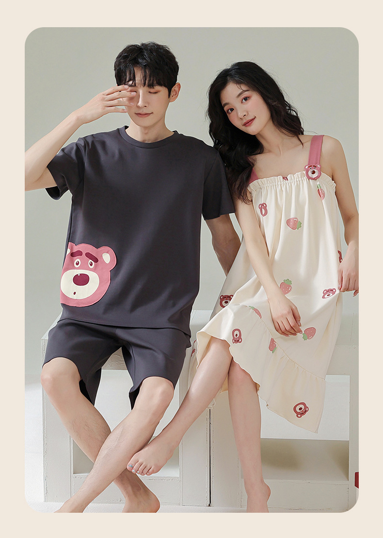 커플 잠옷 여름 순면 남자의 세트 여름 얇은 슬링 잠옷 여자의 조끼 귀여운 만화 가정 옷스토어 가기