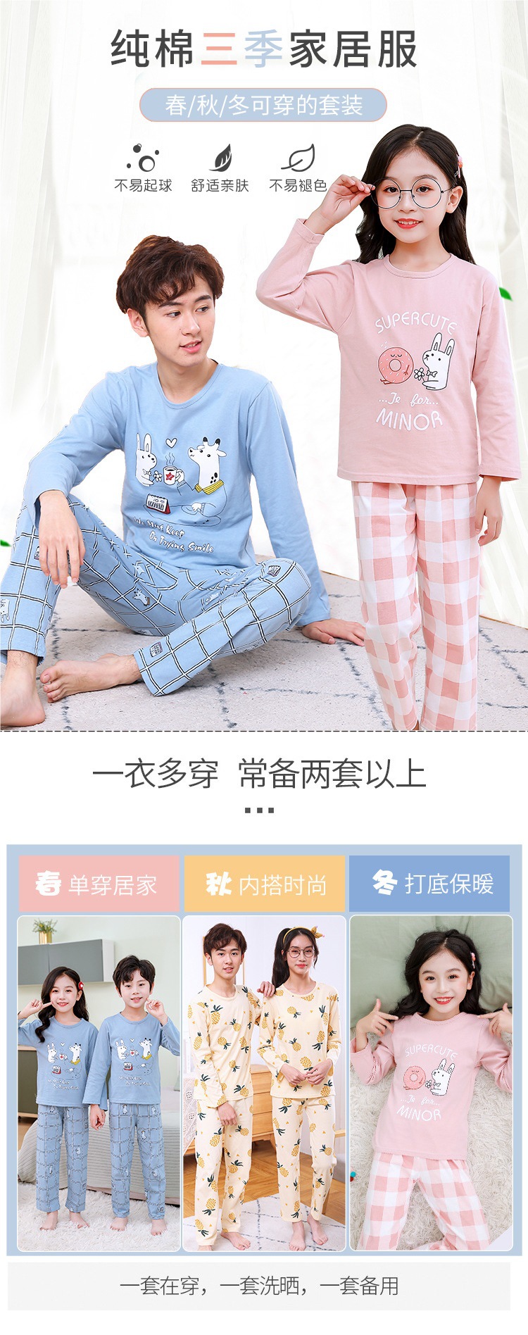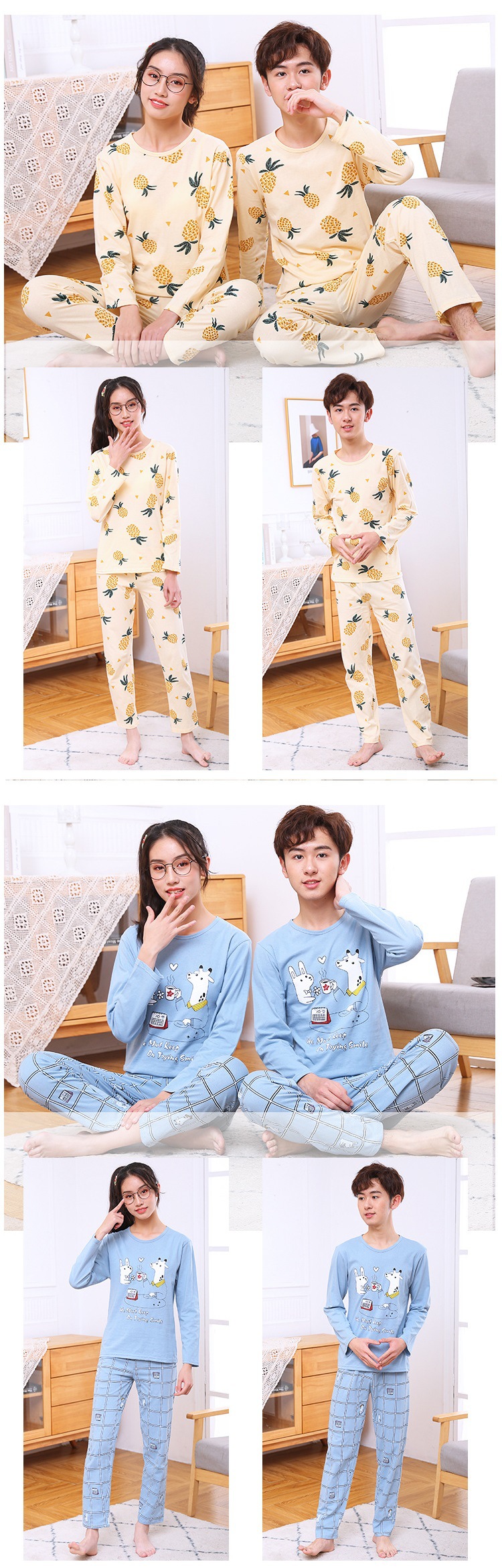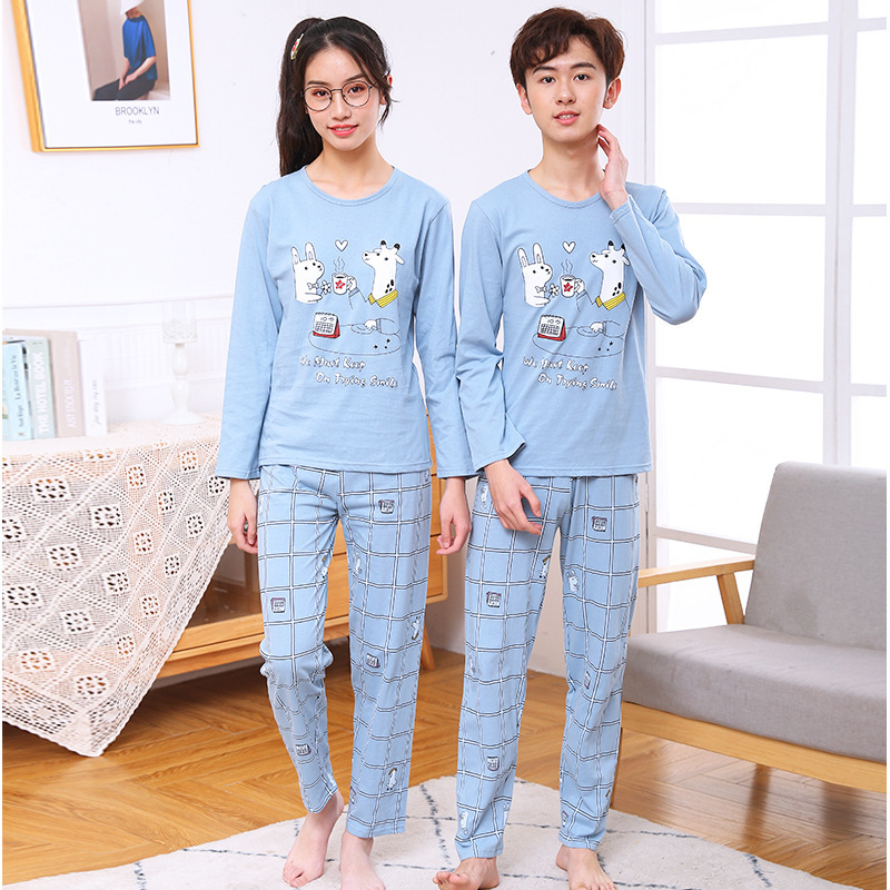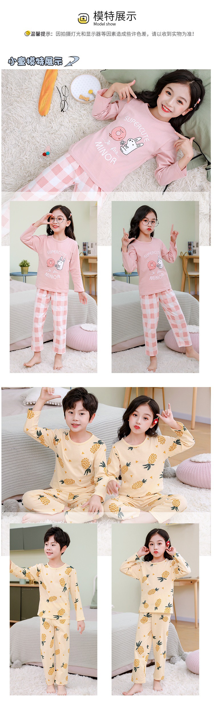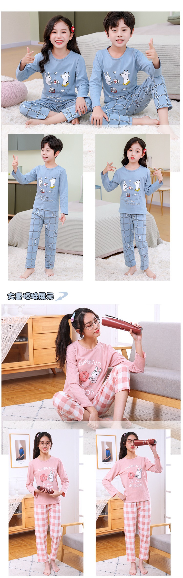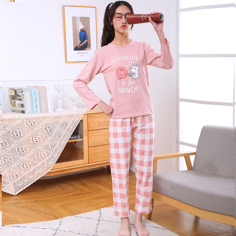 어린이 가정 옷 재고 새로운 어린이 면 속옷 세트 가을과 겨울 중학생 잠옷 투피스 공장 도매스토어 가기