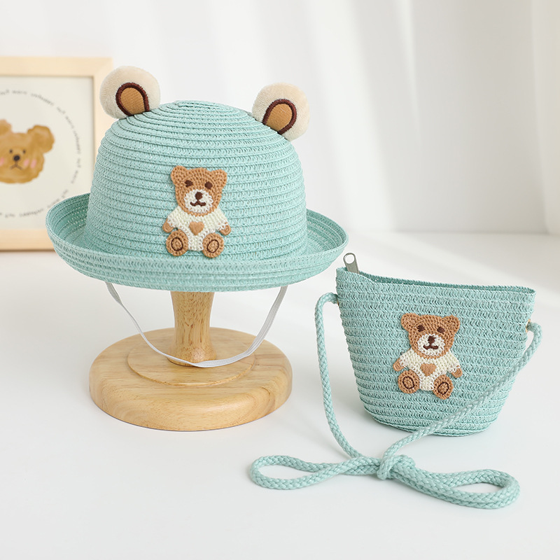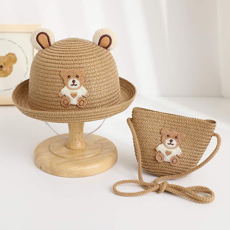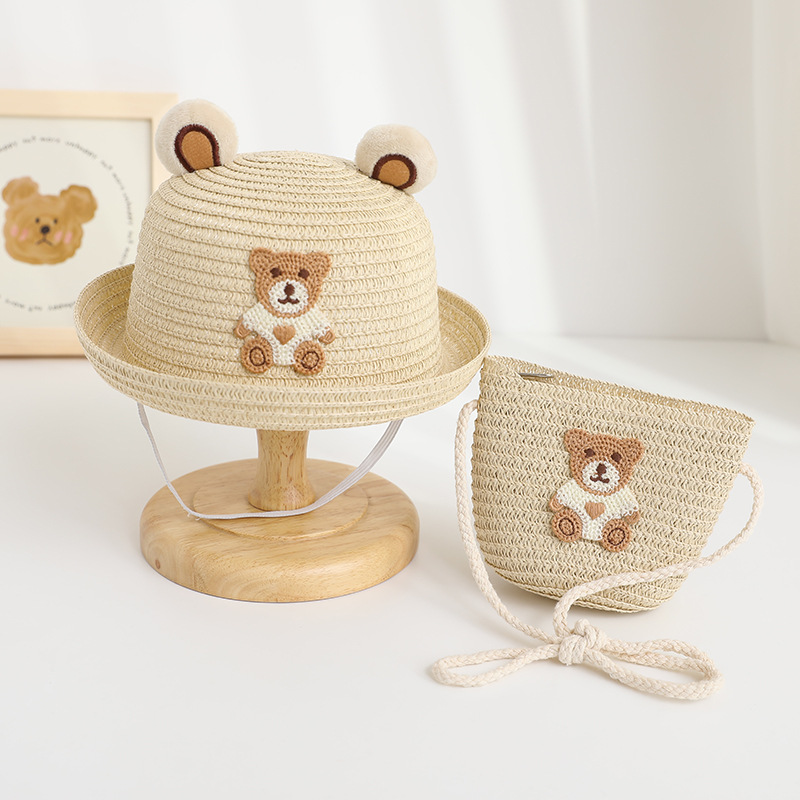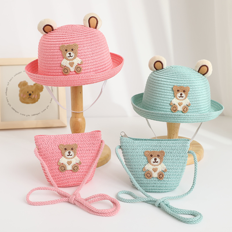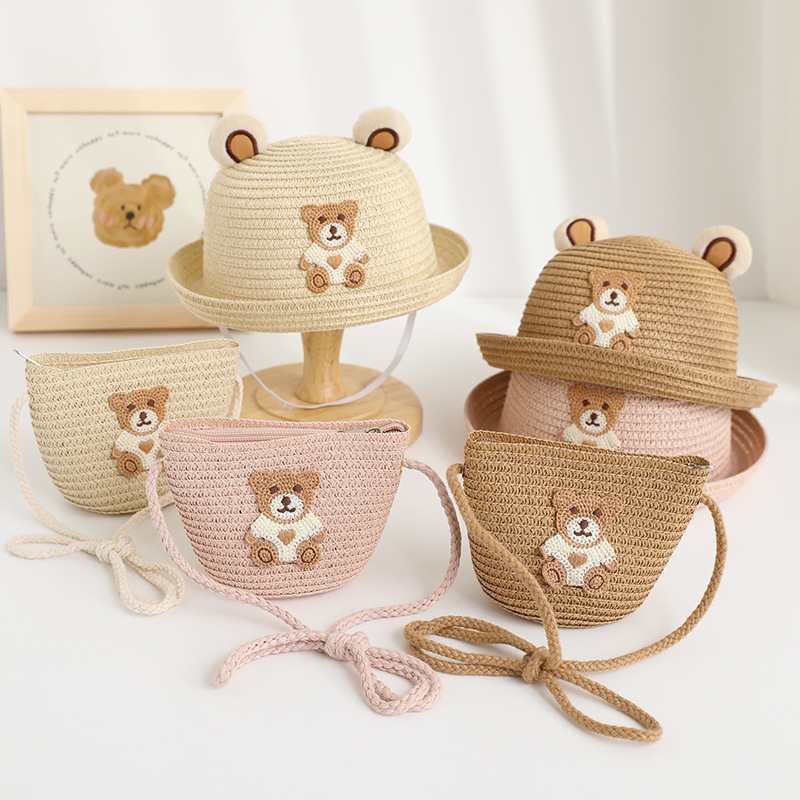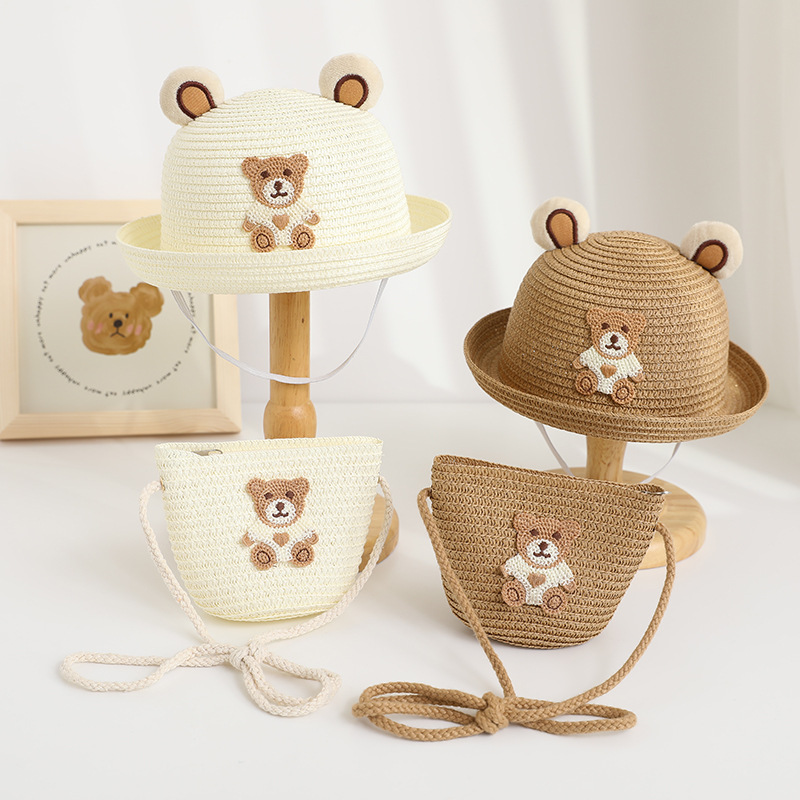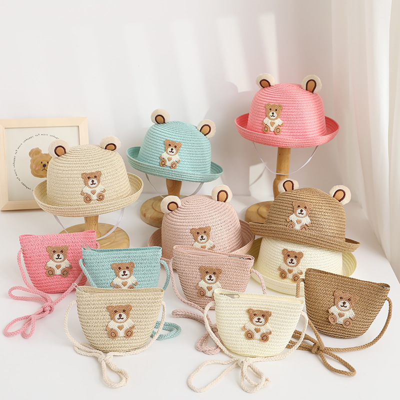 여름 만화 패턴 밀짚 모자 귀여운 가방 세트 여름 차양 자외선 차단제 모자 귀여운 여행 어린이 어부 모자스토어 가기
