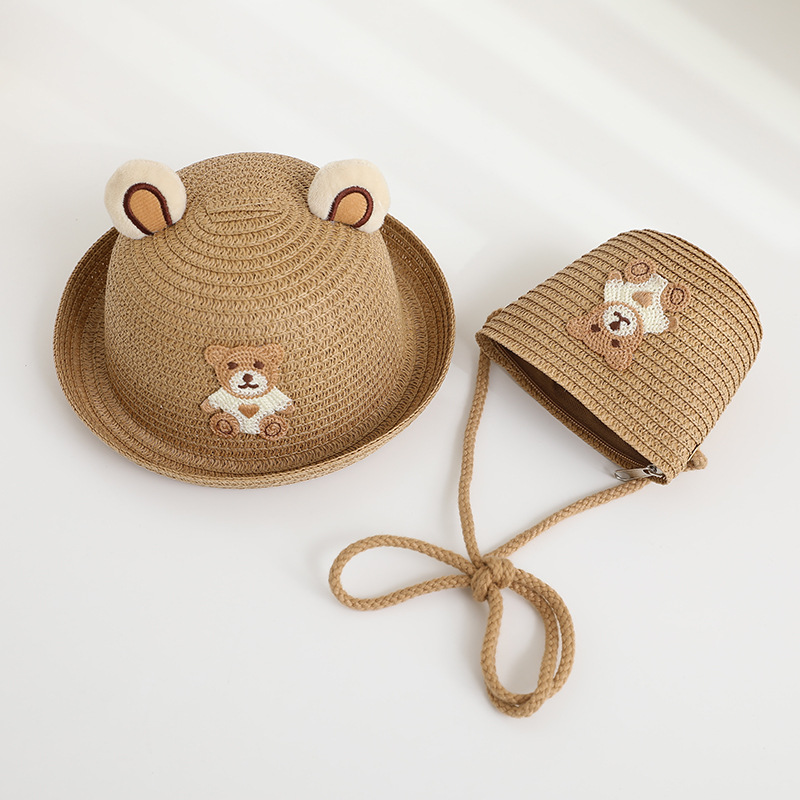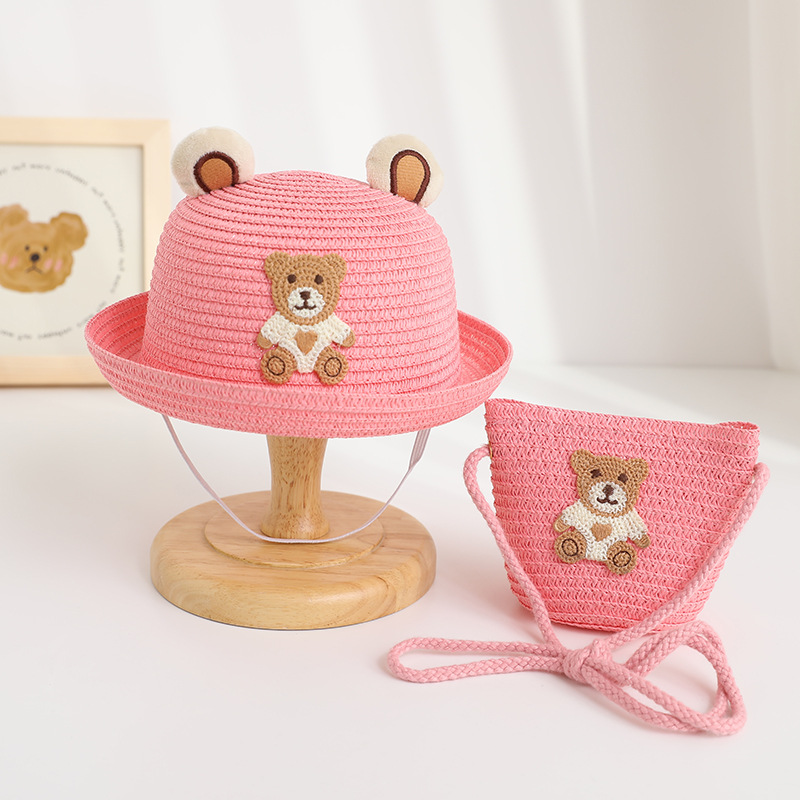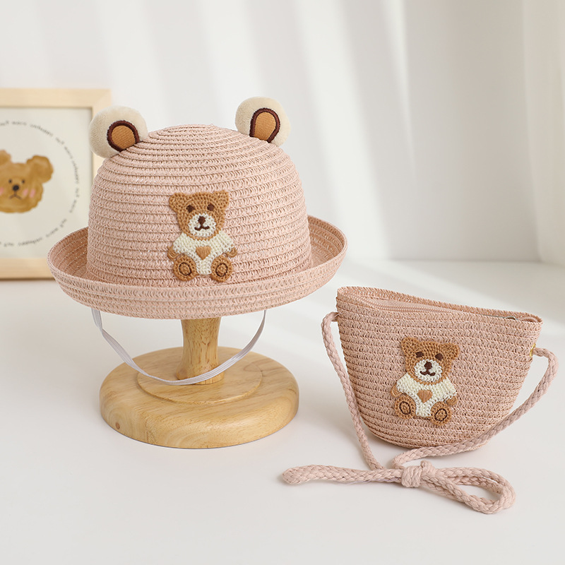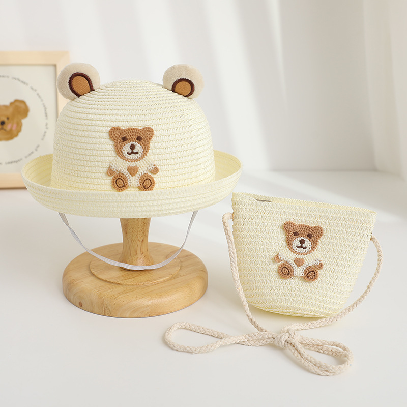 여름 만화 패턴 밀짚 모자 귀여운 가방 세트 여름 차양 자외선 차단제 모자 귀여운 여행 어린이 어부 모자