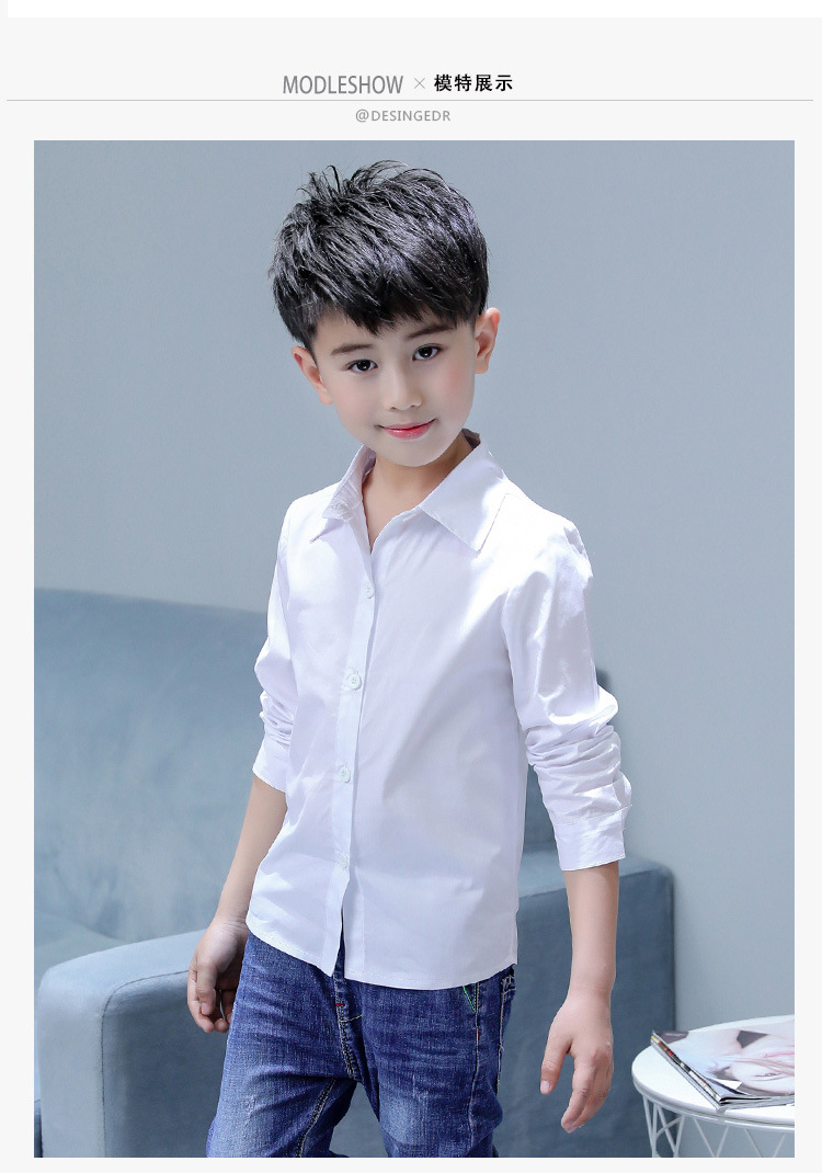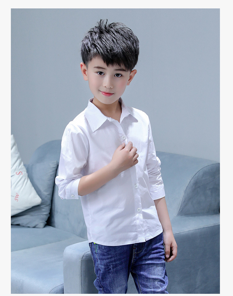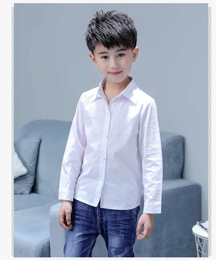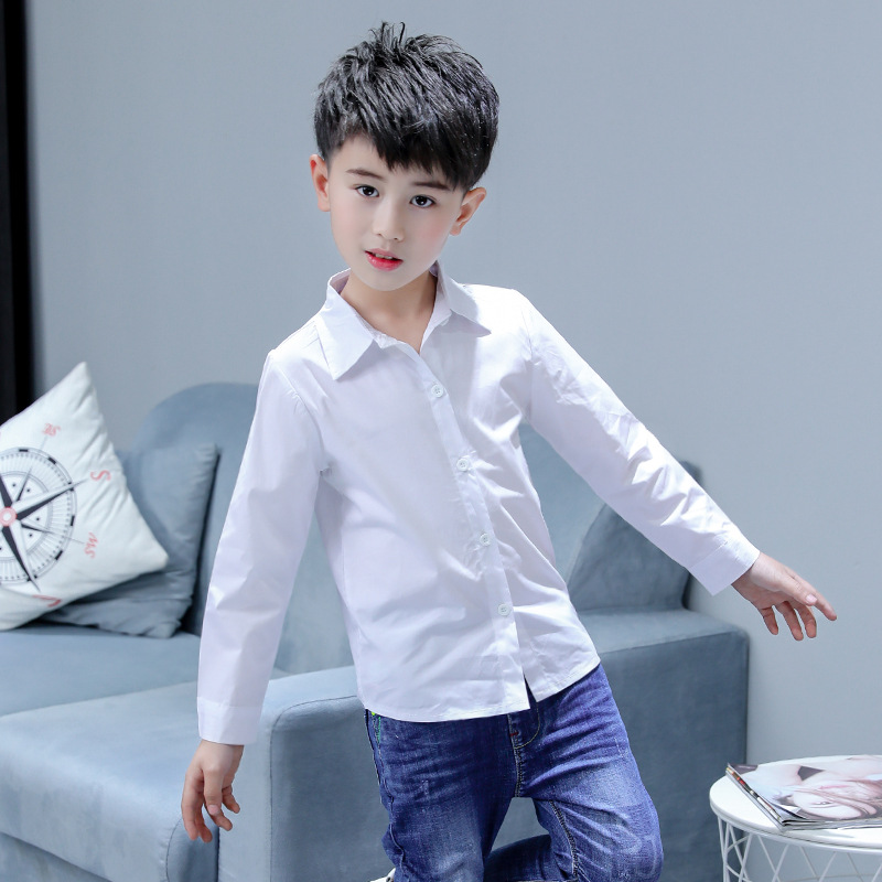남아 화이트 셔츠 순면 초등학교 교복 셔츠 어린이 긴 소매 개회식 의류 봄과 가을 캐주얼 셔츠스토어 가기