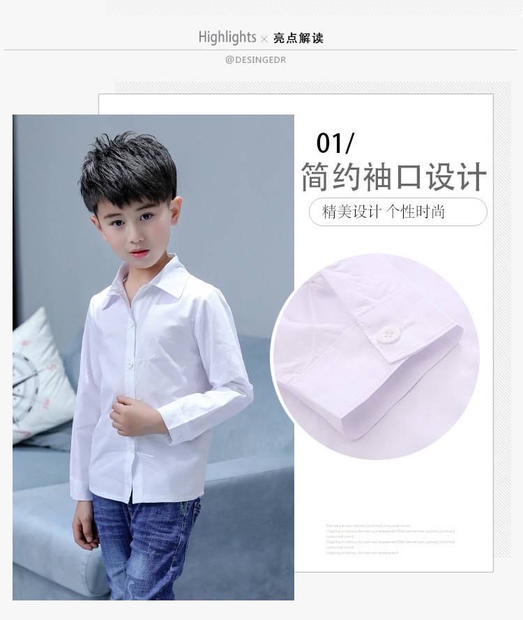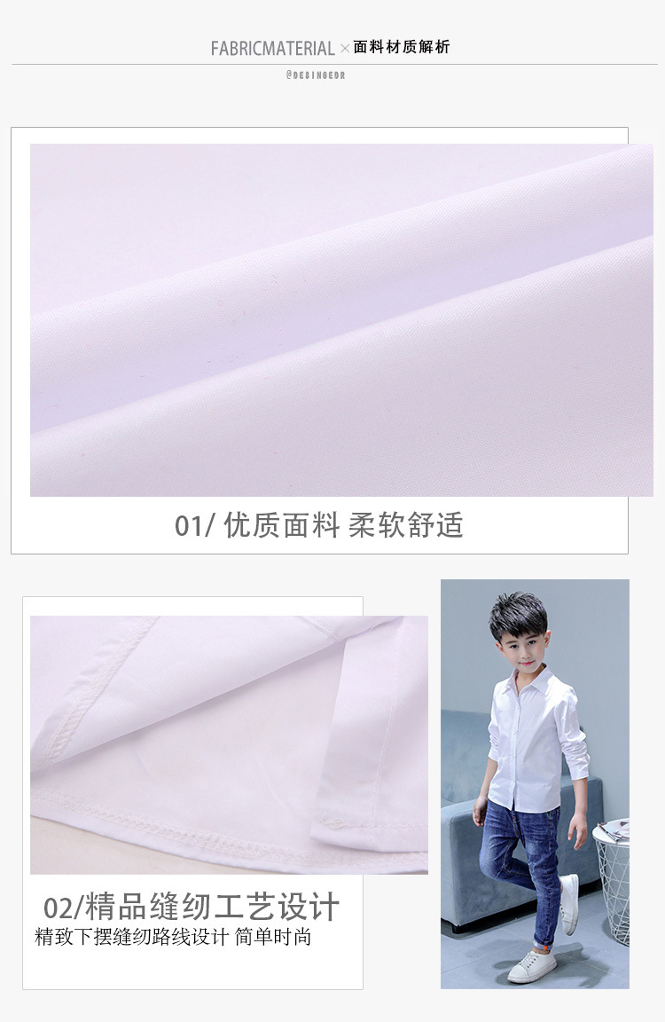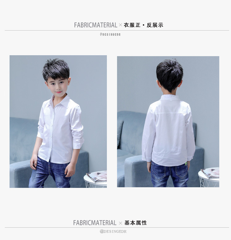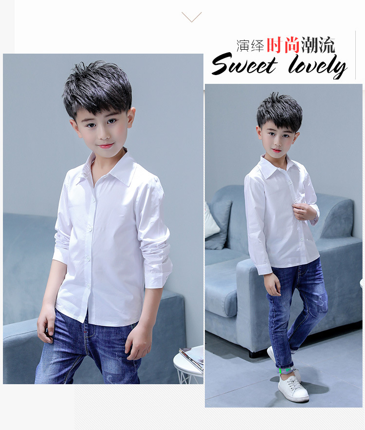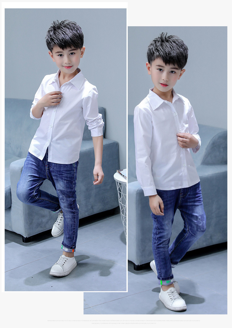 남아 화이트 셔츠 순면 초등학교 교복 셔츠 어린이 긴 소매 개회식 의류 봄과 가을 캐주얼 셔츠스토어 가기