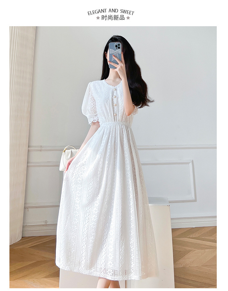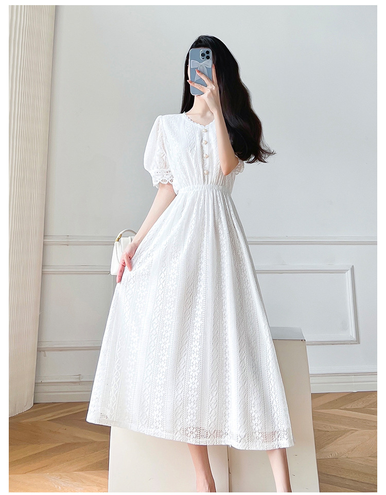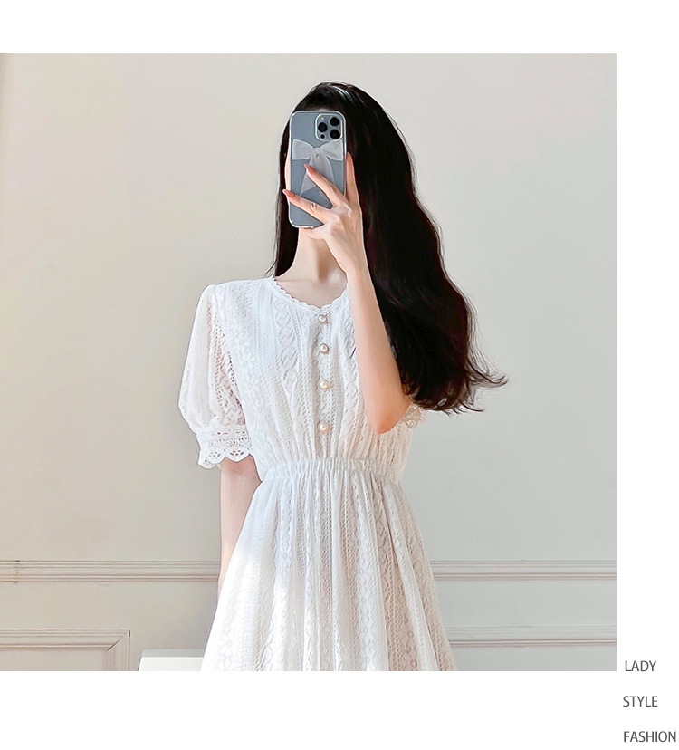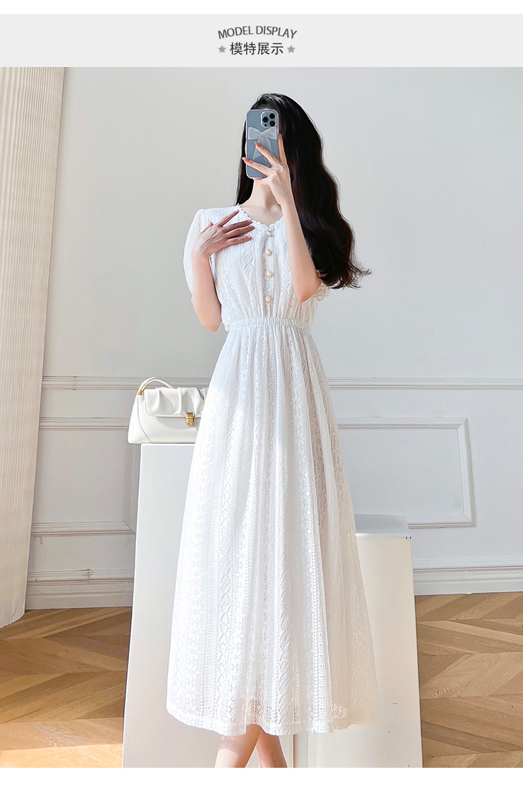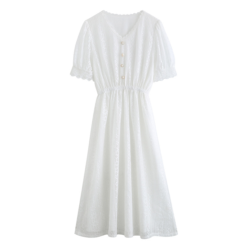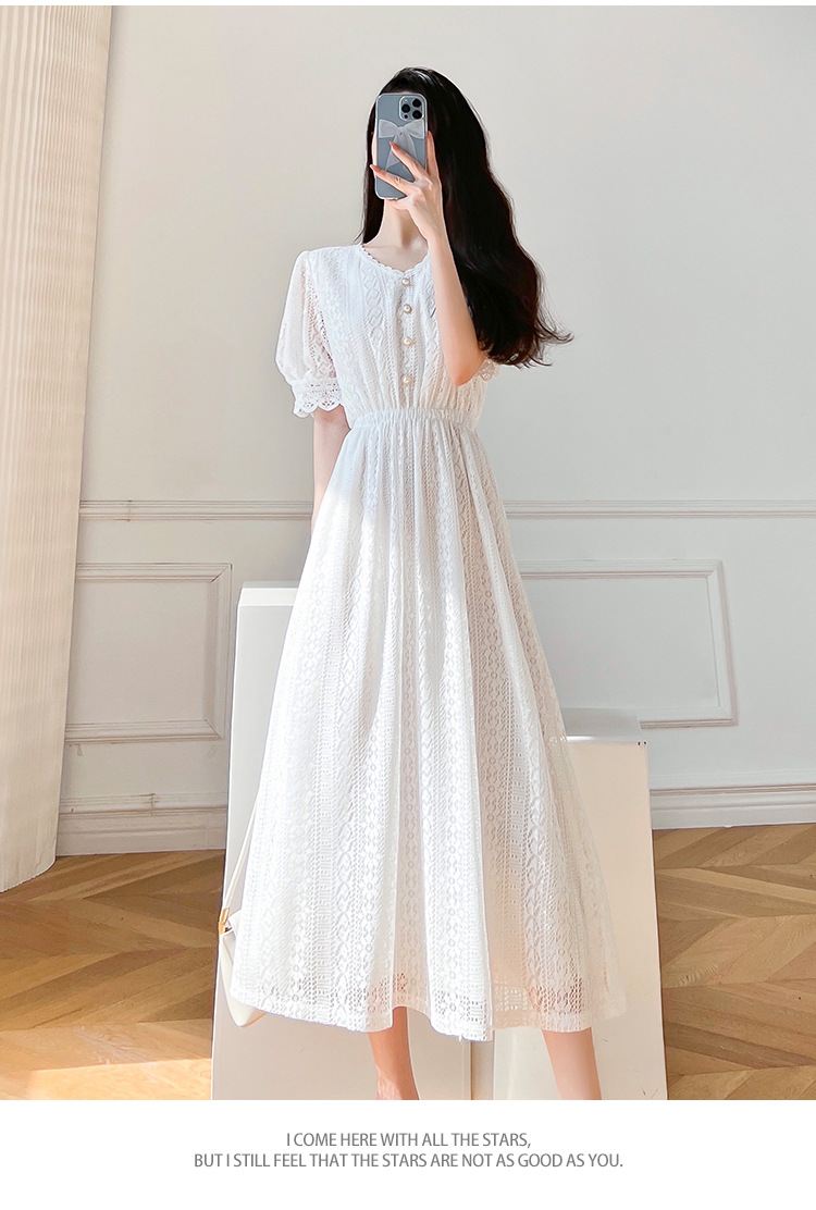 화이트 레이스 원피스 여자의 여름 요정 슈퍼 요정 모리 스타일 화이트 원피스 긴 프랑스 허리 우아한 긴 원피스 여름스토어 가기