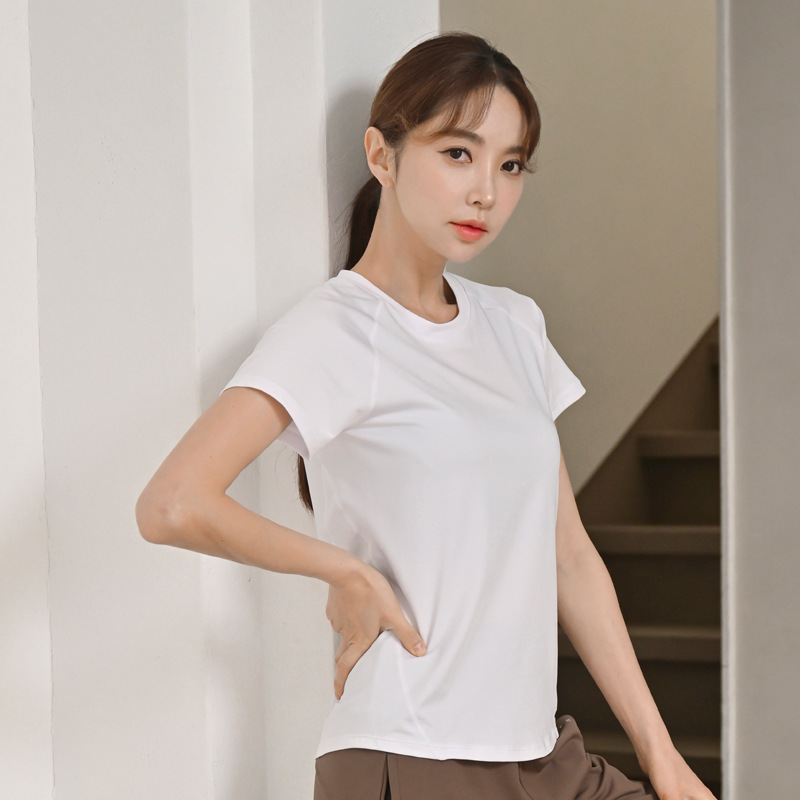 요가 의류 스포츠 여성의 싱글 반팔 느슨한 전문 실행 패션 새로운 기질 고급 피트니스 의류 세트 도매스토어 가기