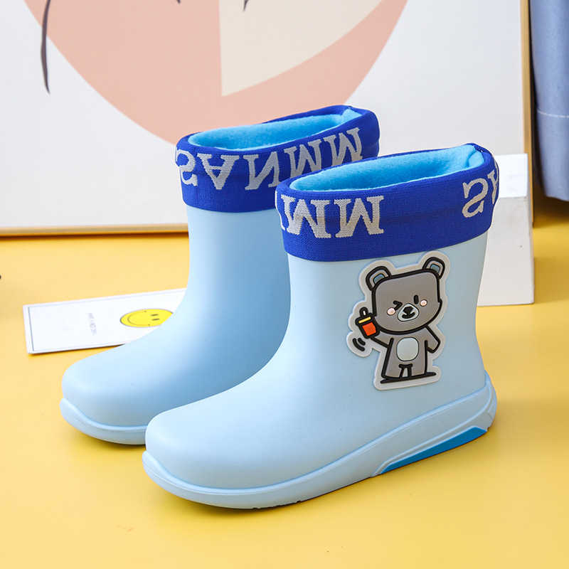 유행 만화 면화 따뜻한 어린이 레인 부츠 플랫 미끄럼 방지 스크래치 방지 발 어린이 레인 부츠 남성용 및 여성용 워터 슈즈스토어 가기