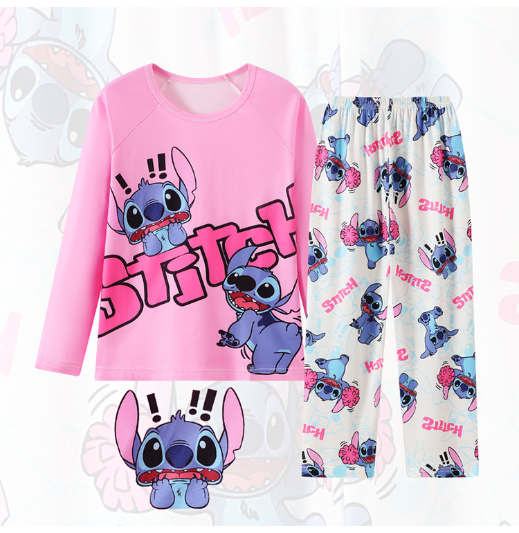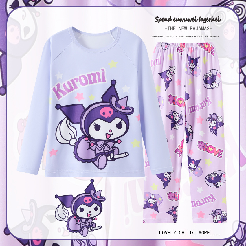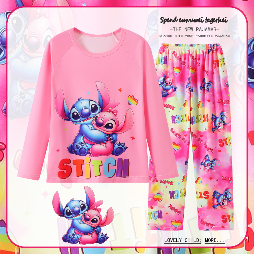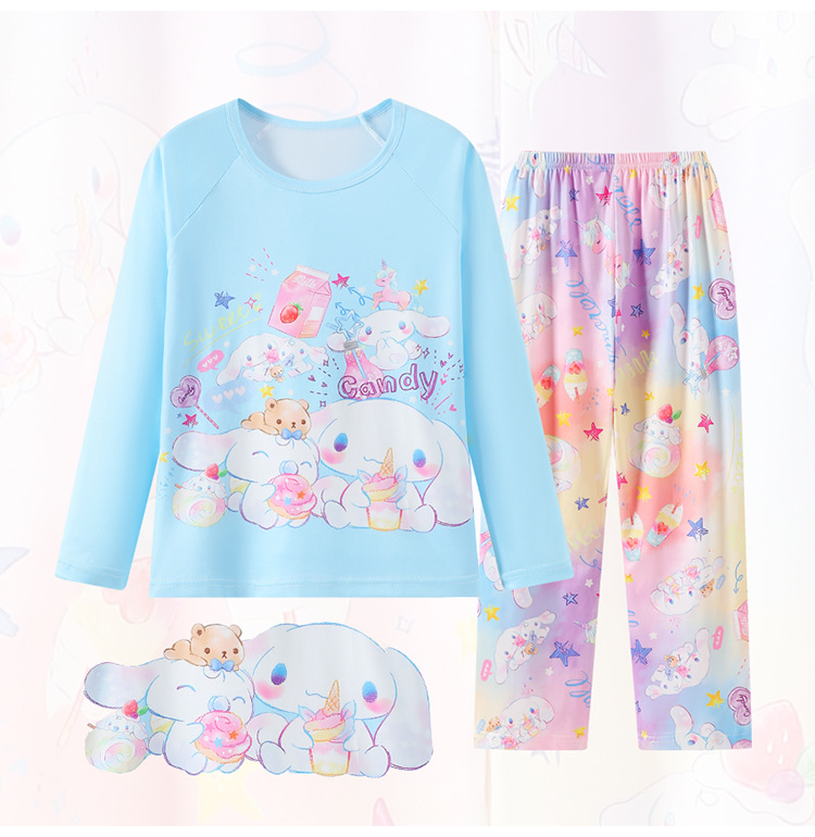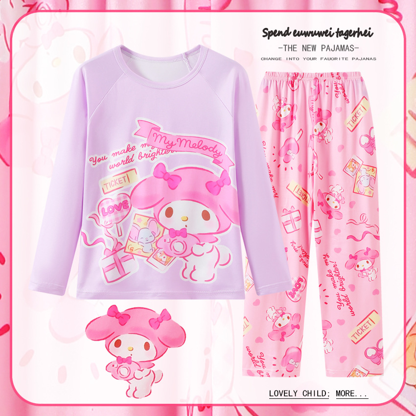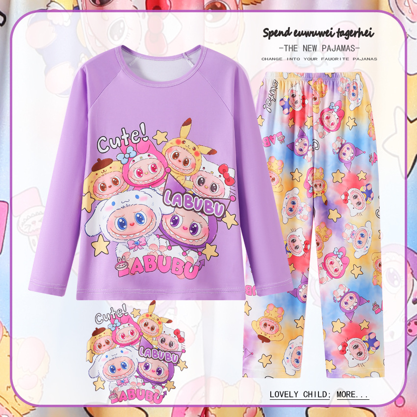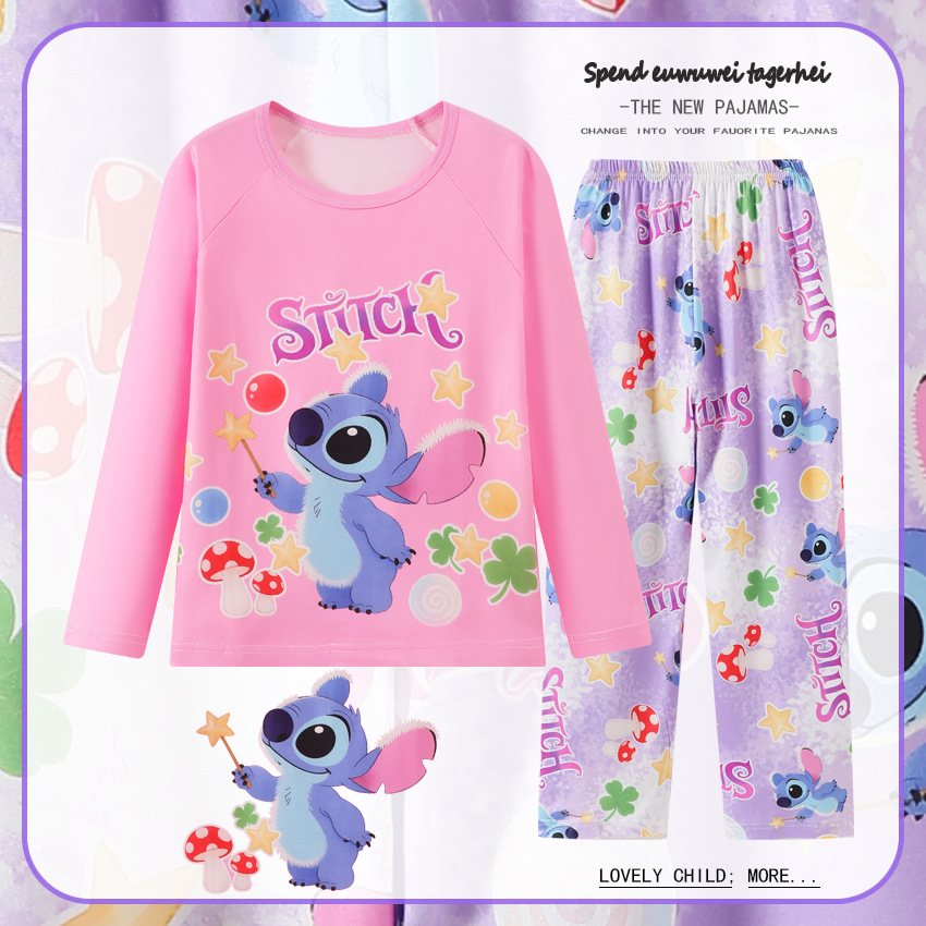 2025년 신상 여아 잠옷 봄 가을 긴팔 귀여운 파티 만화 캐릭터 중대형 아동 홈웨어 세트(외출복)스토어 가기