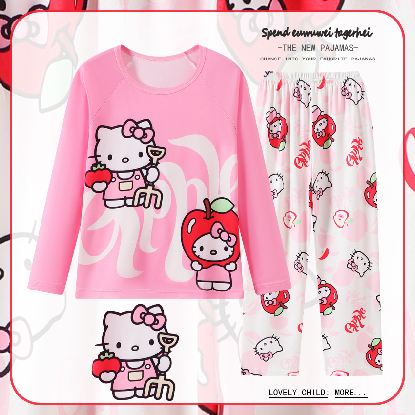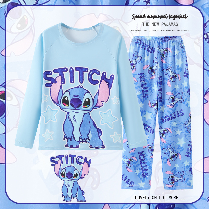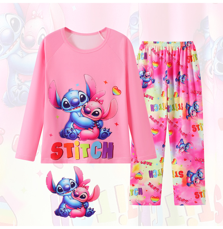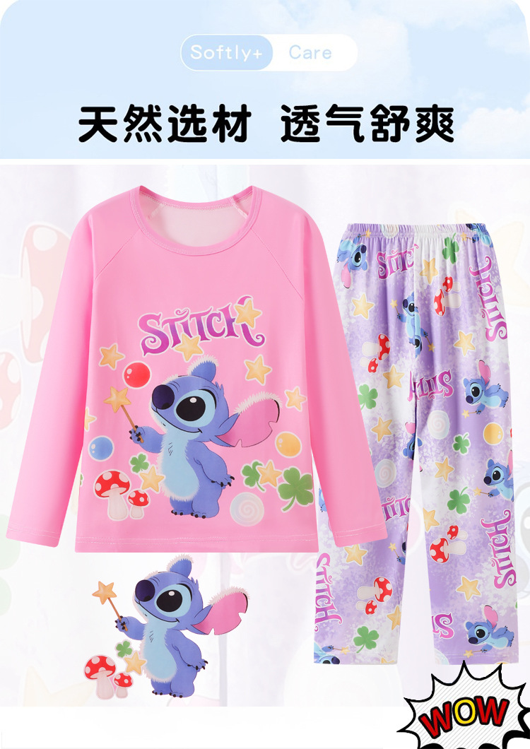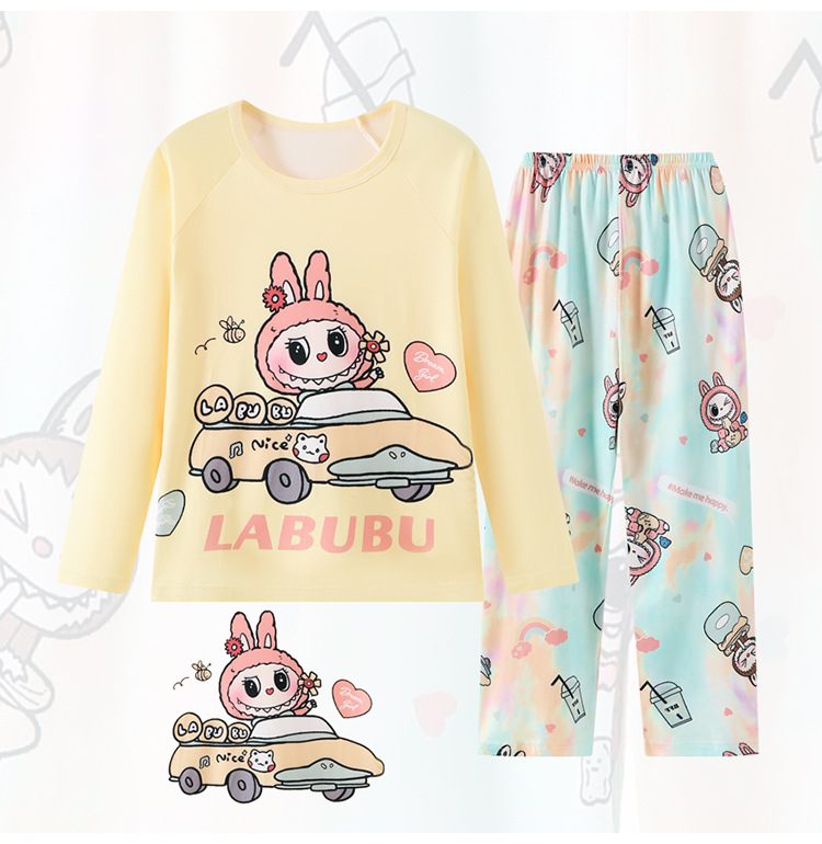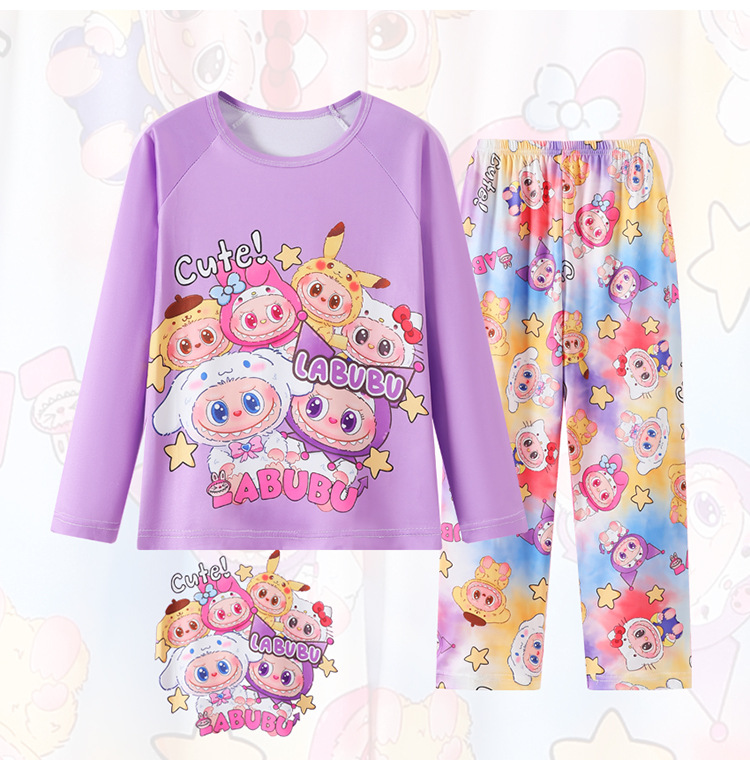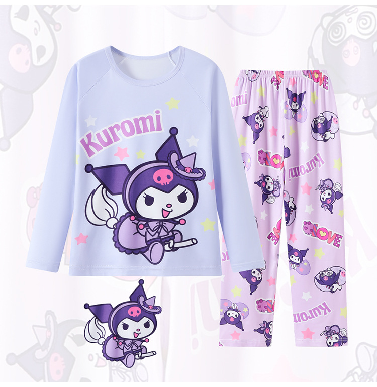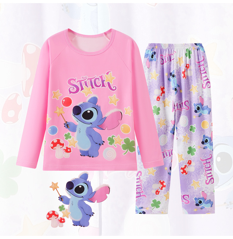 2025년 신상 여아 잠옷 봄 가을 긴팔 귀여운 파티 만화 캐릭터 중대형 아동 홈웨어 세트(외출복)스토어 가기