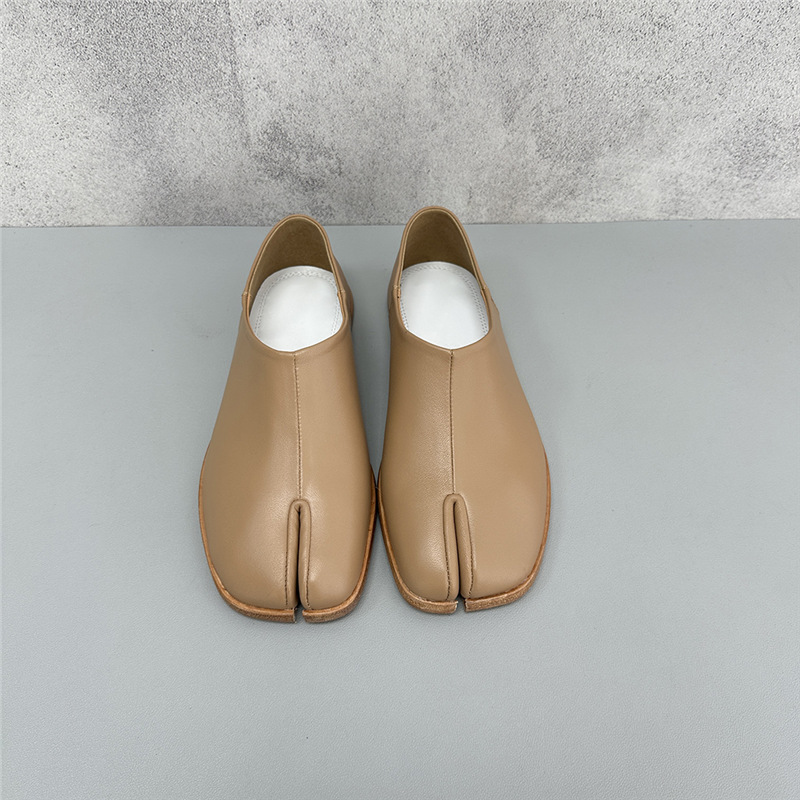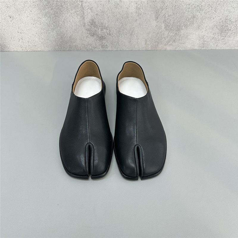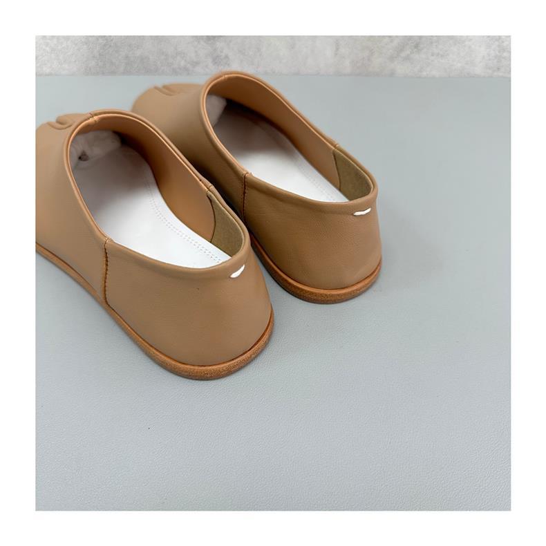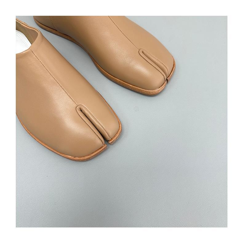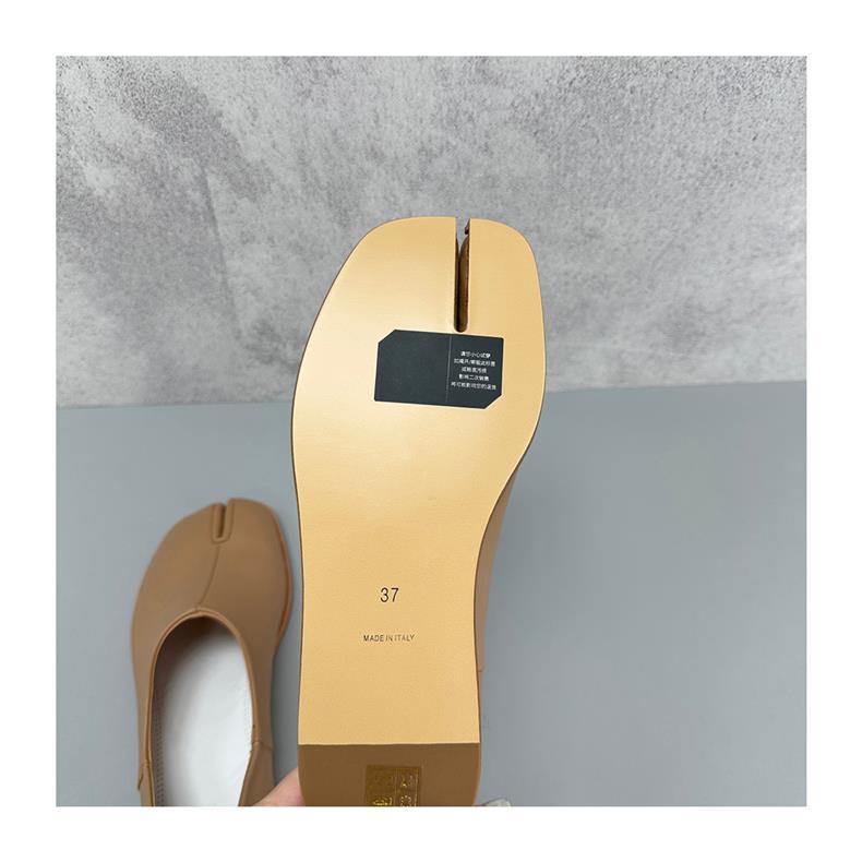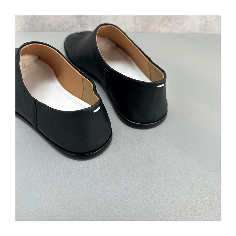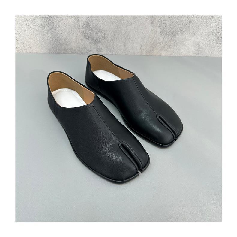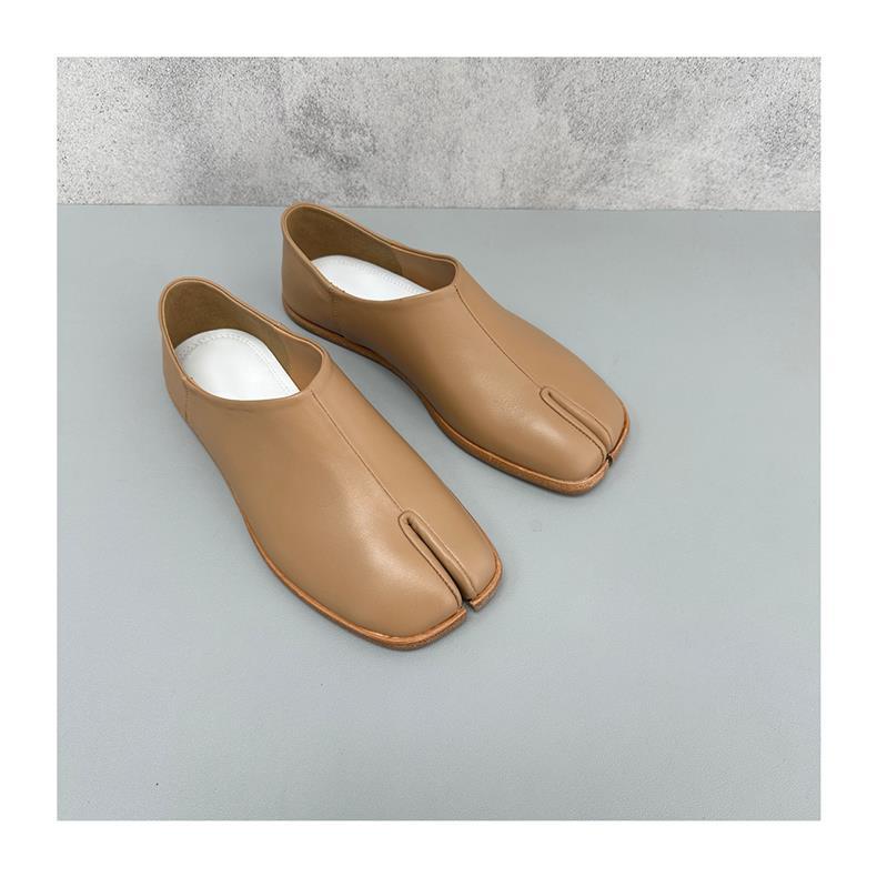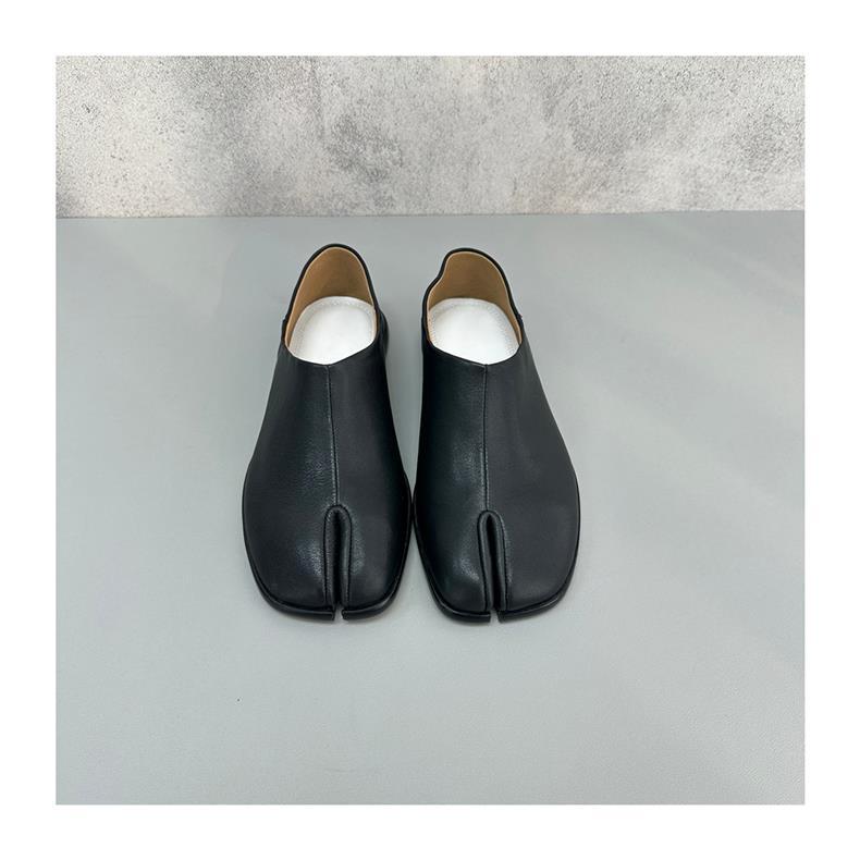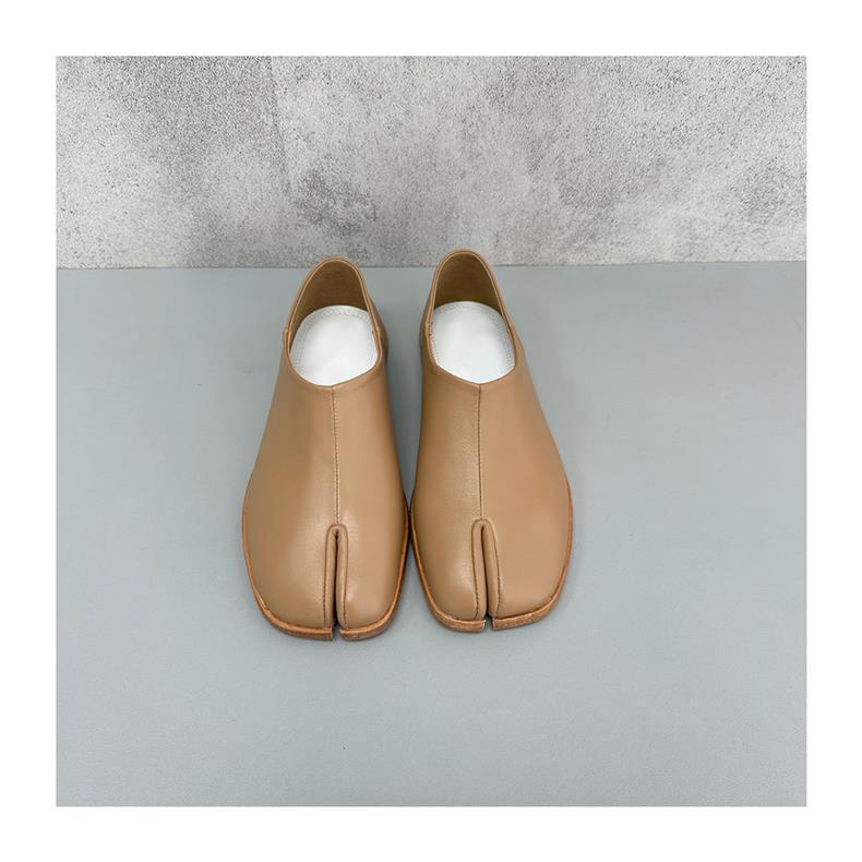 봄과 가을 틈새 타비 발가락 신발 여성 돼지 트로터 깊은 입 신발 부드러운 가죽 가죽 가죽 스텝 힐 플랫 밀크 신발